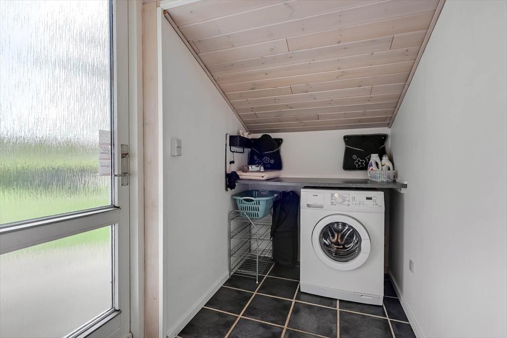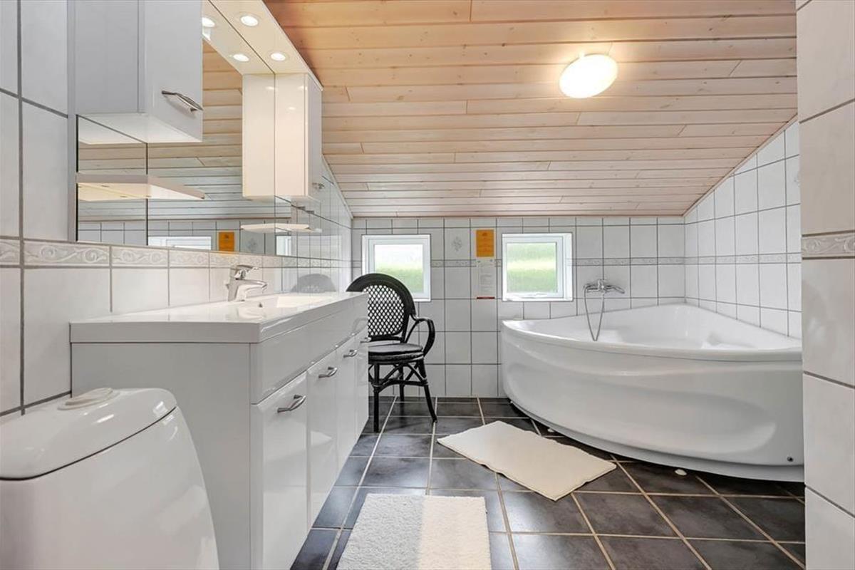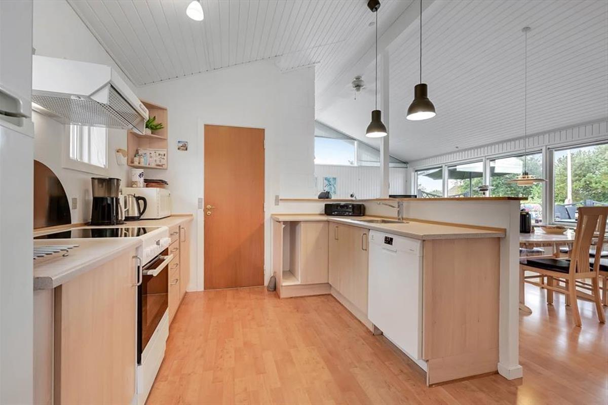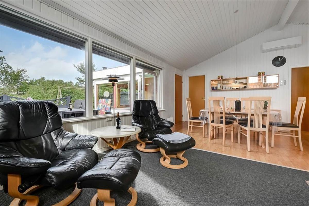 Ein Whirlpool, ein Kaminofen und ein Wintergarten - dies sind nur einige der schönen Details, die in diesem Haus die Urlaubstage versüßen. Der Kaminofen befindet sich im Aufenthaltsbereich, der sich aus dem attraktiven Wohnzimmer und dem Küchen- und Essbereich zusammensetzt. Der Wintergarten bildet eine Verlängerung des Wohnraumes und ermöglicht es daher, Kaffee oder Mahlzeiten in diesem schönen Hausteil zu verzehren, während man das Wetter und den Ausblick auf den grünen Garten genießen kann. Zur Wohnfläche zählen darüber hinaus ein Eingangsbereich mit einer Waschmaschine, ein schönes Bad in dem sich der Whirlpool befindet und drei Schlafzimmer mit insgesamt sechs Schlafplätzen.