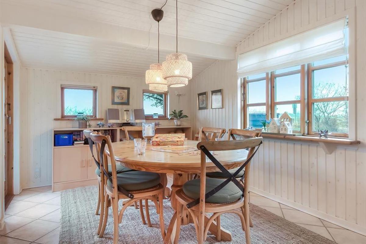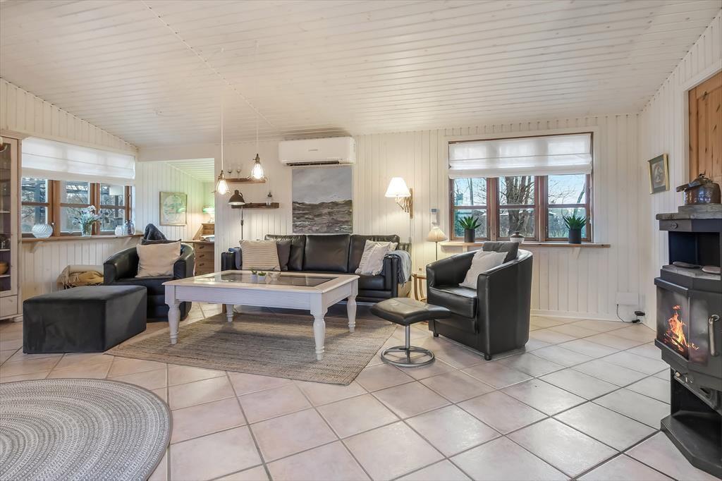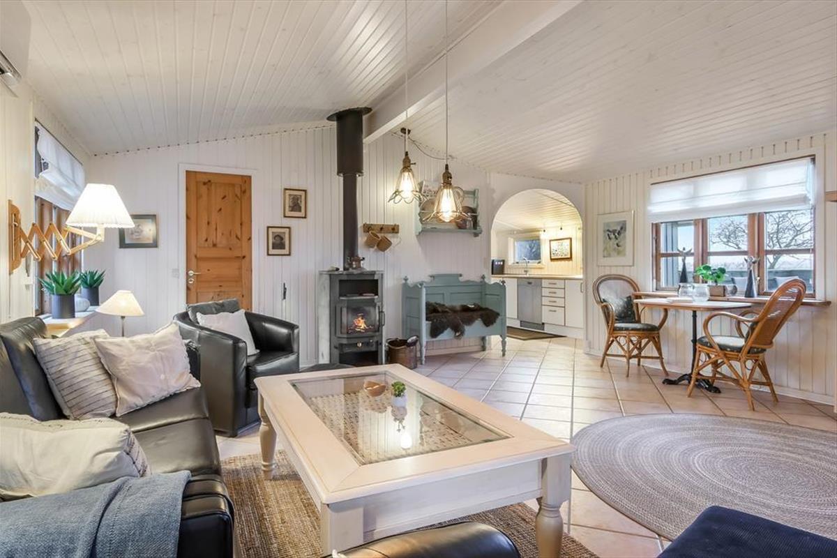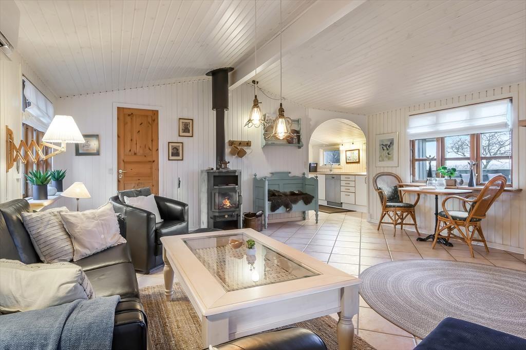 Neben der wunderschönen und ruhigen Lage am Ende einer Sackgasse zeichnet sich das Haus durch viele weitere Vorzüge aus. Es ist geräumig und stimmungsvoll zugleich und die gemütliche Einrichtung trägt zur guten Atmosphäre bei. Im großen Wohnzimmer gibt es reichlich Licht, einen Holzofen und einen Fernseher mit dänischen und deutschen Sendern, außerdem gibt es eine gut funktionierende offene Verbindung zu einer gut ausgestatteten Küche. Ein schönes Badezimmer und eine Waschküche mit Waschmaschine gehören ebenfalls zur Ausstattung und wenn es fast Schlafenszeit ist, können Sie sich auf eine erholsame Nacht in den beiden Schlafzimmern freuen. Sollten in den Zimmern nicht genügend Betten vorhanden sein, können Sie sich im Nebengebäude niederlassen – hier gibt es weitere Schlafplätze.