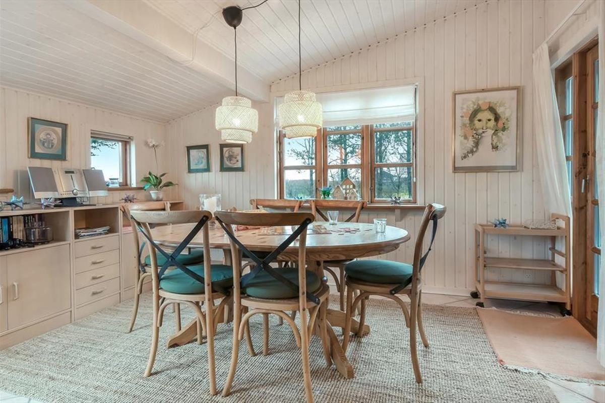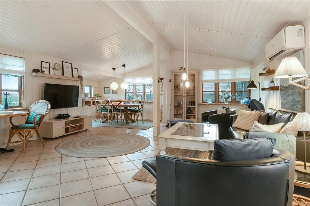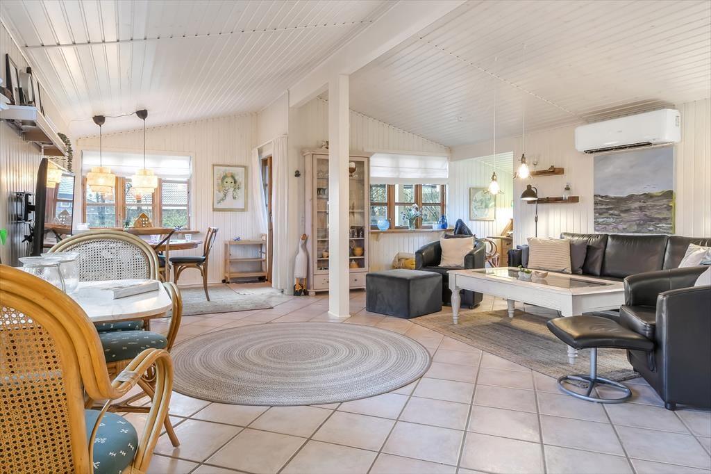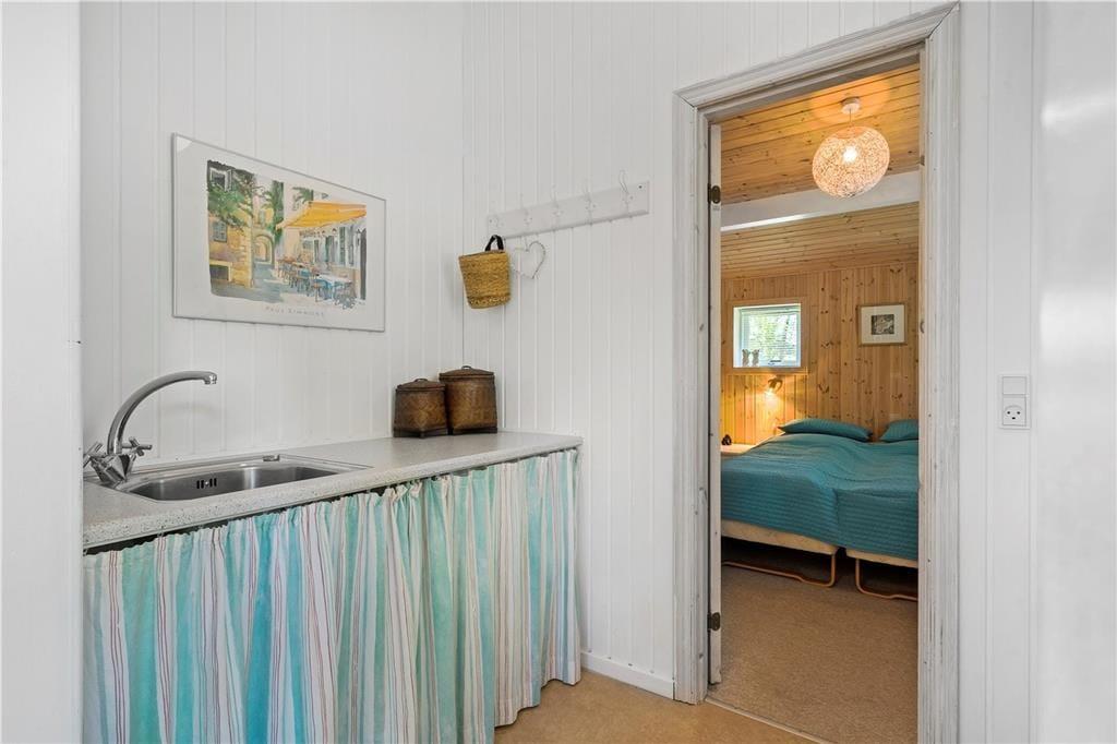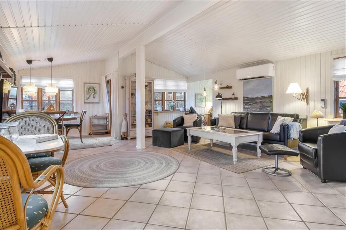 Neben der wunderschönen und ruhigen Lage am Ende einer Sackgasse zeichnet sich das Haus durch viele weitere Vorzüge aus. Es ist geräumig und stimmungsvoll zugleich und die gemütliche Einrichtung trägt zur guten Atmosphäre bei. Im großen Wohnzimmer gibt es reichlich Licht, einen Holzofen und einen Fernseher mit dänischen und deutschen Sendern, außerdem gibt es eine gut funktionierende offene Verbindung zu einer gut ausgestatteten Küche. Ein schönes Badezimmer und eine Waschküche mit Waschmaschine gehören ebenfalls zur Ausstattung und wenn es fast Schlafenszeit ist, können Sie sich auf eine erholsame Nacht in den beiden Schlafzimmern freuen. Sollten in den Zimmern nicht genügend Betten vorhanden sein, können Sie sich im Nebengebäude niederlassen – hier gibt es weitere Schlafplätze.