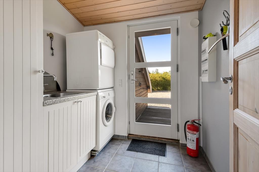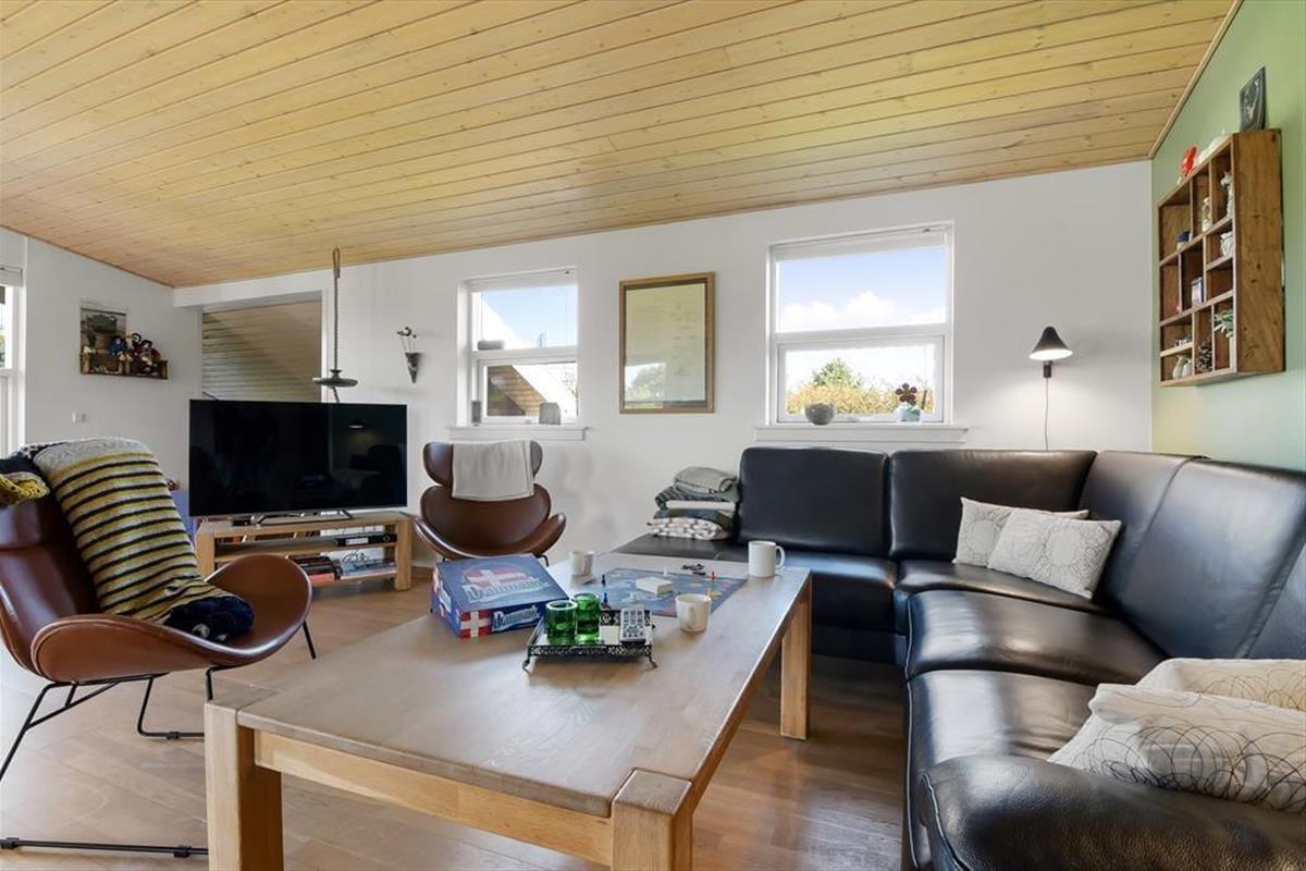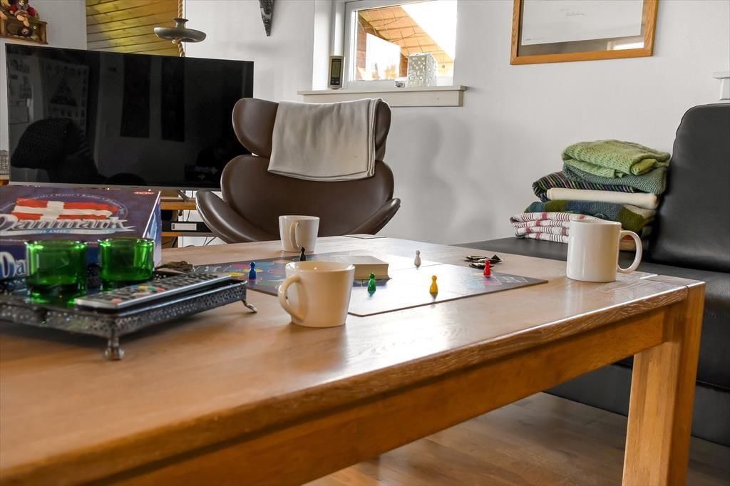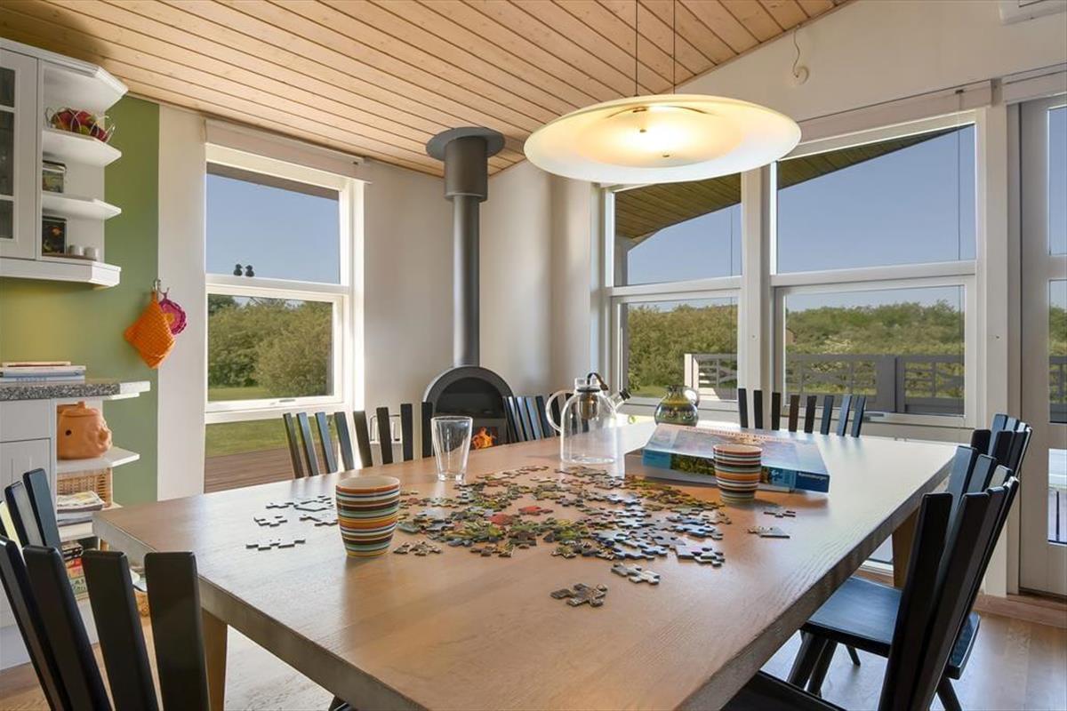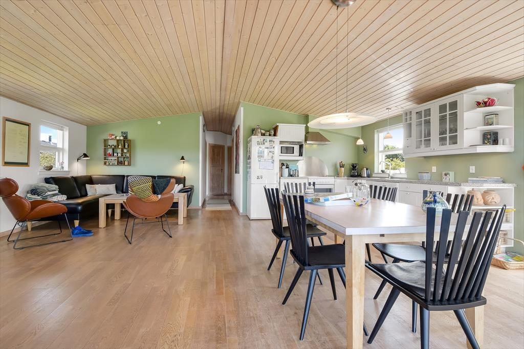 Die hübsch eingerichteten Räumlichkeiten des Ferienhauses erfreuen sich jeder Menge Tageslicht – nicht zuletzt der große Aufenthaltsraum mit seiner Panoramaverglasung. Sowohl hier als auch in den anderen Räumen, inklusive drei Schlafzimmern, einem Badezimmer und einer Waschküche mit Waschmaschine und Wäschetrockner, wird deutlich, dass viel Wert darauf gelegt wurde, ein nicht nur gemütliches, sondern auch funktionelles Urlaubsdomizil zu schaffen: Badezimmer und Waschküche verfügen über eine Fußbodenheizung, alle Schlafzimmer sind mit komfortablen Doppelbetten ausgestattet und auch für ein Kinderbett, einen Hochstuhl und Spielzeug für die kleinsten Feriengäste ist gesorgt. Ein Alkoven im Wohnzimmer kann zwei Personen als zusätzlicher Schlafplatz und tagsüber den Kindern als herrliche Spielwiese dienen. Im Wohnzimmer können Sie sich auf den komfortablen Möbeln vor dem Fernseher und dem Kaminofen entspannt zurücklehnen. Dank der ins Wohnzimmer integrierten, gut ausgestatteten Küche können Sie Ihre Mahlzeiten gemeinsam zubereiten, ohne dass es eng wird.