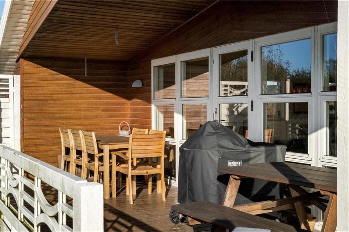 Auch draußen auf dem 1.300 m² großen Grundstück lässt sich herrlich Urlaub machen. Auf der Grasfläche genießen Sie jede Menge Platz zum Umhertollen und Spielen – und wenn dies nicht ausreicht, liegt gleich um die Ecke ein toller Spielplatz mit Hüpfkissen, Schaukeln und vielem mehr. Auf der herrlichen, teilweise überdachten Terrasse, die sich an die südliche und westliche Seite des Hauses anschließt, können Sie in der Sonne liegen und abends auf dem Grill ein leckeres Abendessen zubereiten.