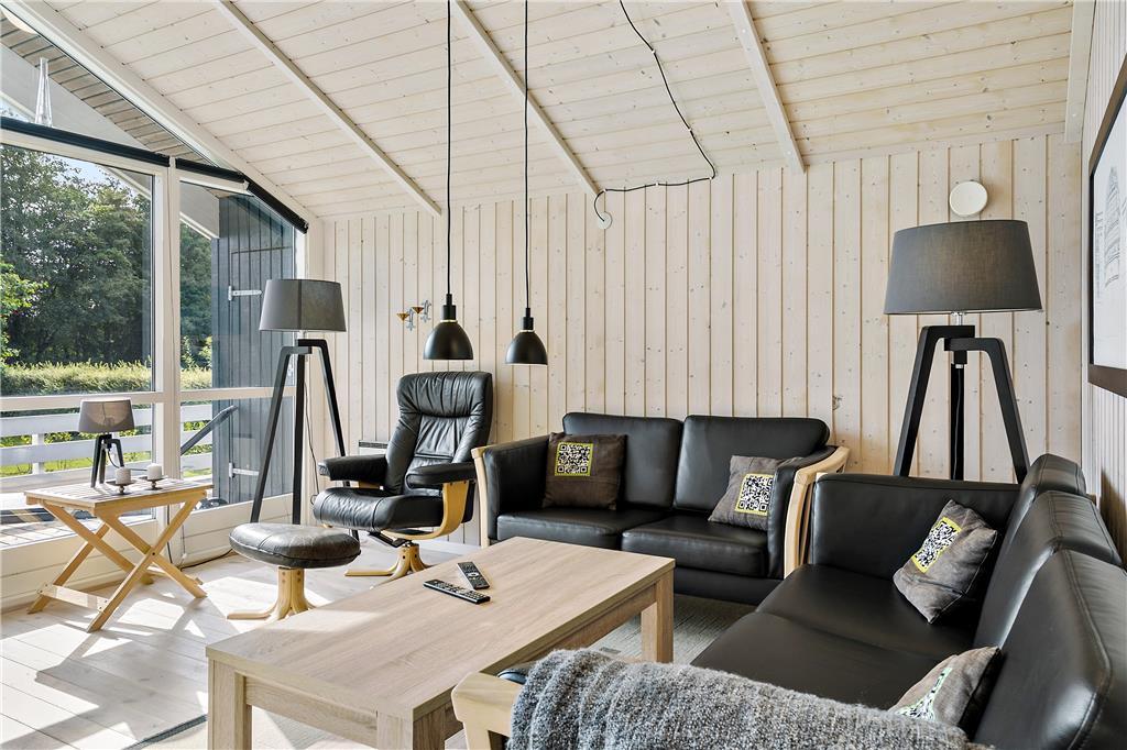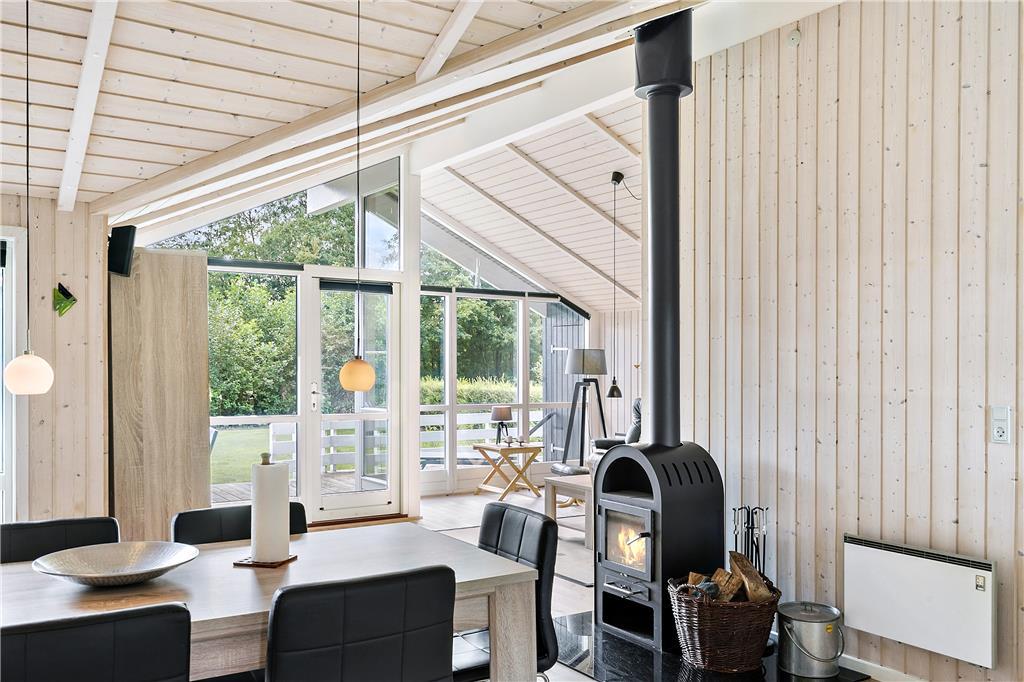 Das moderne Urlaubsdomizil aus dem Jahr 2004 verwöhnt Sie mit einer Fülle an klassischer Ferienhausatmosphäre. Im Hausinneren erwarten Sie helle, holzverkleidete Wände, hohe Decken und ein Kaminofen. In Verlängerung des Badezimmers lädt die hauseigene Sauna zu herrlichen Momenten der Entspannung und Erholung ein. Neben dem Badezimmer beherbergt das Urlaubsdomizil auch drei Schlafräume. Den zentralen Sammelpunkt und somit das Herzstück des Hauses bildet allerdings der schöne Wohnraum samt offen integrierter Küche. Der Esstisch ist nahe der Küche und dem behaglich knisternden Kaminofen platziert. Somit werden Sie auch sicherlich noch nach Beendigung eines gemeinsamen Abendessens gerne in geselliger, gemütlicher Runde am Esstisch sitzen bleiben. Wenn Sie es sich gerne noch ein wenig gemütlicher machen möchten, begeben Sie sich einfach in die Sofaabteilung, wo ein großer Flachbild-TV für viel Unterhaltung und Abwechslung am Abend sorgen.