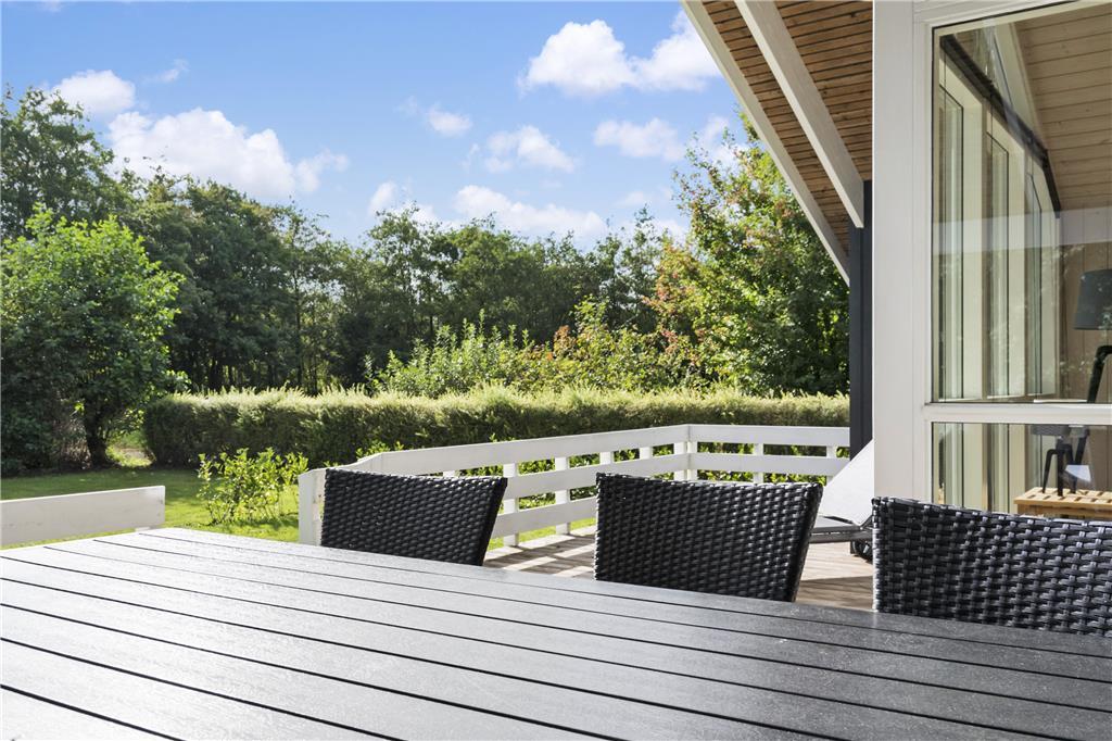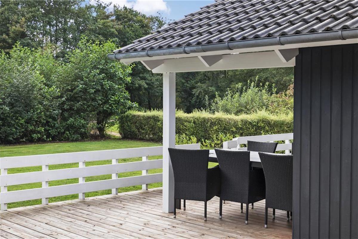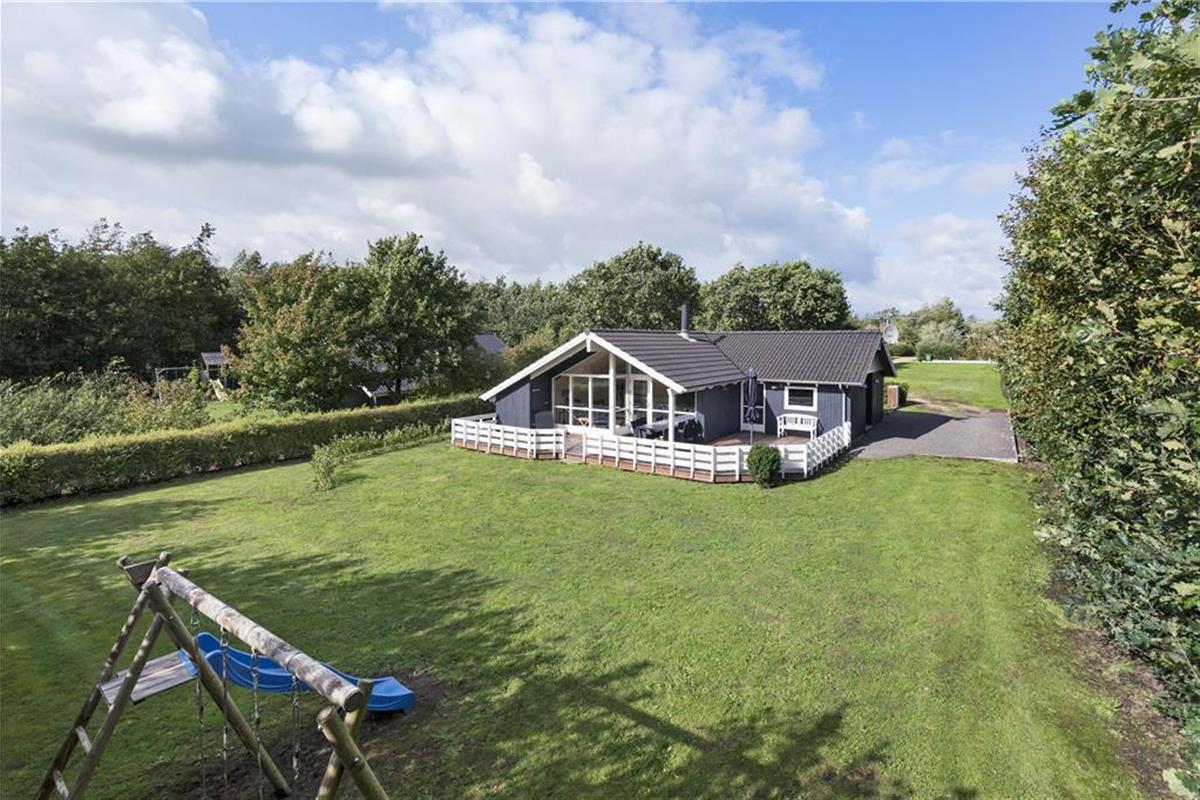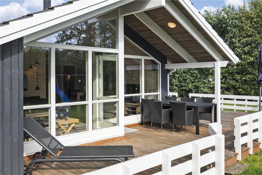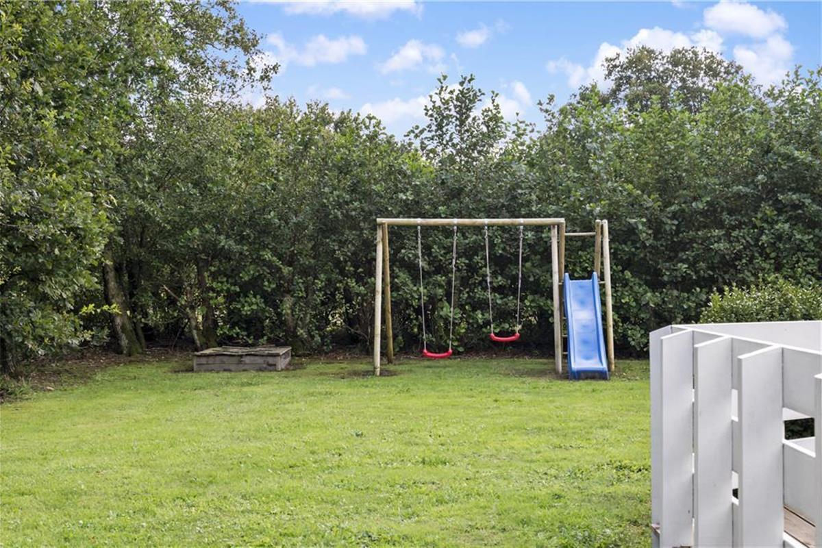 Das Ferienhausgrundstück ist von einer Hecke und anderem grünen Bewuchs umgeben. Am Fuße des Gartens stehen eine Schaukel und eine Sandkiste für die jüngsten Urlauber bereit. Die Grasfläche eignet sich sehr schön zum Umhertollen und für Gartenspiele, an denen sicherlich auch die Erwachsenen gerne teilnehmen. Wer es ein wenig entspannter bevorzugt, der macht es sich einfach auf einem der komfortablen Liegestühle auf der Terrasse gemütlich.
