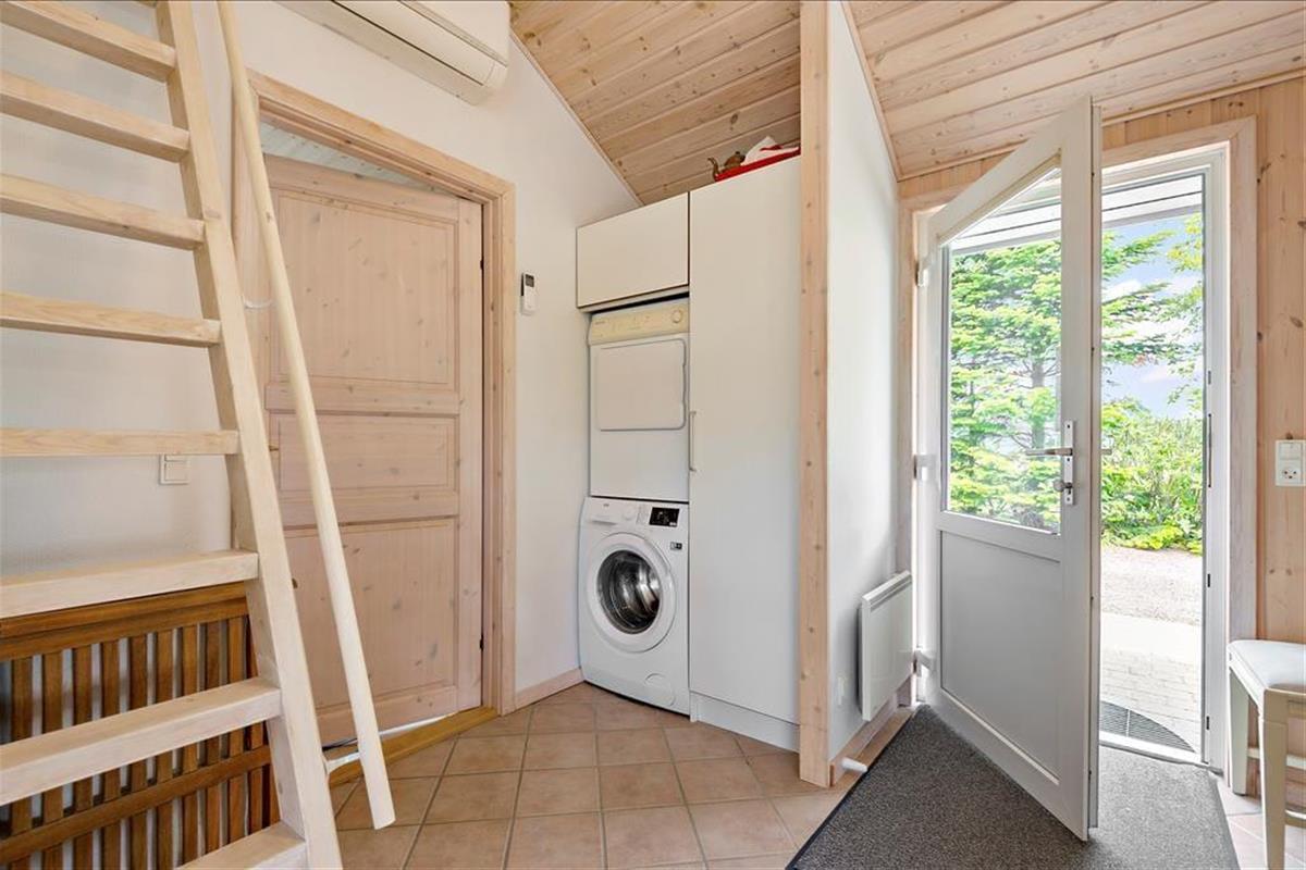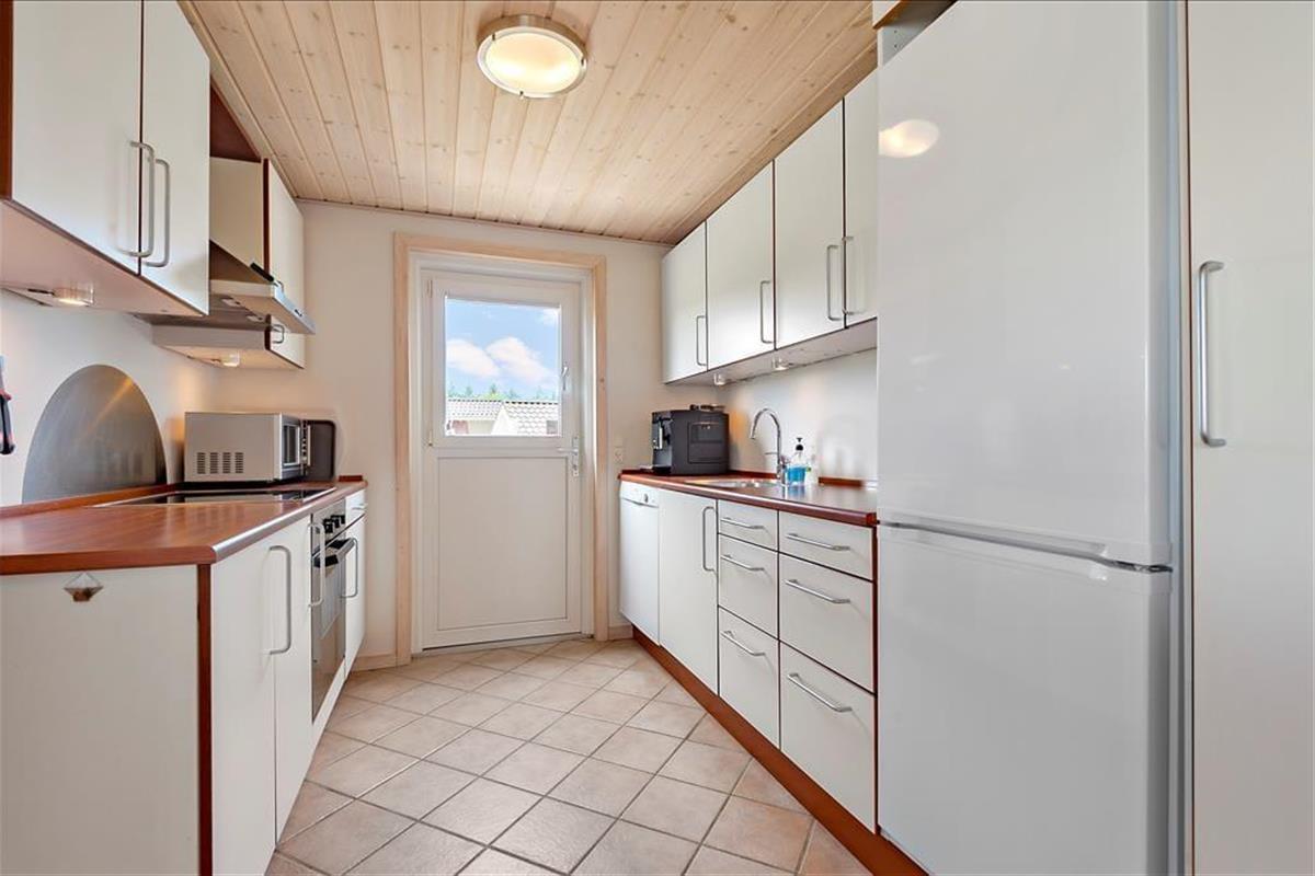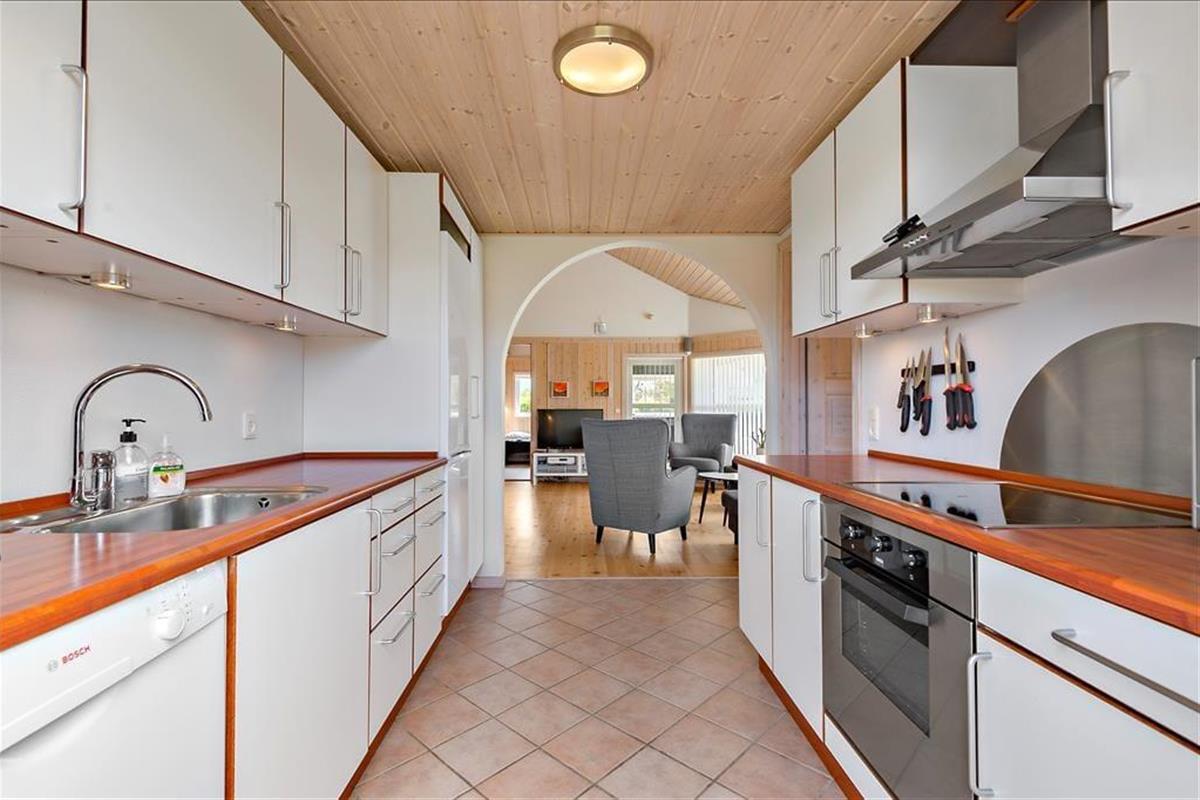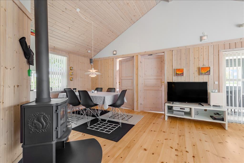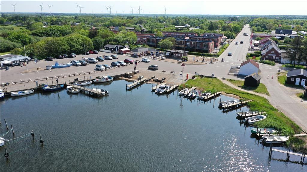 Falls Ihren Kindern das Grundstück dennoch zu klein erscheinen sollte, spazieren Sie mit Ihrer Familie einfach zum rund 100 Meter entfernten Spielplatz. Auf dem Hüpfkissen oder in der Sandkiste werden Ihre Kinder schnell gleichaltrige Spielkameraden finden, die ebenfalls einen Urlaub in Nordmarken, diesem beliebten und kinderfreundlichen Ferienhausviertel mit geschlossenen Wegen, verbringen. Mit Ihrer gesamten Familien können Sie auch sehr schön zu Erkundungstouren in den Urlaubsort Bork Havn und in die attraktive Natur am Ufer des beeindruckenden Ringkøbing Fjords aufbrechen. In Bork Havn locken unter anderem das unterhaltsame Indoor-Tobeland Bork Legeland und das schöne, interessante und in der Saison belebte Freilichtmuseum Bork Vikingehavn, in dem Sie unter anderem auf Krieger, Handwerker und Seeleute aus Wikingerzeiten treffen oder sich auch gleich selber in einen Wikinger verwandeln können. Wenn sich nach ausgiebigen Aktivitäten an der frischen Luft der Appetit melden sollte, können Sie sich im Freilichtmuseum oder im nahegelegenen, historischen Fahl Kro kulinarisch verwöhnen lassen. Gleiches gilt im stimmungsvollen Hafen und in der Ortsmitte Bork Havns, wo Sie neben einem Supermarkt auch mehrere Lokalitäten erwarten.