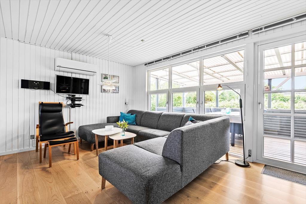 Dieses schöne Urlaubsdomizil überzeugt rundum: eine warme und helle Atmosphäre, ein Whirlpool und eine Sauna, eine Feuerstelle, ein Shelter und sonnenverwöhnte Terrassen sowie eine friedvolle Lage in Bork Havn.