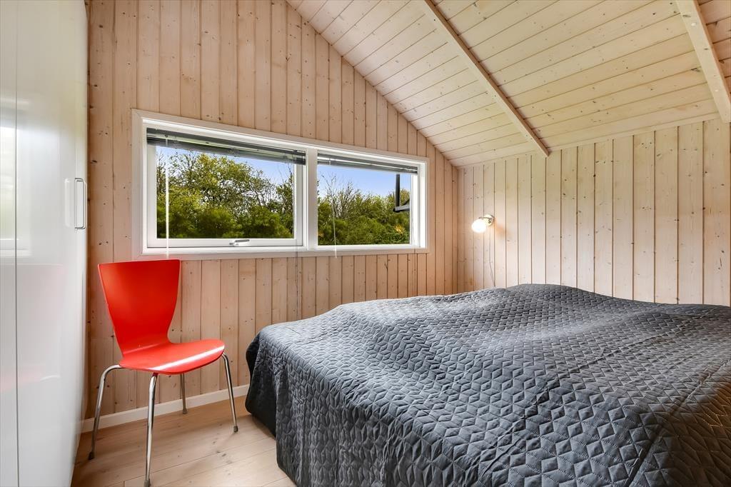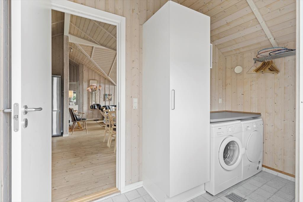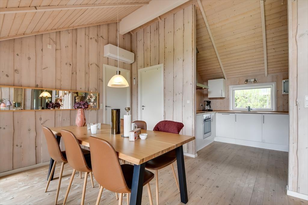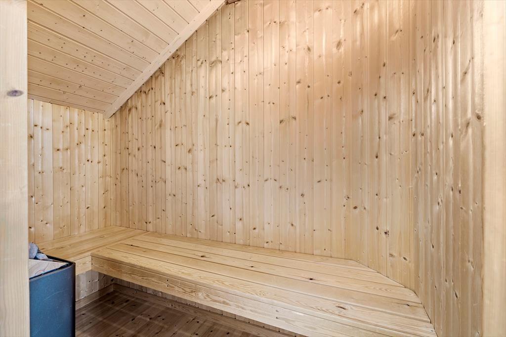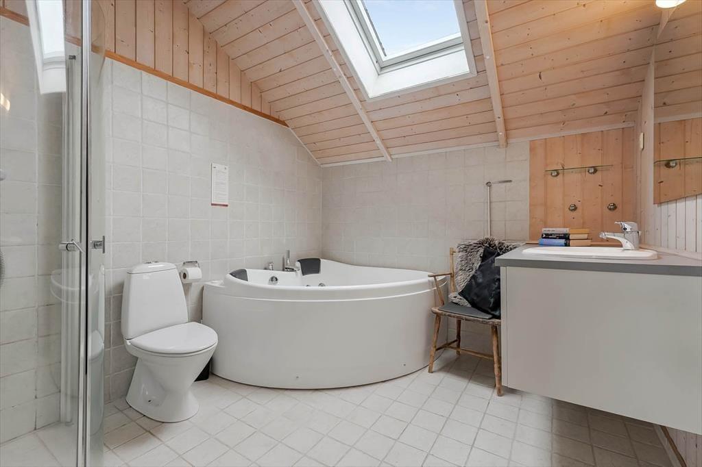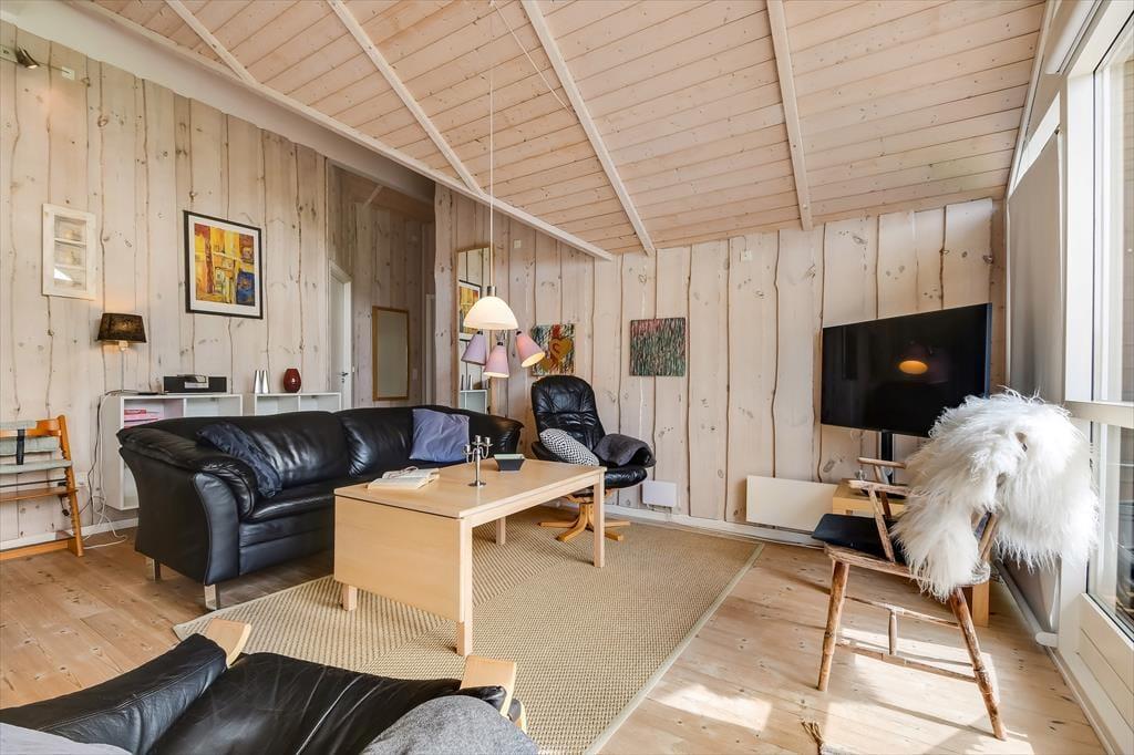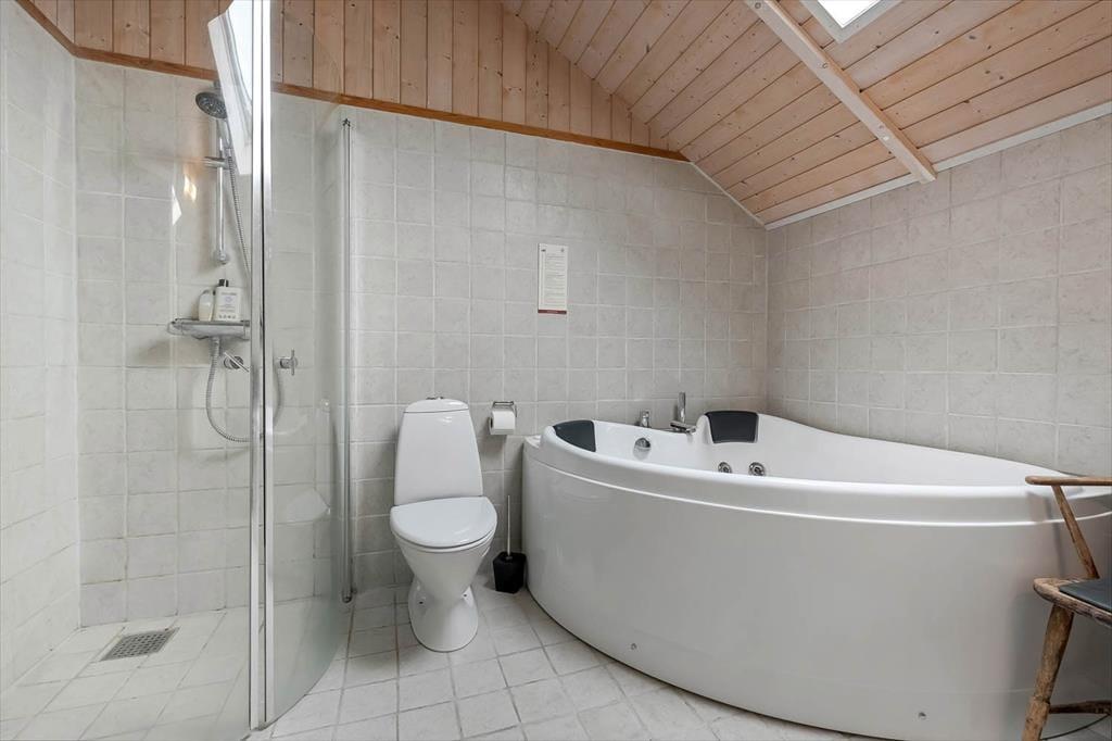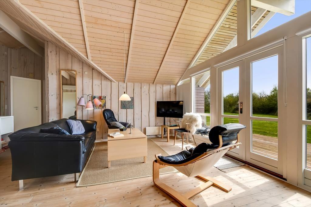 Die holzverkleideten Wände und hohen Decken verleihen dem Hausinneren ein schönes, klassisches Wohnambiente. Die wohl durchdacht ausgewählte Möblierung unterstreicht die gemütliche Atmosphäre. Für ein Maximum an Gemütlichkeit und echter dänischer Ferienhausstimmung sorgt an kühlen Nachmittagen und Abenden das behaglich knisternde Feuer im Kaminofen, das Sie sowohl am Esstisch als auch in der Sofaabteilung genießen. In der offenen Küche können Sie problemlos die kleinen und größeren Urlaubsmahlzeiten zubereiten. Im Hauswirtschaftsbereich stehen Ihnen außerdem eine Waschmaschine und ein Wäschetrockner zur Verfügung. Zur Wohnfläche zählen darüber hinaus auch drei gute Schlafräume, ein Gäste-WC und ein großes Badezimmer. Letztgenanntes ist besonders hervorzuheben, da es Ihnen mit seiner Fußbodenheizung, der Sauna und dem Whirlpool mit Sicherheit das Urlaubsleben versüßen wird.