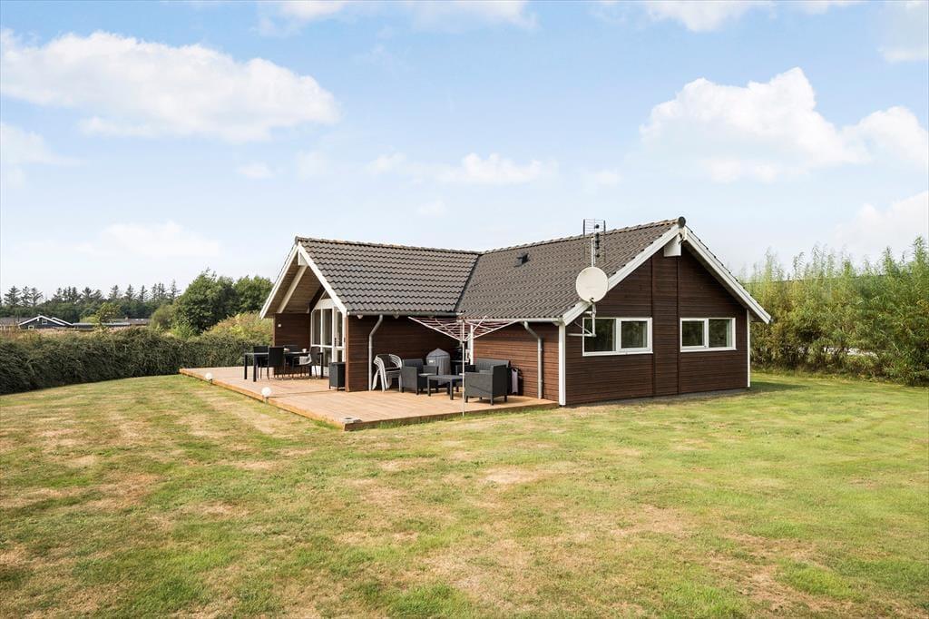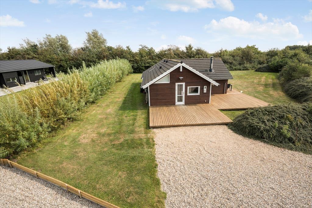 Dieses geräumige und gut eingerichtete Ferienhaus befindet sich in einem ruhigen Viertel am Rande Bork Havns und nur wenige Kilometer abseits des beeindruckenden Ringkøbing Fjords. Wenn Sie nicht gerade die attraktive Landschaft und Natur ringsum erkunden, können Sie sich in aller Ruhe auf der sonnenverwöhnten Terrasse entspannen, es sich vor dem behaglich knisternden Kaminofen gemütlich machen oder auch im Whirlpool und in der Sauna einen wahren Hauch von echtem Wellnessurlaub genießen.