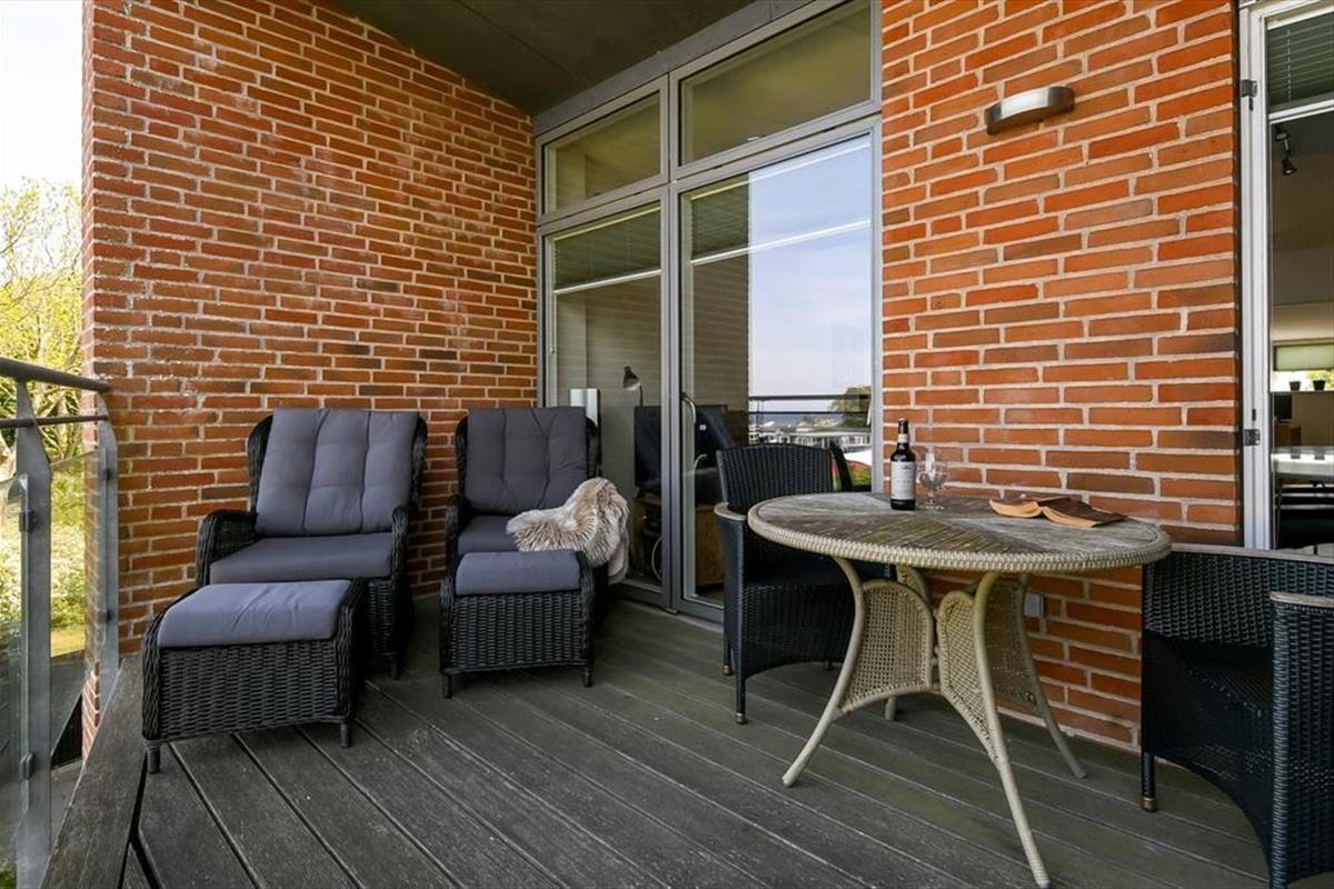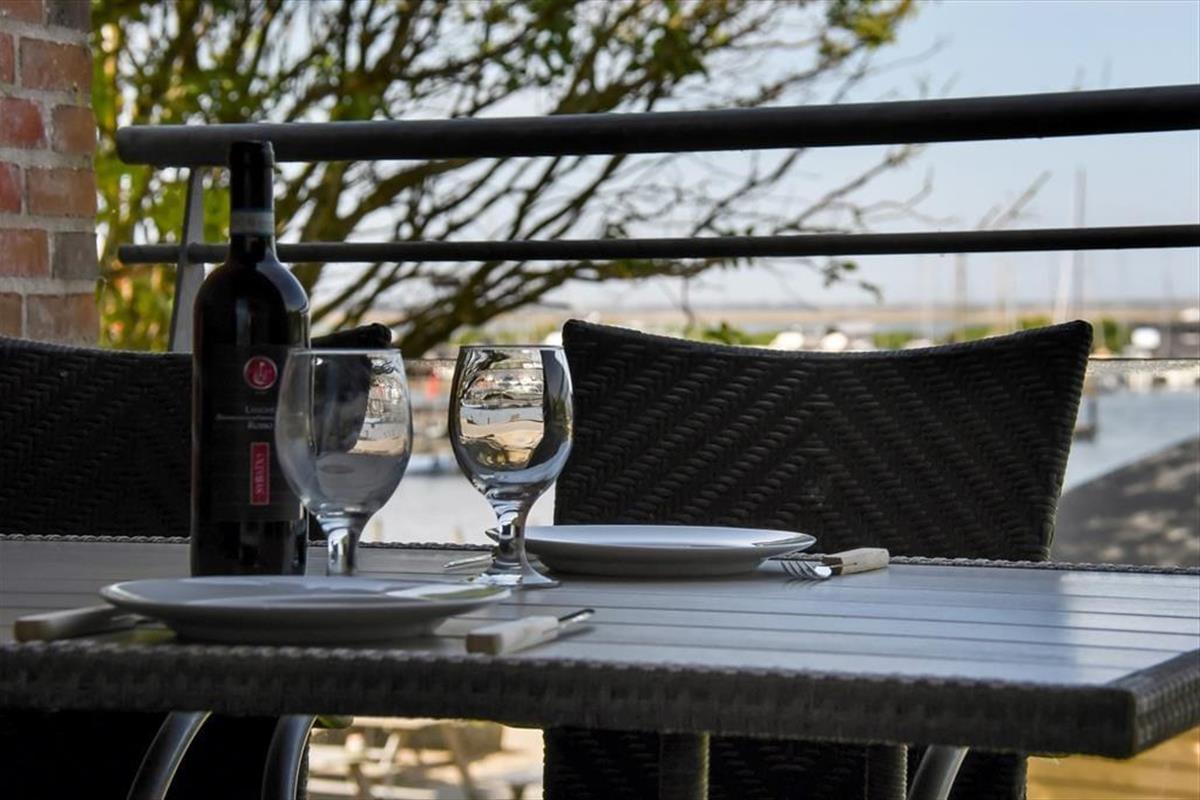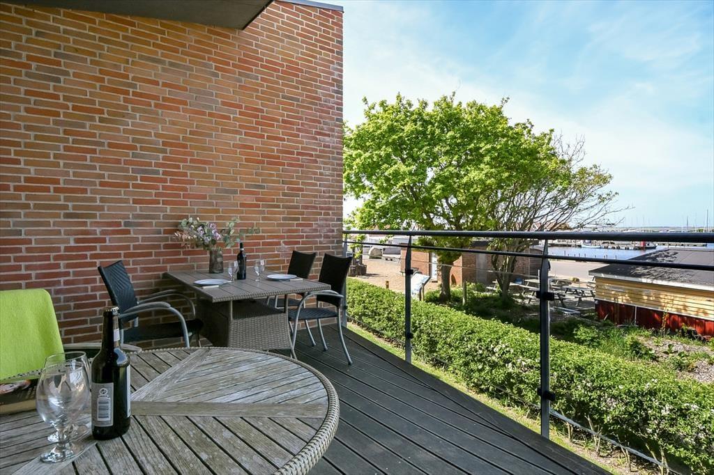 Vom Wohnraum des ersten Stockwerks aus genießen Sie direkten Zugang zu einem überdachten Balkon, der nach Westen ausgerichtet ist und Ihnen somit einen ansprechenden Blick auf den interessanten, stimmungsvollen Hafenbereich eröffnet. Ihnen stehen darüber hinaus auch eine teilweise überdachte Terrasse an der Westseite und eine Terrasse an der Ostseite der Wohnung zur Verfügung. Auf der nach Osten ausgerichteten Terrasse können Sie es sich besonders gut in der Morgensonne gemütlich machen und zusammen mit Ihrer Familie die Aktivitäten und Ausflüge des anstehenden Tages planen.