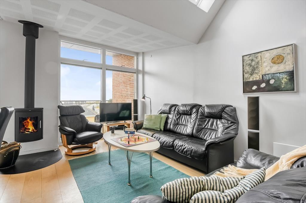 Diese Ferienwohnung ist Teil eines im Jahr 2009 errichteten Wohnkomplexes, der nicht nur mit moderner Architektur, sondern auch mit einer modernen Innenraumgestaltung zu überzeugen weiß. Beide Wohnetagen sind durch helle Räumlichkeiten mit komfortablen Qualitätsmöbeln geprägt. Die Wohnfläche umfasst vier Schlafräume und zwei Badezimmer und eignet sich daher hervorragend für eine größere Anzahl Urlauber. Drei der Schlafzimmer sind zusammen mit dem größeren der beiden Bäder im Erdgeschoss platziert. Ein erwähnenswertes Detail dieses Bades ist der Whirlpool, der zu entspannten Momenten einlädt. Im oberen Stockwerk erwarten Sie das zweite Badezimmer und das vierte Schlafgemach, das tagsüber als TV-Raum oder auch als Spielzimmer für die jüngsten Urlaubsgäste dienen kann. Zum Sammelpunkt der gesamten Familie wird allerdings der angrenzende Wohnraum avancieren, der sich offen aus dem Wohnzimmer und der Küche samt Essplatz zusammensetzt. Untermalt wird die Stimmung hier durch das behagliche Knistern des Kaminofens und durch die Aussicht auf das Hafenbecken, in dem die Boote nach Ihrer Rückkehr vom Ringkøbing Fjord anlegen.