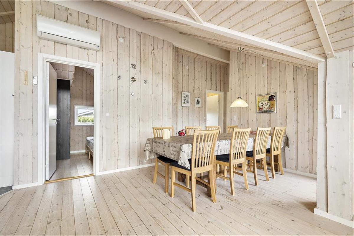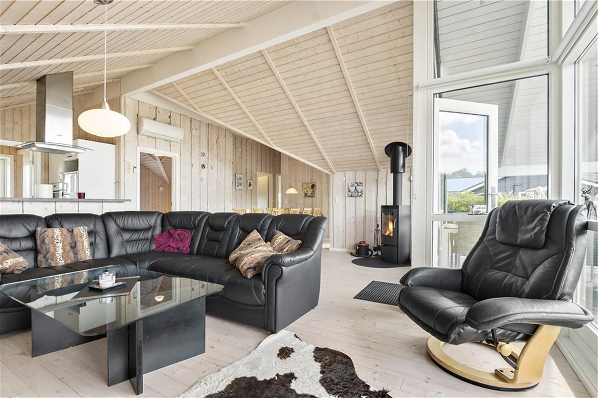 Im Jahr 2012 wurde dieses Haus erbaut. Hierbei lagt der Fokus auf Gemütlichkeit und Funktionalität. Mit 3 Schlafzimmern, einem Badezimmer, einem Hauswirtschaftsbereich mit Waschmaschine und Trockner, sowie einem großen Wohnbereich mit integrierter Küche, bietet das Haus alles, was Sie für einen entspannten Urlaub brauchen. In den Bereich "Hygge" gehören der Kaminofen und der kleine Alkoven - der perfekte Ort zum Lesen oder für ein kleines Nickerchen. Das gesamte Gebäude präsentiert sich hell und freundlich. Insbesondere das Wohnzimmer besticht Dank der bodentiefen Fenster mit einem fantastischen Tageslichteinfall.