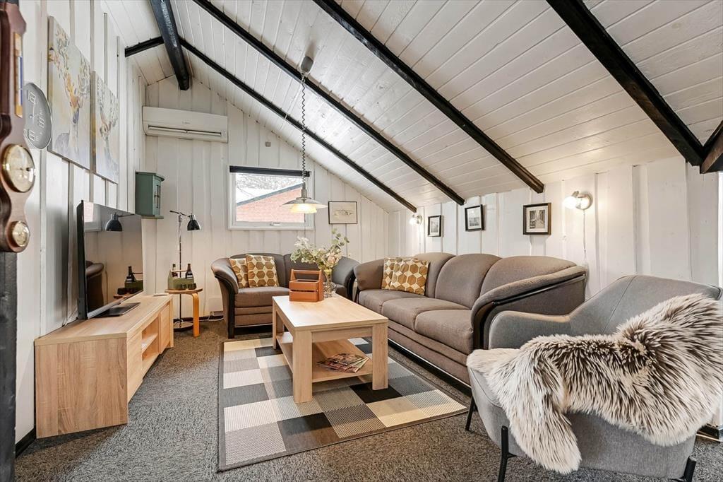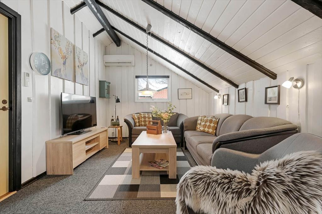 Wenn Sie sich nach einem erholsamen Urlaub in ruhiger Umgebung sehnen, ist dieses gemütliche Holzferienhaus eine gute Wahl. Es befindet sich in einem kleinen, geschlossenen Weg und ist mit einem Kaminofen und einer schönen Terrasse ausgestattet. Falls Sie ein wenig aktiv sein möchten, bieten Ihnen Bork Havn und Umgebung beste Bedingungen zum Surfen, Baden und Angeln sowie zum Spielen von Minigolf.