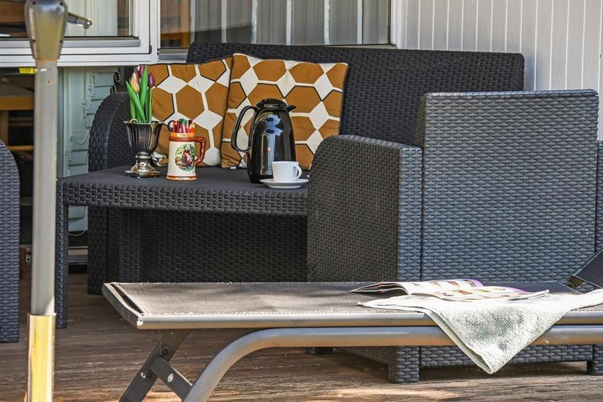 Das Haus liegt in einer kleinen Sackgasse in friedvoller Umgebung. Gen Süden grenzt das Grundstück zudem an ein offenes Grünareal an. Im Garten sorgen eine Schaukel und eine Sandkiste für Spaß und Abwechslung bei den Jüngsten. Die Rasenfläche ist außerdem groß genug, um eine Runde Wikingerschach oder andere unterhaltsame Gartenspiele zu spielen. Selbstverständlich können Sie es sich auch einfach auf der nach Süden ausgerichteten, teilweise überdachten Terrasse gemütlich machen. Gartenmöbel, Liegestühle und ein Sonnenschirm stehen bereit.
