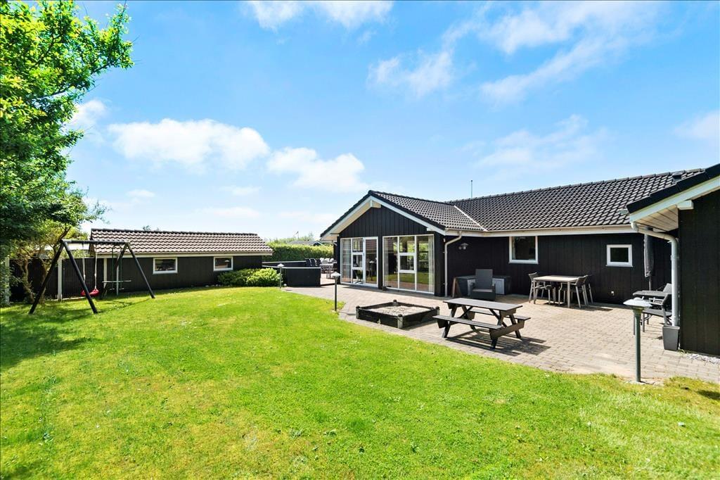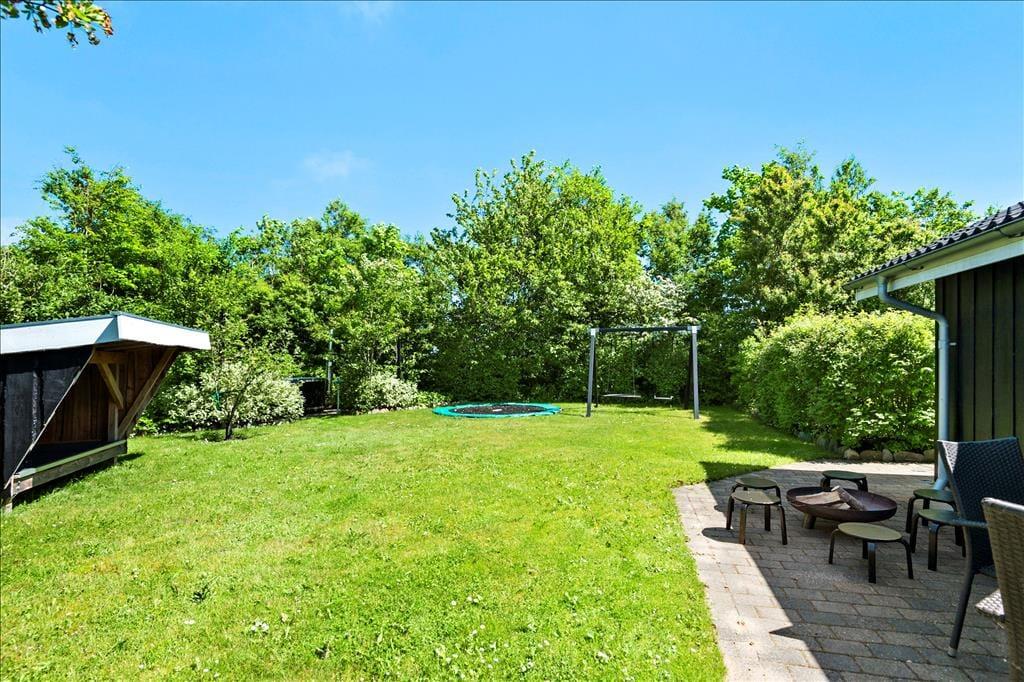 Das Urlaubsdomizil ruht auf einem 1.200 m² großen Grundstück mit mehreren Terrassen und gemütlichen Ecken, sodass Sie den dänischen Sommer in vollen Zügen genießen können. Ganz nach Vorliebe können Sie sich sonnen oder sich in den kühlen Schatten zurückziehen. Der Garten ist geschlossen und bietet angenehm viel Privatsphäre. Kinder werden mit Sicherheit von der Lagerfeuerstelle begeistert sein, an der Sie abends in gemütlicher Runde Stockbrot und Würstchen rösten können. Ein Trampolin sorgt außerdem für Abwechslung und Spaß bei den Jüngsten. Besonders faszinierend könnte es auch sein, einmal eine Nacht in der offenen Schutzhütte (Shelter) zu verbringen.