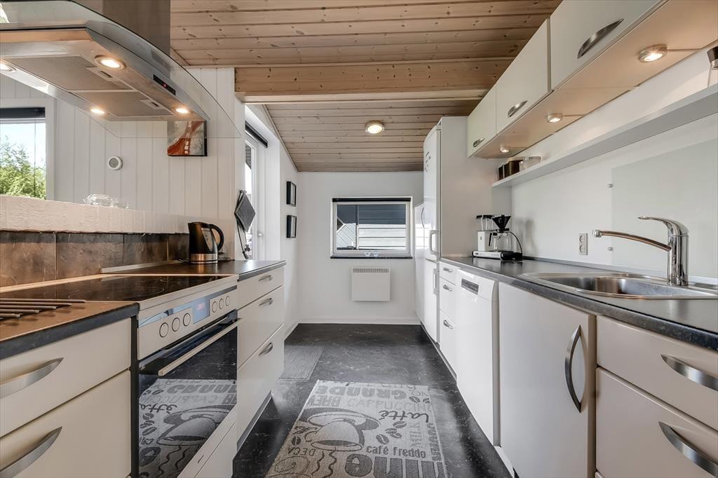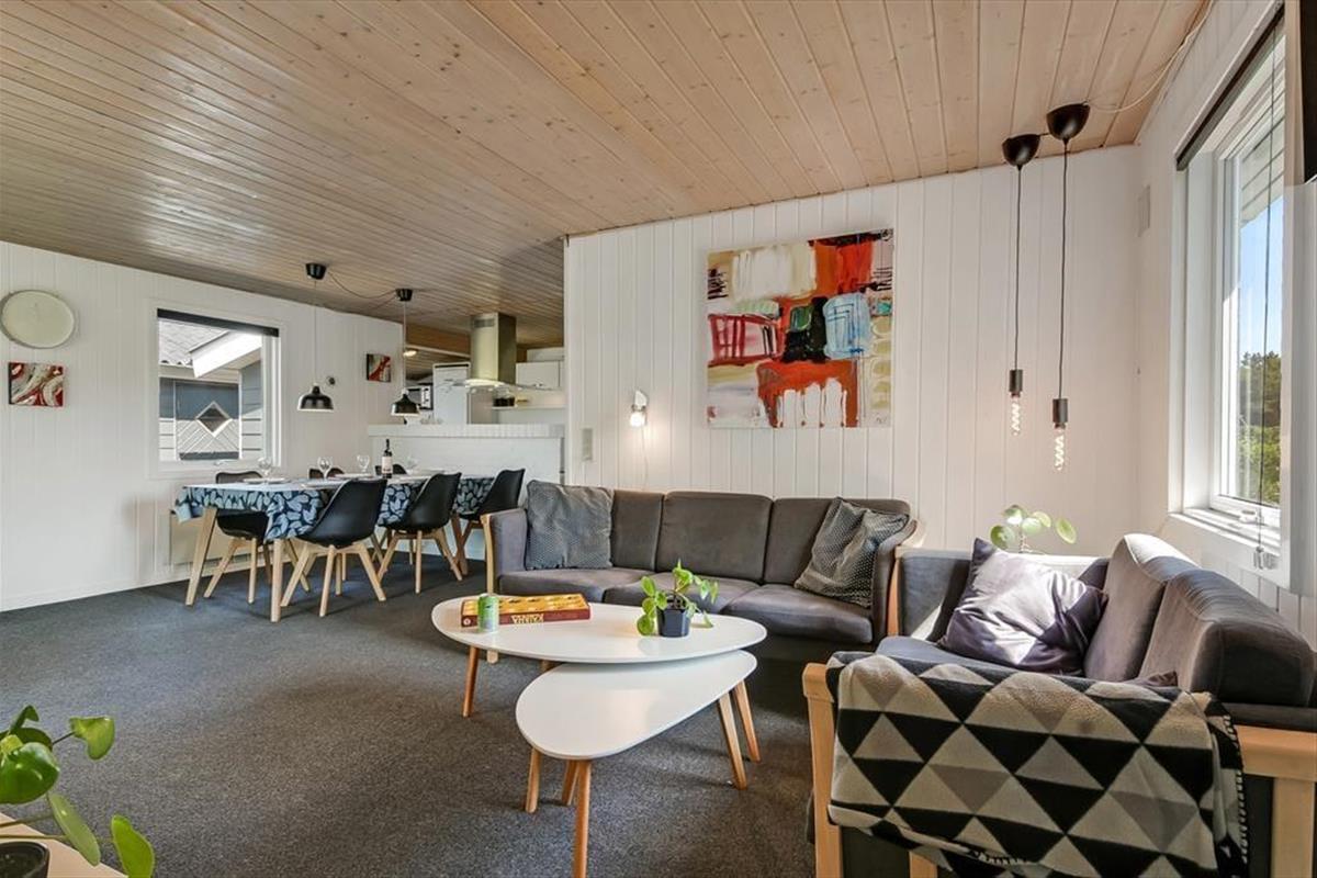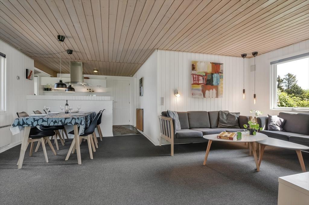 Vom hinteren Bereich des Gartens gelangen Sie direkt auf ein großes, grünes Gemeinschaftsareal mit Fußballtor und Spielpatz. Bei Ihrem Ferienhausweg handelt es sich um eine Sackgasse, sodass Sie mit sehr begrenztem Verkehrsaufkommen rechnen können. Zahlreiche kleine Wege durchziehen die Umgebung des Hauses, sodass Sie zu Fuß die Nachbarschaft erkunden oder auch zum Badestrand und zum Hafenbereich spazieren können. Gleiches gilt für die Geschäfte und Lokalitäten des beschaulichen Hafenortes. Der Surfstrand des Ortes zieht nicht nur diverse Kiter- und Windsurfer an, sondern Wassersportler jeglicher Art. Urlauber, die gerne in der Natur unterwegs sind, sollten dem berühmten Vogelschutzgebiet Tipperne einen Besuch abstatten. Auch eine Radtour zum schönen Fluss Skjern Å und zur Skjern