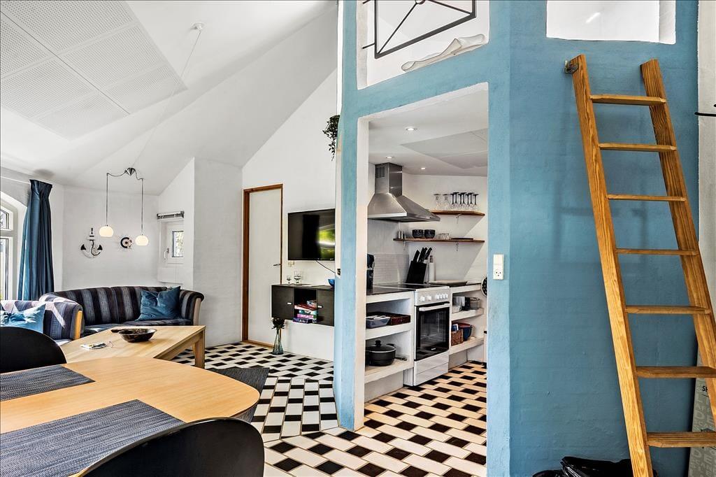 Das reizende Urlaubsdomizil liegt am Ende einer Sackgasse, sodass es hier ruhig und friedlich zugeht. Die Lage ist dementsprechend kinderfreundlich. Binnen kurzer Zeit erreichen Sie die Spielplätze und Grünflächen Bork Hyttebys. Nah am Haus befindet sich auch der kleine Hafen, der hinaus auf den Fluss Fahl Å und weiter auf den Ringkøbing Fjord führt. Der Ringkøbing Fjord und der beliebte Surfstrand Bork Havns liegen rund 2,5 Kilometer vom Ferienhaus entfernt. Auf Ihrem Weg nach Bork Havn passieren Sie den historischen Fahl Kro und das beliebte Freilichtmuseum Bork Vikingehavn - eine Sehenswürdigkeit für Groß und Klein. Der Hafenbereich Bork Havns ist ebenfalls den ein oder anderen Besuch wert. Hier herrscht eine entspannte Atmosphäre und Sie können mit Blick auf den Fjord eine Mahlzeit genießen. In Bork Havn treffen Sie darüber hinaus auch auf Einkaufsmöglichkeiten, kleine Geschäfte, eine tolle Minigolfanlage, ein Indoor-Spielland und vieles mehr.