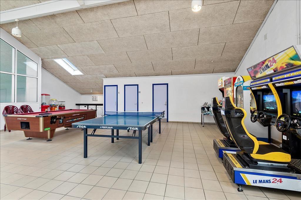 Die guten Gemeinschaftseinrichtungen umfassen auch eine kleineres Badeland mit einer Sauna und einem Whirlpool. Im Centergebäude befindet sich zudem ein Aktivitätsraum mit einem Indoor-Spielplatz, einem Airhockeyspiel und Münzspielautomaten. Obwohl Sie sich in der Urlaubsanlage stundenlang die Zeit vertreiben können, sollten Sie es nicht versäumen, Bork Havn und die Umgebung ein wenig näher zu erkunden. Der kleine Hafenort liegt hübsch platziert am Ufer des faszinierenden Ringkøbing Fjords, der mit traumhaften Sonnenuntergängen, gutem Badewasser und besten Surfmöglichkeiten zu begeistern weiß. Im Hafengebiet freuen sich mehrere Geschäfte und Lokalitäten auf Ihren Besuch. Hier können Sie sich in aller Ruhe niederlassen, die beschauliche Stimmung, die schöne Aussicht und ein gutes Eis oder ein kühles Bier genießen. Oder wie wäre es mit einem Besuch im beliebten Freilichtmuseum Bork Vikingehavn, in dem Sie sich unversehens auf einer Zeitreise 1000 Jahre zurück zu den Wikingern befinden? Naturliebhabern bieten sich sehr schöne Möglichkeiten, ins Grüne zu gelangen. Leihen Sie sich beispielsweise bei Fahrräder und brechen Sie zu einer wunderschönen Tour entlang des Fjordufers auf, die Sie bis zur prachtvollen Skjern Enge führt.