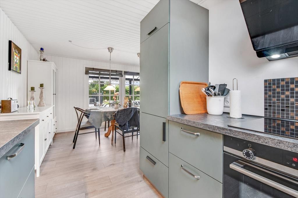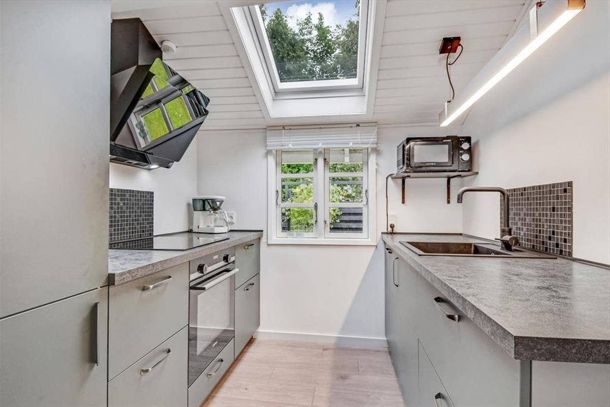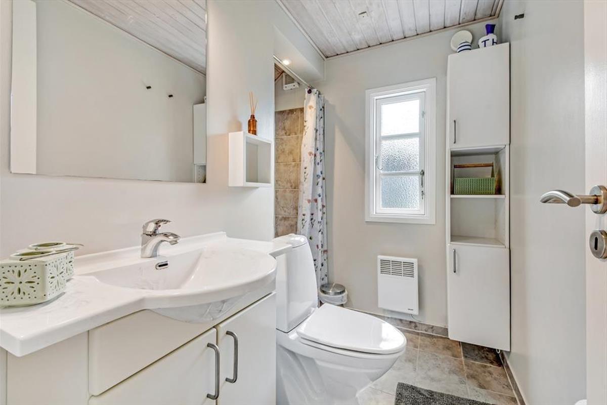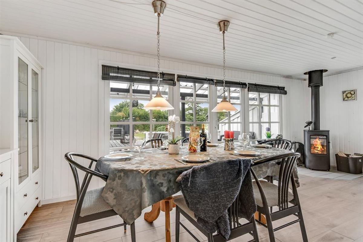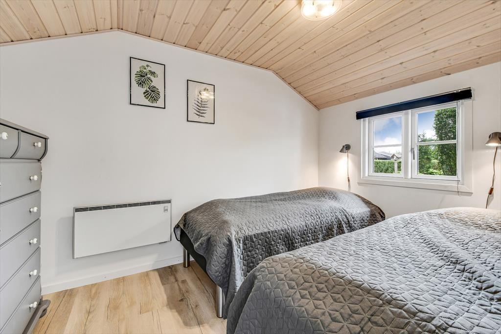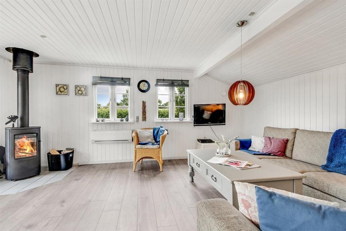 Der gemütliche Wohnbereich des Ferienhauses, der sich offen aus der Küche, dem Essbereich und dem Wohnraum zusammensetzt, verfügt über einen Kaminofen und eine Wärmepumpe, die beide an kühlen Tagen für Wohlfühltemperaturen sorgen. An warmen Tagen öffnen Sie hingegen einfach die Terrassentüren um frische Luft hineinzulassen. Die gewählten Farbtöne sind angenehm hell und leicht - nicht nur im Wohnbereich, sondern auch im Badezimmer und den beiden Schlafzimmern. Der gleiche einladende Stil setzt sich auch im Nebengebäude fort. Dieses beinhaltet ein zusätzliches Badezimmer und zwei weitere gute Schlafräume. Insgesamt beherbergt dieses Urlaubsdomizil also problemlos bis zu sechs übernachtende Urlauber.