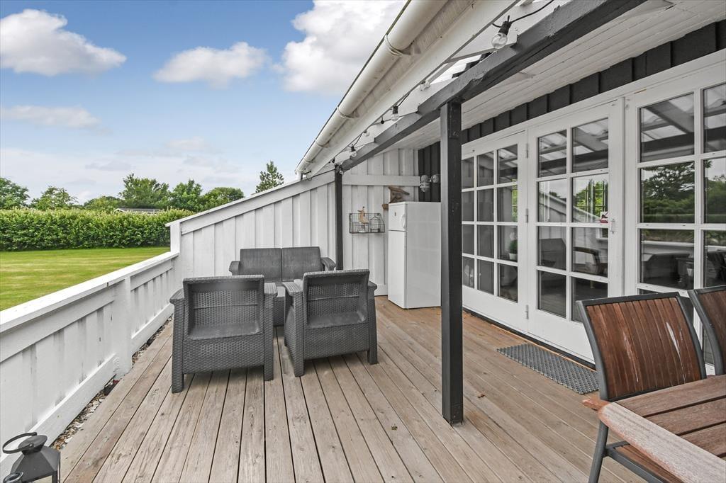 Obwohl es richtig schön im Ferienhaus und Garten ist, werden Sie dennoch bestimmt Lust haben, Bork Havn und die attraktive Umgebung ringsum genauer zu erkunden. Von Ihrem geschlossenen Ferienhausweg erreichen Sie nach rund 800 Metern den nächstgelegenen Strand, bei dem es sich um einen populären Surfstrand am südlichen Ende des Ringkøbing Fjords handelt. Falls Sie sich lieber in als auf den seichten Fjordwellen tummeln und mit Ihren Kindern baden möchten, begeben Sie sich einfach zum kinderfreundlichen Badestrand, der Sie auf der anderen Seite des Hafens erwartet. Der Hafenbereich Bork Havns erfreut sich großer Beliebtheit. Lassen Sie sich hier mit einem Eis niederund bewundern Sie den schönen Ausblick über den Hafen und den Fjord. In Bork Havn treffen Sie auch auf Einkaufsmöglichkeiten, kleine Geschäfte und Lokalitäten sowie familienfreundliche Sehenswürdigkeiten und Aktivitätsmöglichkeiten, wie beispielsweise das tolle Freilichtmuseum Bork Vikingehavn, den historischen Fahl Kro und die unterhaltsame Minigolfanlage. Letztgenannte gehört zum Büro von Bork Havn, wo Sie übrigens auch Fahrräder leihen können, mit denen Sie im Anschluss die schöne Natur und Landschaft ringsum erkunden.