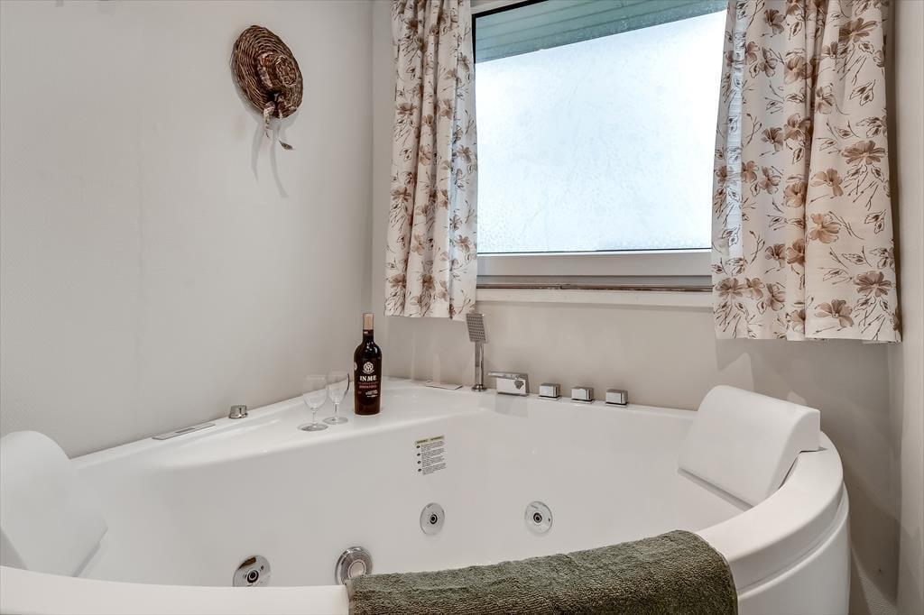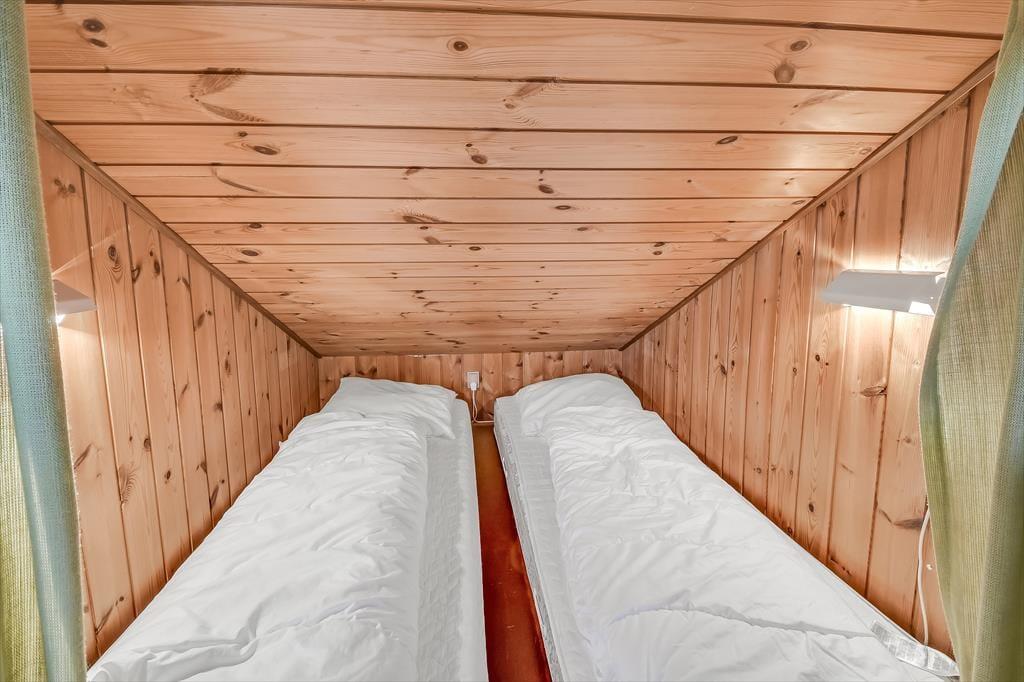 Das zweigeschossige Ferienhaus empfängt Sie mit einer wohldurchdachten Raumaufteilung und zahlreichen guten Details - unter anderem mit einem Whirlpool im Badezimmer, in dem Sie sich nach einem langen Tag auf dem Surfbrett oder einem Ausflugstag so richtig schön erholen und entspannen können. Im Erdgeschoss erwartet Sie der Küchen- und Essbereich. Hier können Sie sich in geselliger Runde niederlassen, gemeinsam die Mahlzeiten zubereiten und anschließend genießen. Im oberen Stockwerk treffen Sie auf einen schönen Wohnraum, der mit seinem Fernseher und der Sofaabteilung zu entspannten Stunden am Abend einlädt. Der Wohnraum verfügt zudem über eine Schlafnische mit zwei Matratzen, die die beiden im Erdgeschoss platzierten Schlafräume ergänzen. Insgesamt beherbergt dieses Ferienhaus bis zu vier Erwachsene und zwei Kinder.