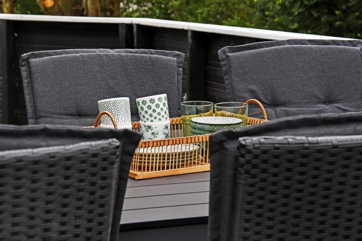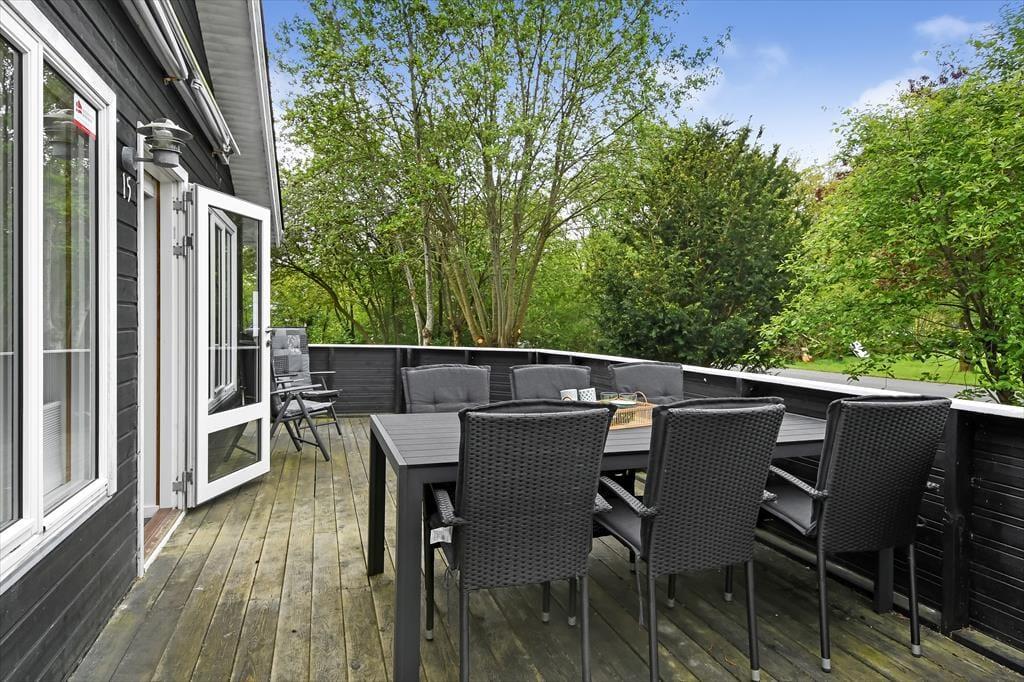 Sobald die Sommersonne vom Himmel lacht, können Sie sich in einem Liegestuhl auf der Terrasse zurücklehnen. Das 1.018 m² große Grundstück bietet die Wahl zwischen diversen Aufenthaltsplätzen. Eine Holzterrasse schmiegt sich an die Süd- und die Westseite des Hauses. Gen Osten erwartet Sie eine gepflasterte Terrasse, die sich ebenfalls schön zum Entspannen und gemeinsamen Grillen anbietet. Kinder können auf der Grasfläche umhertollen und spielen. Ein Teil des Grundstücks ist umzäunt - ein Umstand, den sicher insbesondere die Eltern abenteuerlustiger Kleinkinder sehr zu schätzen wissen.