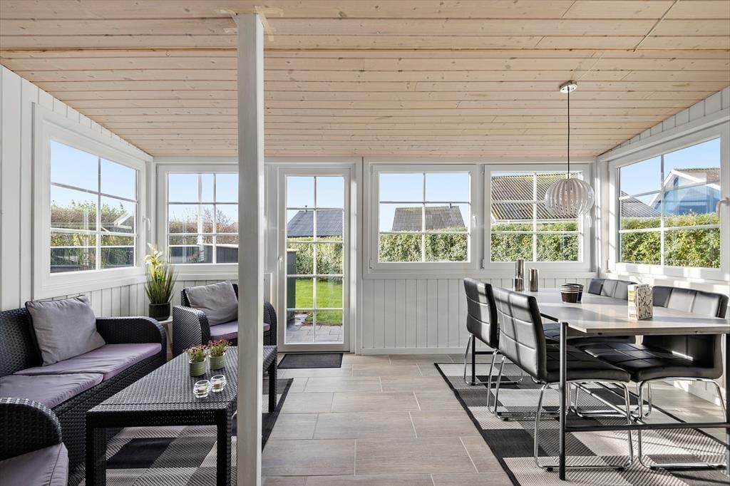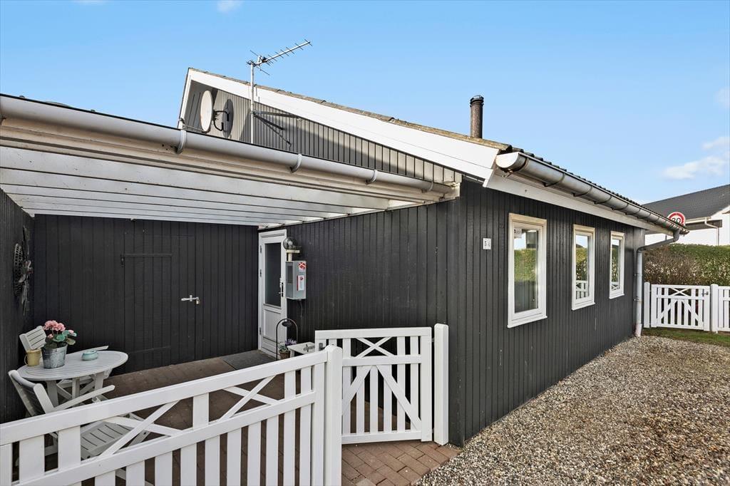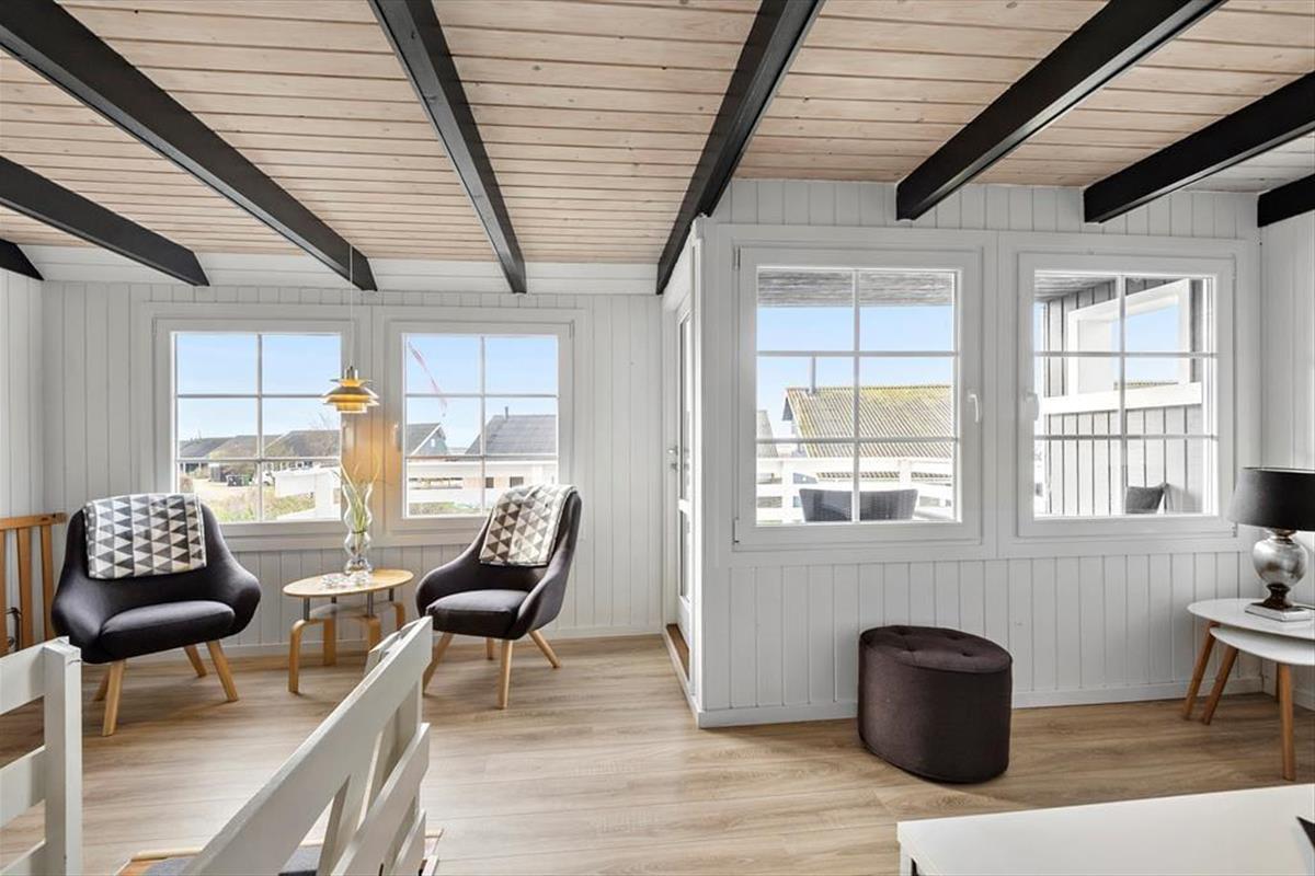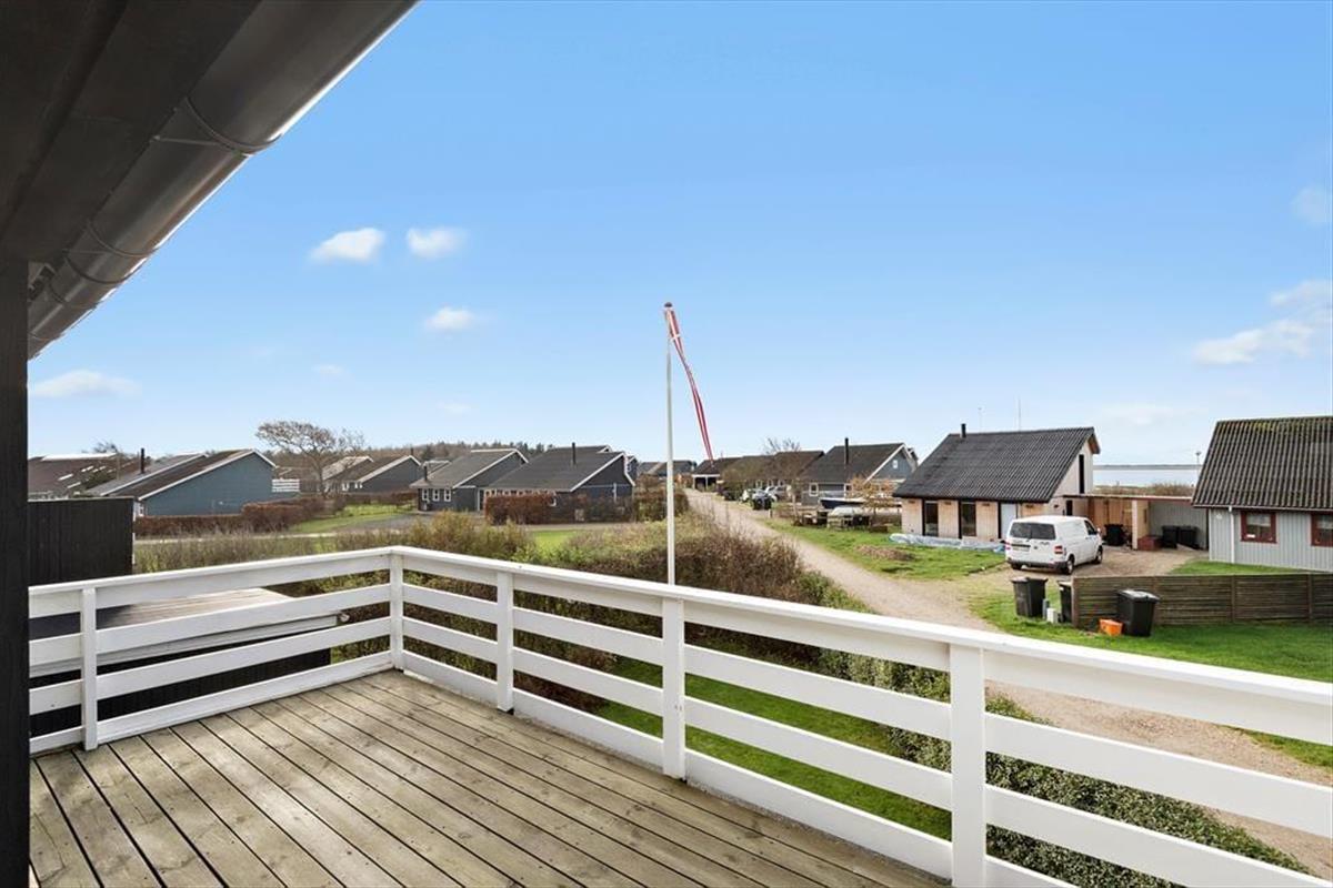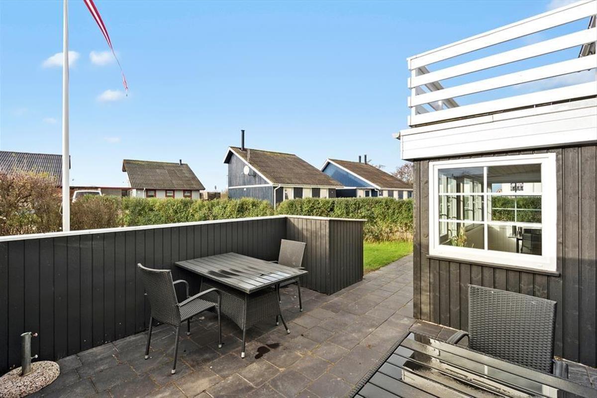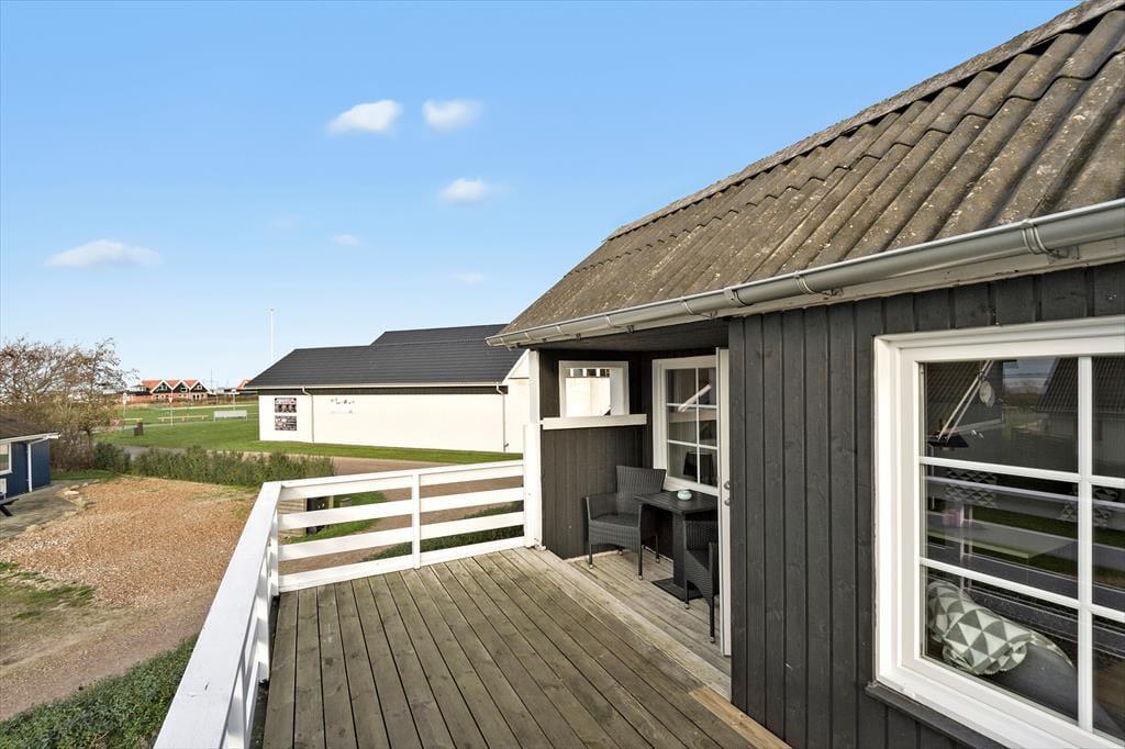 Vom Wohnzimmer im ersten Stock haben Sie direkten Zugang zu einem großen Balkon, der zum beliebten Strand von Bork Havn ausgerichtet ist. Zwischen den Häusern blicken Sie aufs Wasser, wo sich die Surfer tummeln, während Sie selbst bei kühlen Erfrischungen auf den Gartenmöbeln des Balkons entspannen könne. Die sonnigen Stunden lassen sich auch auf der nach Südwesten ausgerichteten Terrasse des Hauses und im kleinen Garten, der rundum eingezäunt ist, genießen.