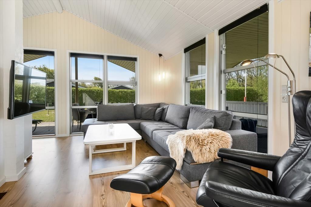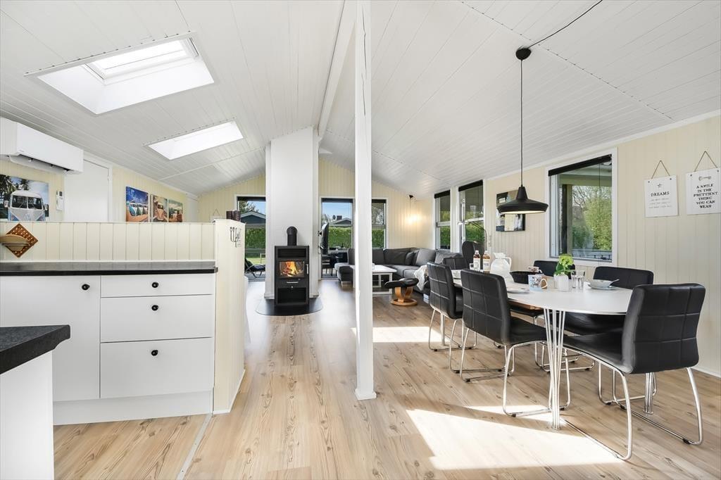 Vakantiehuis in Bork Havn, West-Jutland, met plaats voor 6 volwassenen en 2 huisdieren. De woning heeft een gezellig interieur met o.a. een houtkachel, en beschikt daarnaast over een vaatwasser.