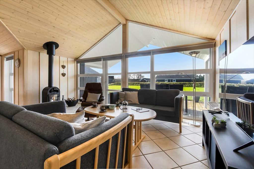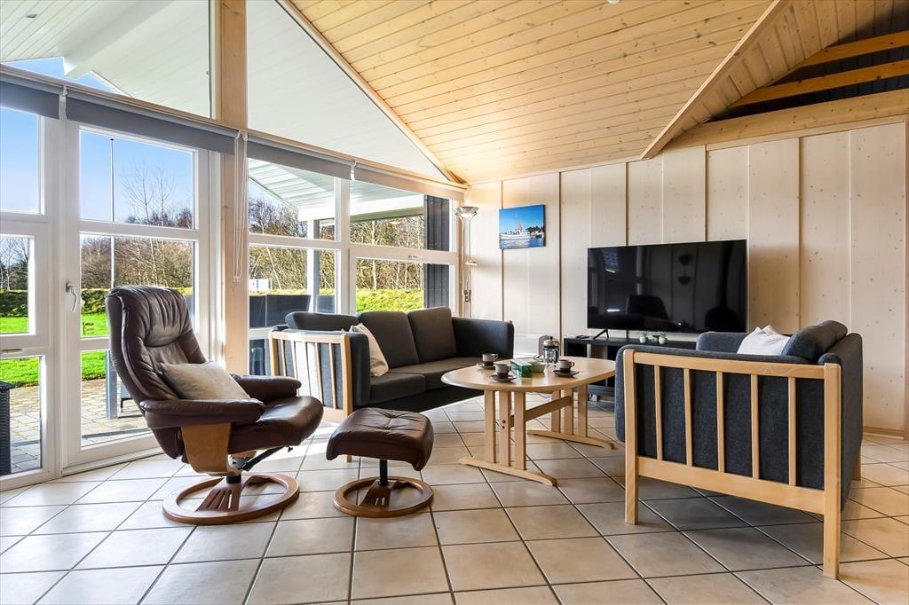 Mit Whirlpool und Sauna im Badezimmer, drei guten Schlafzimmern und einem Holzofen im Wohnzimmer ist es schön, wenn das Wetter Indoor-Aktivitäten zulässt. Das Haus lädt zum Entschleunigen und Entspannen mit Wellness und ganz entspannten Momenten ein – vielleicht auch mal unterbrochen von einem Spaziergang oder einem anderen Ausflug. Im Wohnzimmer lässt die große Fensterfront viel Tageslicht herein und durch die Terrassentür können Sie bequem in den Garten schlüpfen, wenn die Kinder oder der Hund toben und spielen möchten. Mittlerweile ist es aber auch verlockend, einfach im Wohnzimmer zu bleiben, um auf dem Sofa zu lesen, am Esstisch Kartenspiele zu spielen oder in der offenen und gut ausgestatteten Küche zu kochen.