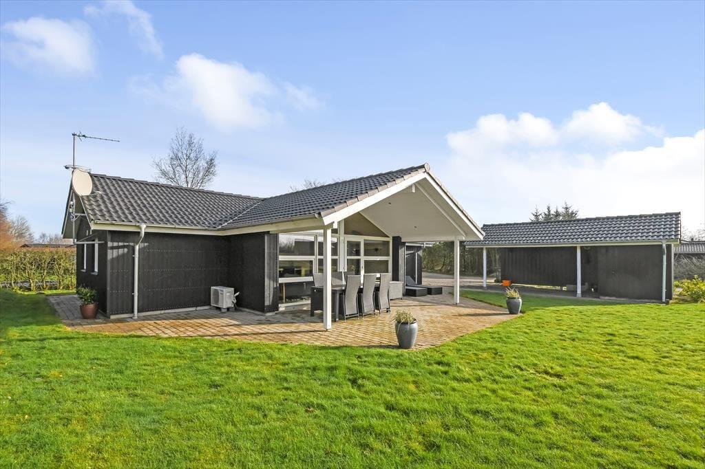 Die Terrassenumgebung bietet sowohl offene als auch überdachte Bereiche, sodass Sie dort sitzen können, wo Sie möchten. Wer gar nicht stillsitzen, sondern lieber mit der Familie toben und spielen möchte, findet auf der Rasenfläche, die durch einen kleinen Wall zur Straße hin abgeschirmt ist, ausreichend Platz. Für die Kleinsten gibt es eine Schaukel und Jung und Alt können sich darauf freuen, dass es schon Abend wird, den Grill anzünden und sich auf ein richtiges Festmahl unter freiem Himmel vorbereiten können. Das Auto kann entweder im Carport oder auf der Schotterfläche gegenüber der gesperrten Straße stehen bleiben.