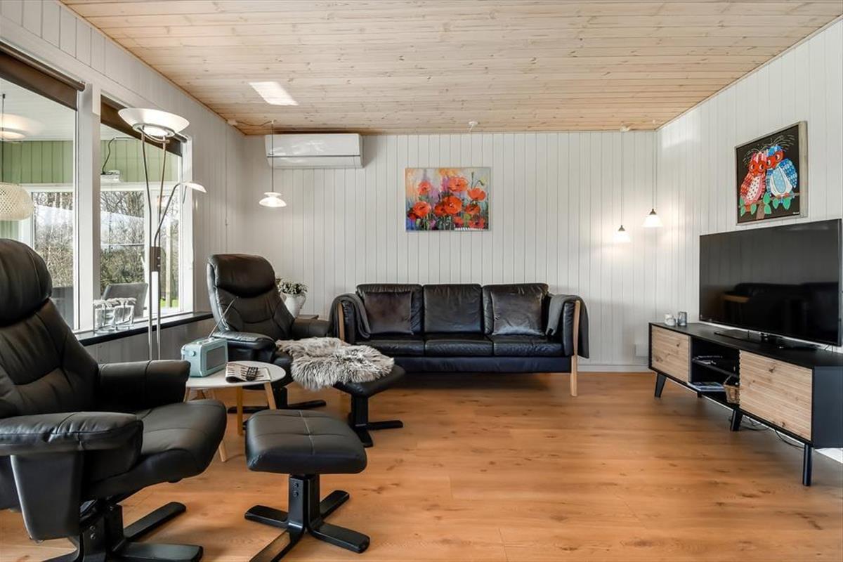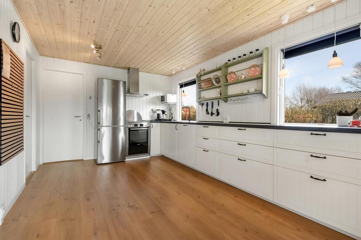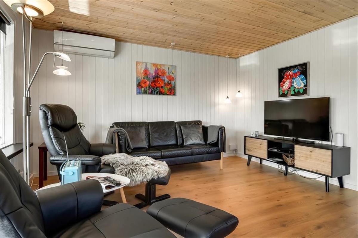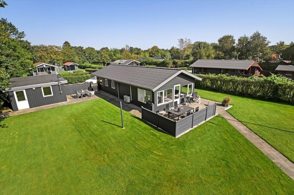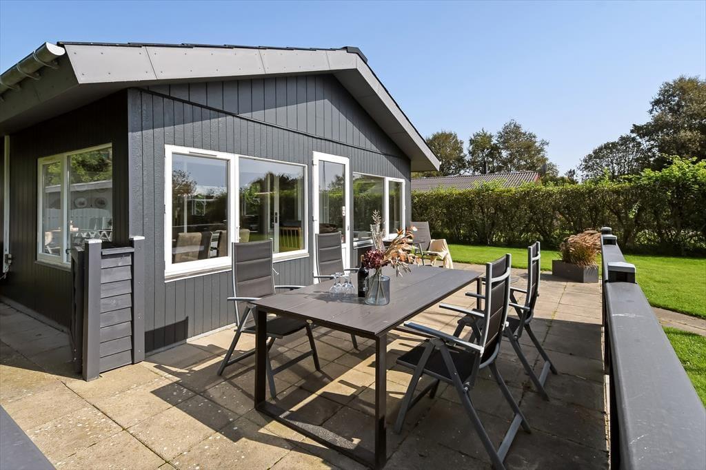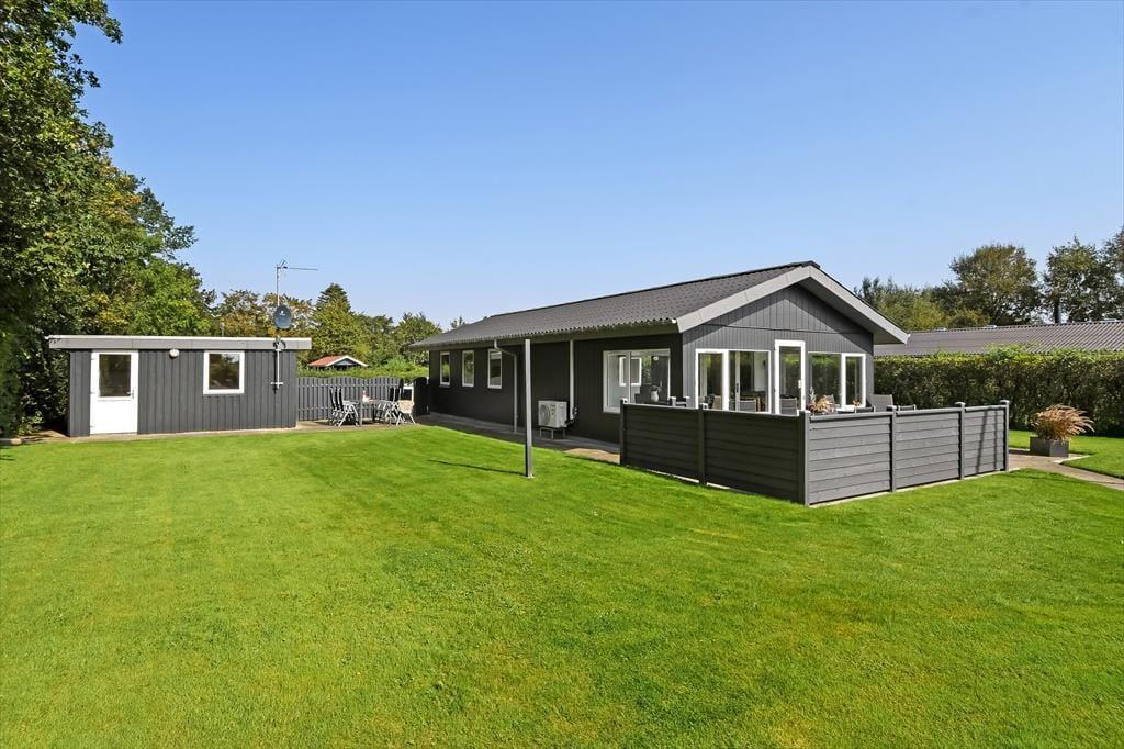 Es ist nicht nur die schwarze Holzfassade, die hier an der Adresse dafür sorgt, dass eine klassische, dänische Ferienhausatmosphäre herrscht. Im Inneren der Türen ist die Atmosphäre hell und freundlich, und die Räume laden zum Wohlfühlen ein – zum Beispiel in den drei Schlafzimmern und natürlich auch im gut ausgestatteten Wohnzimmer, in dem Wohnzimmer und Küche vereint sind. Der angrenzende Wintergarten kann an Tagen oder Abenden, an denen die Sonne scheint, ein dringend benötigter Hit sein. Und wenn es Ihnen zum Sitzen trotzdem zu heiß wird, können Sie die Gartentür öffnen, sodass Sie freien Durchgang zur Terrasse haben. Im Nebengebäude gibt es ein bequemes Sofa, und wenn Sie große Kinder oder Teenager in der Familie haben, denken diese vielleicht, dass es perfekt ist, einen privaten Rückzugsort zum Entspannen zu haben.