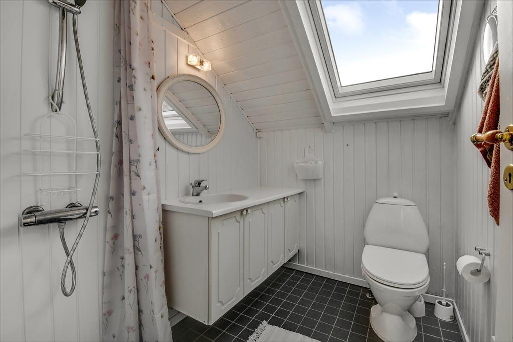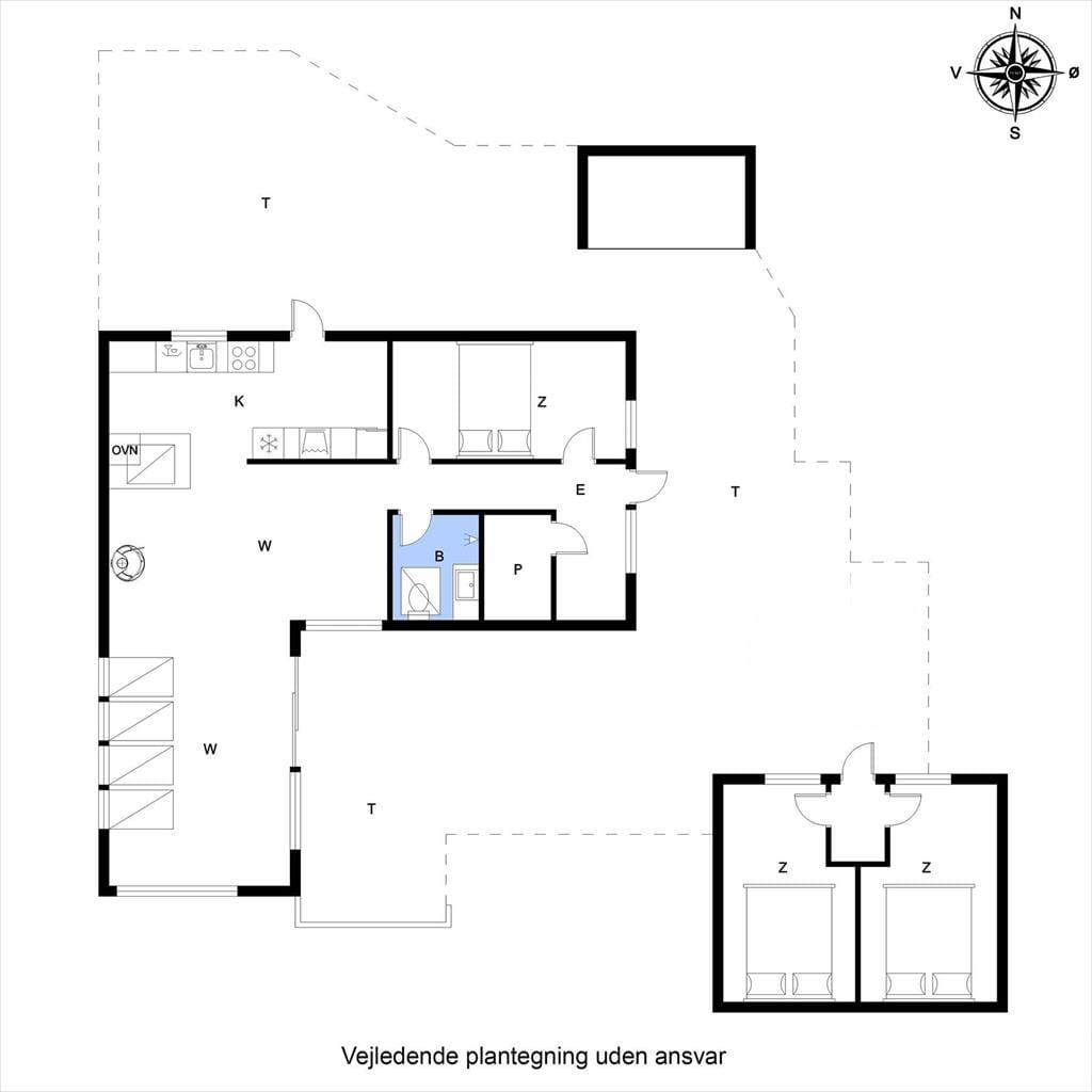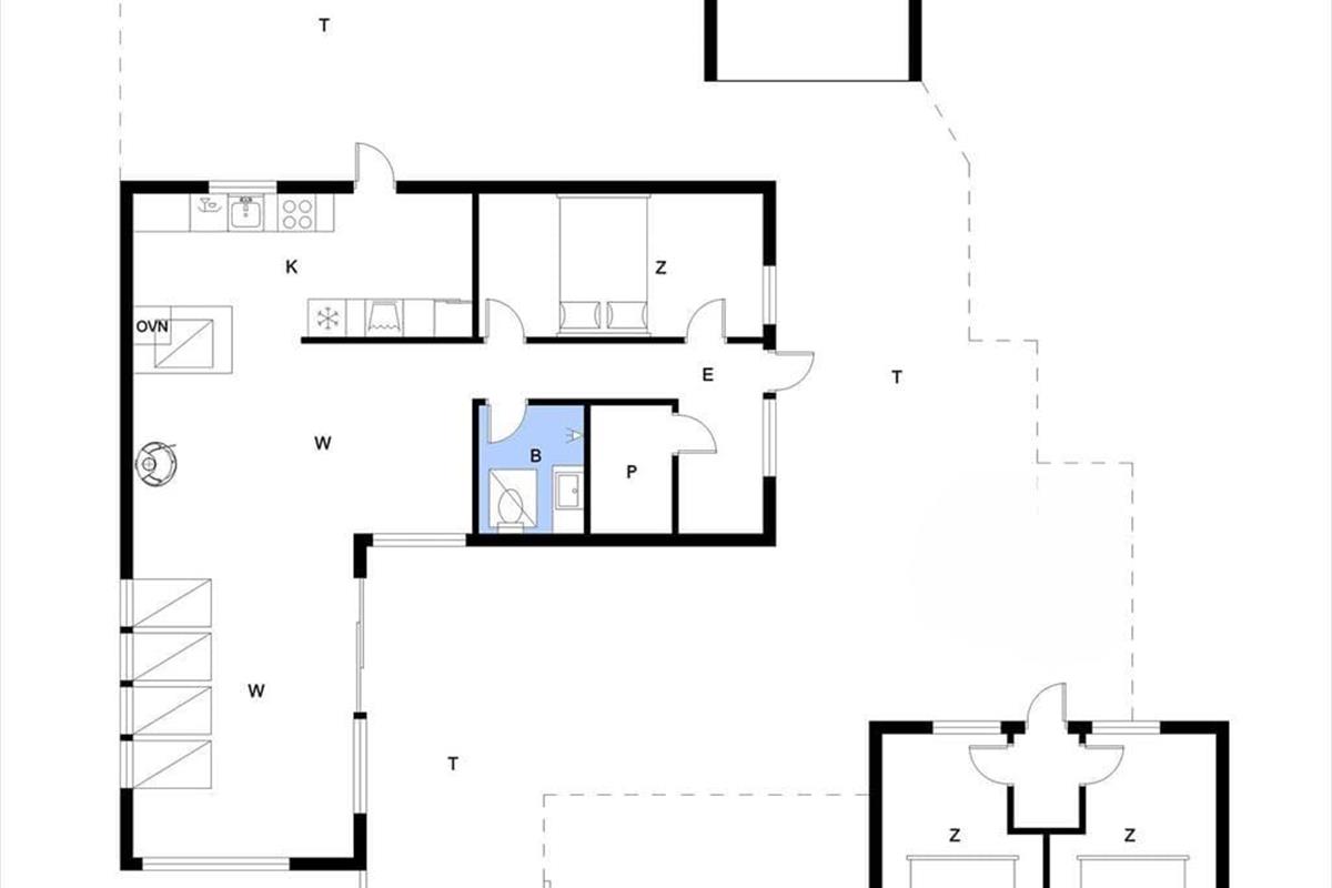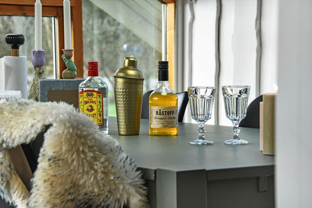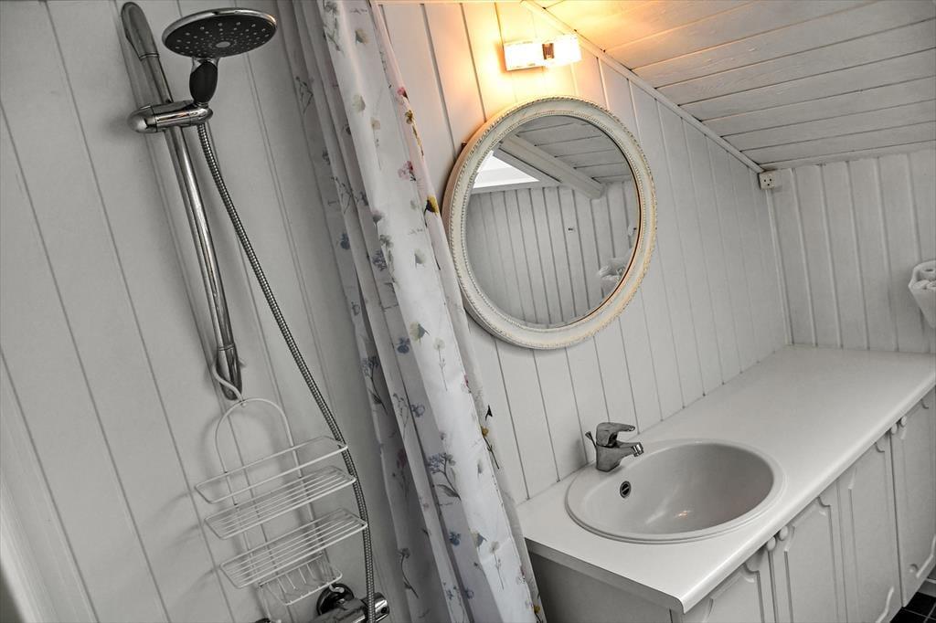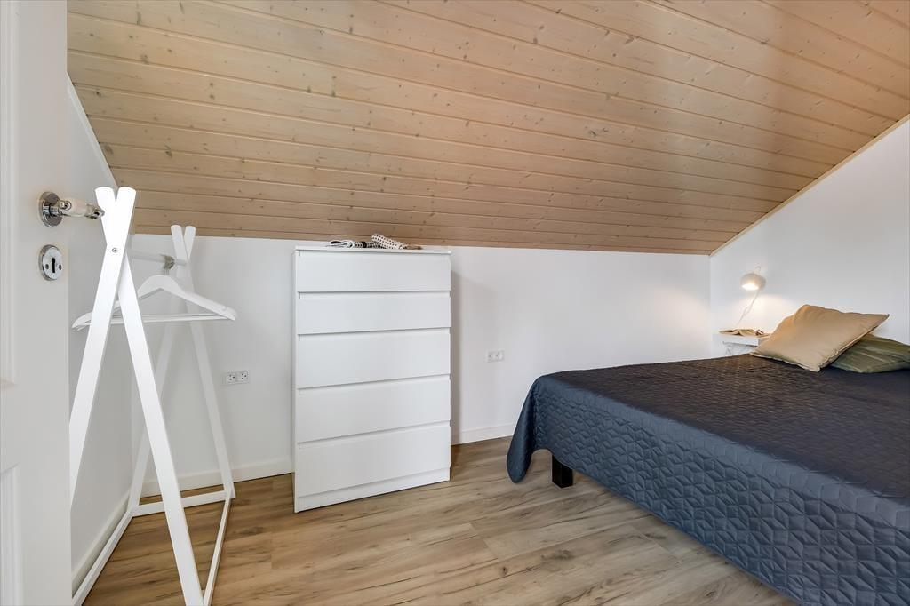 Dank der großen Fensterfront des Wohnzimmers, die bis unter das Dach reicht, können Sie vom Esstisch aus Sonne tanken und den Blick in den Garten werfen. Mit anderen Worten: Es ist ein wirklich schöner Ort zum Verweilen, egal ob Sie in Ruhe Zeitung lesen und Kaffee trinken, mit der Familie plaudern oder ein leckeres Essen mit Ihrem Partner teilen möchten. Auch die Sofaecke im Wohnzimmer lädt zum Entspannen ein – zum Beispiel bei einem Feuer im Holzofen und einem guten Film auf dem Flachbildschirm – und wenn man gerne kocht, lässt es sich hier wunderbar austoben in der offenen Küche. Ein Badezimmer und ein Schlafzimmer gehören zum Grundriss des Ferienhauses, außerdem gibt es im Nebengebäude zwei weitere Schlafzimmer, so dass Sie hier bis zu sechs Personen unterbringen können.
