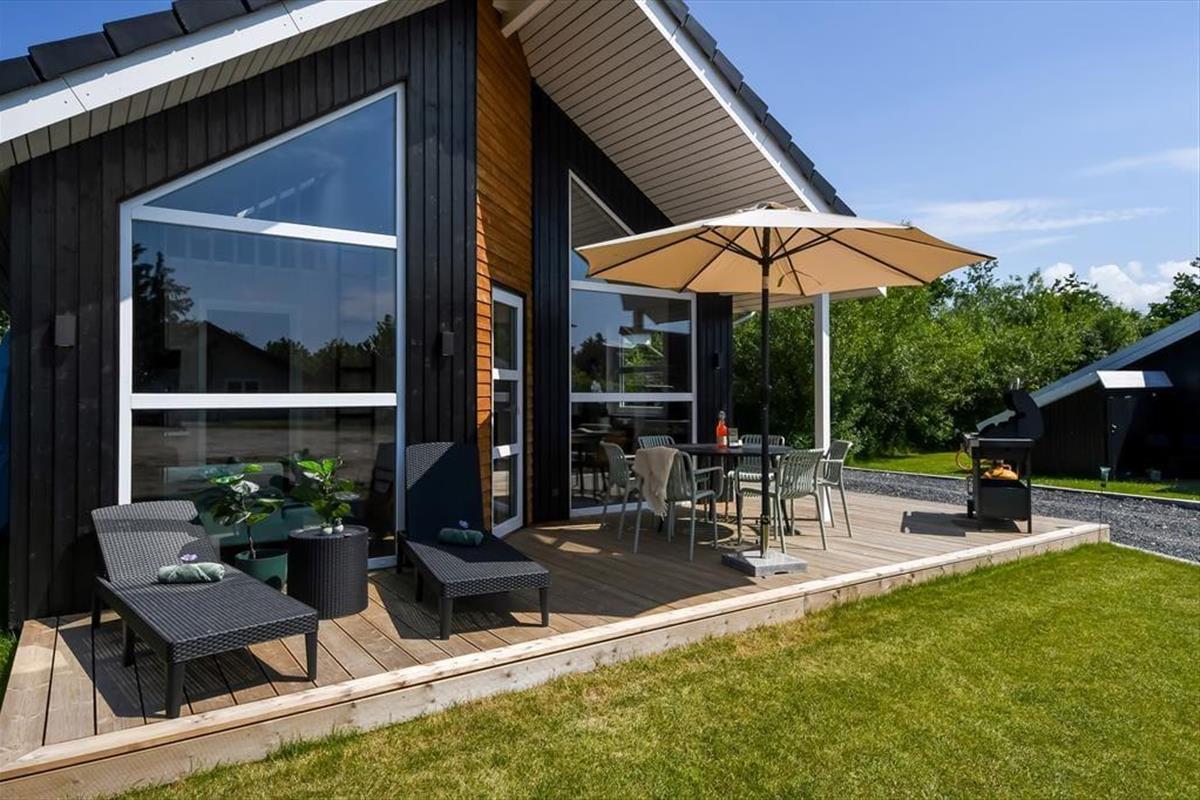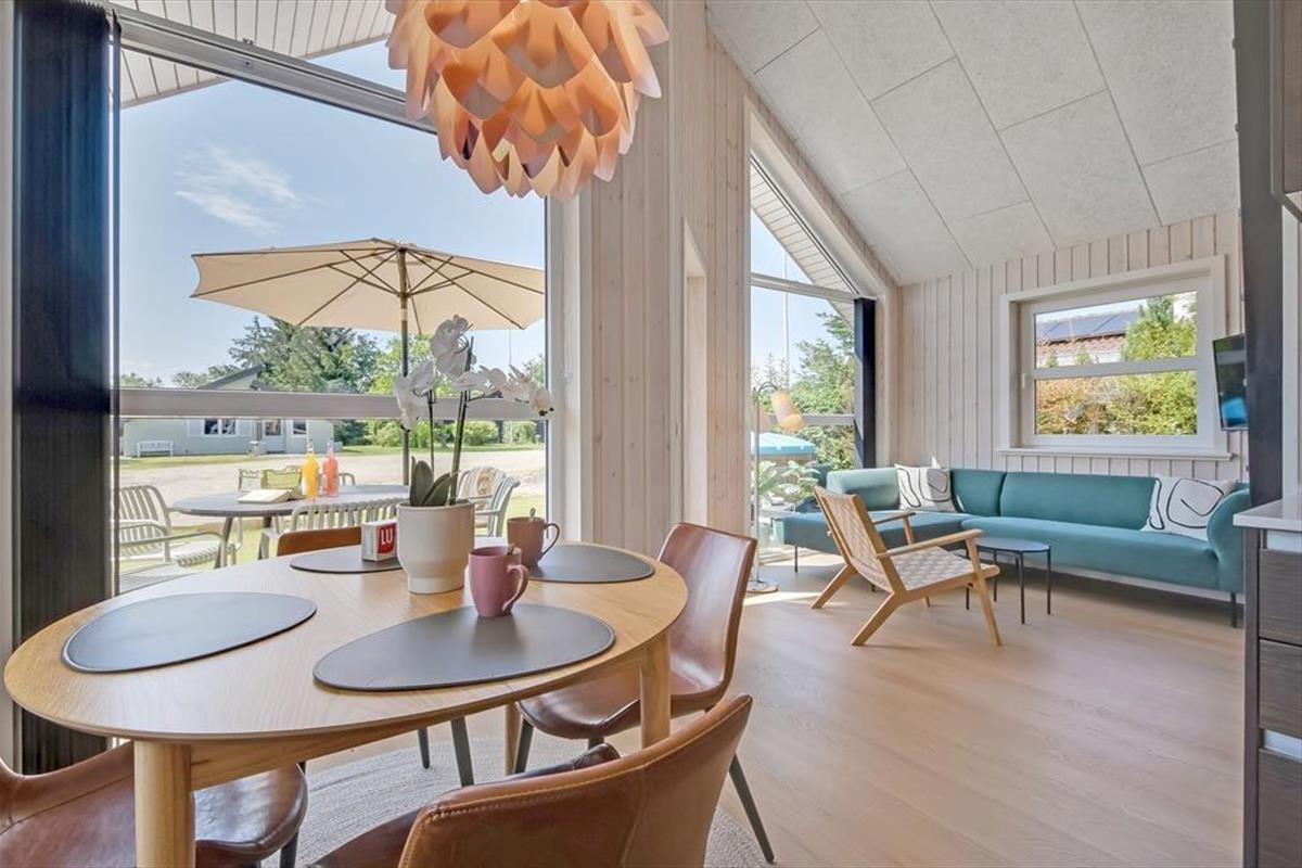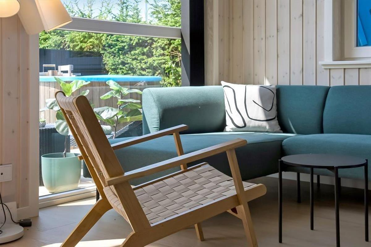 Bei deinem Ferienhaus wurde jeder einzelne Quadratmeter der 50 m² umfassenden Wohnfläche optimal genutzt, sodass das Haus ohne weiteres vier Personen beherbergt. Die beiden Schlafräume und das stilvolle Badezimmer präsentieren sich überaus einladend. Der schönste Raum ist jedoch der Wohnraum, der durch hohe Decken, große Fenster und einen gemütlichen Hängeboden geprägt wird. Das Interieur ist schön und komfortabel. Die moderne Küche fügt sich offen in den Wohnraum ein. Die Mahlzeiten genießt ihr gemeinsam am schönen Esstisch, es sei denn, die Sonne zieht euch hinaus auf das angrenzende, möblierte Terrassenareal.