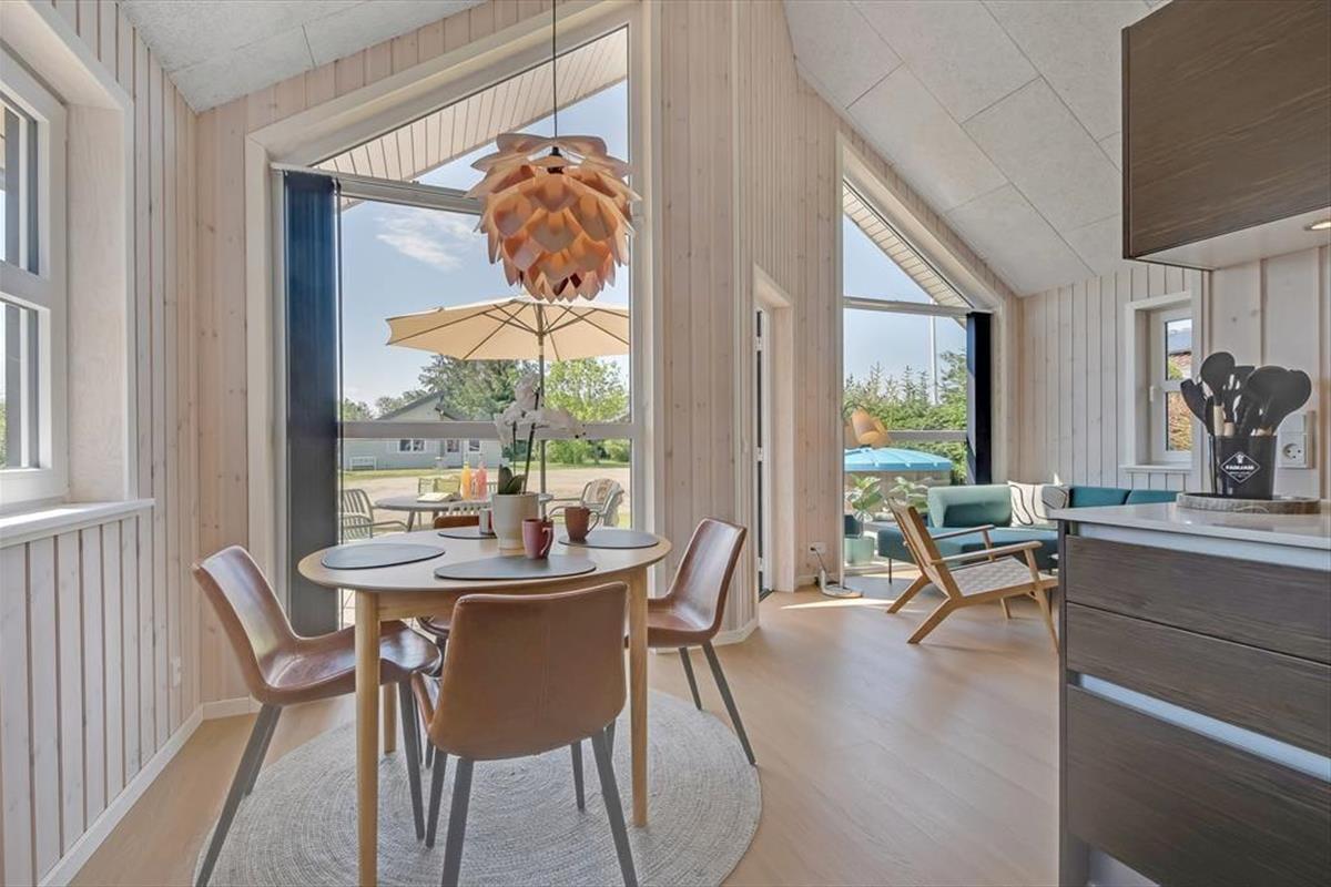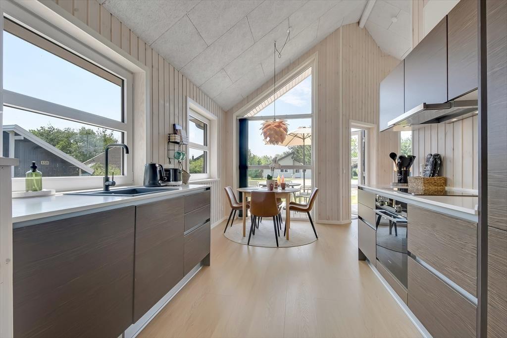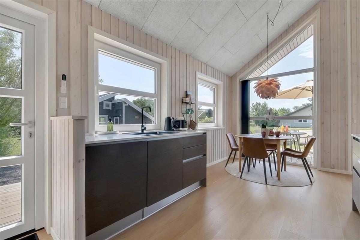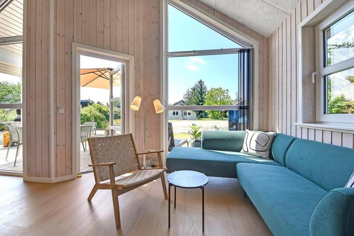 Bei deinem Ferienhaus wurde jeder einzelne Quadratmeter der 50 m² umfassenden Wohnfläche optimal genutzt, sodass das Haus ohne weiteres vier Personen beherbergt. Die beiden Schlafräume und das stilvolle Badezimmer präsentieren sich überaus einladend. Der schönste Raum ist jedoch der Wohnraum, der durch hohe Decken, große Fenster und einen gemütlichen Hängeboden geprägt wird. Das Interieur ist schön und komfortabel. Die moderne Küche fügt sich offen in den Wohnraum ein. Die Mahlzeiten genießt ihr gemeinsam am schönen Esstisch, es sei denn, die Sonne zieht euch hinaus auf das angrenzende, möblierte Terrassenareal.