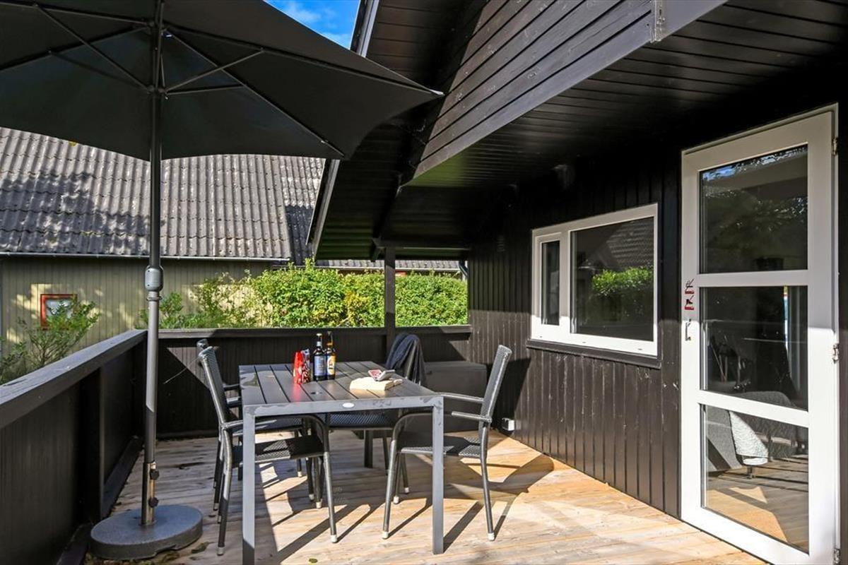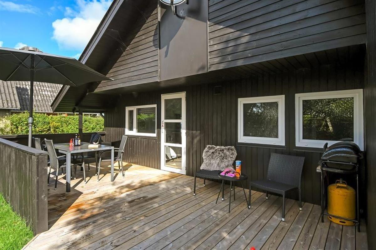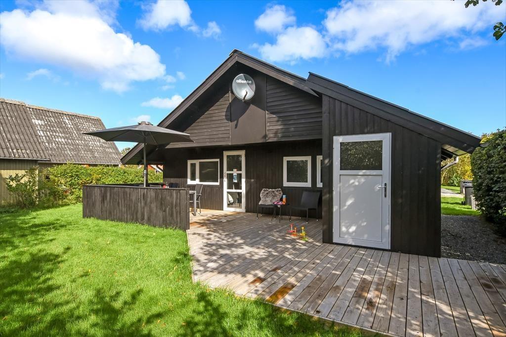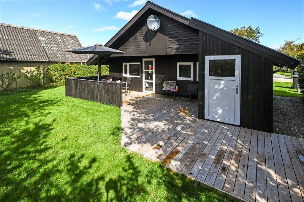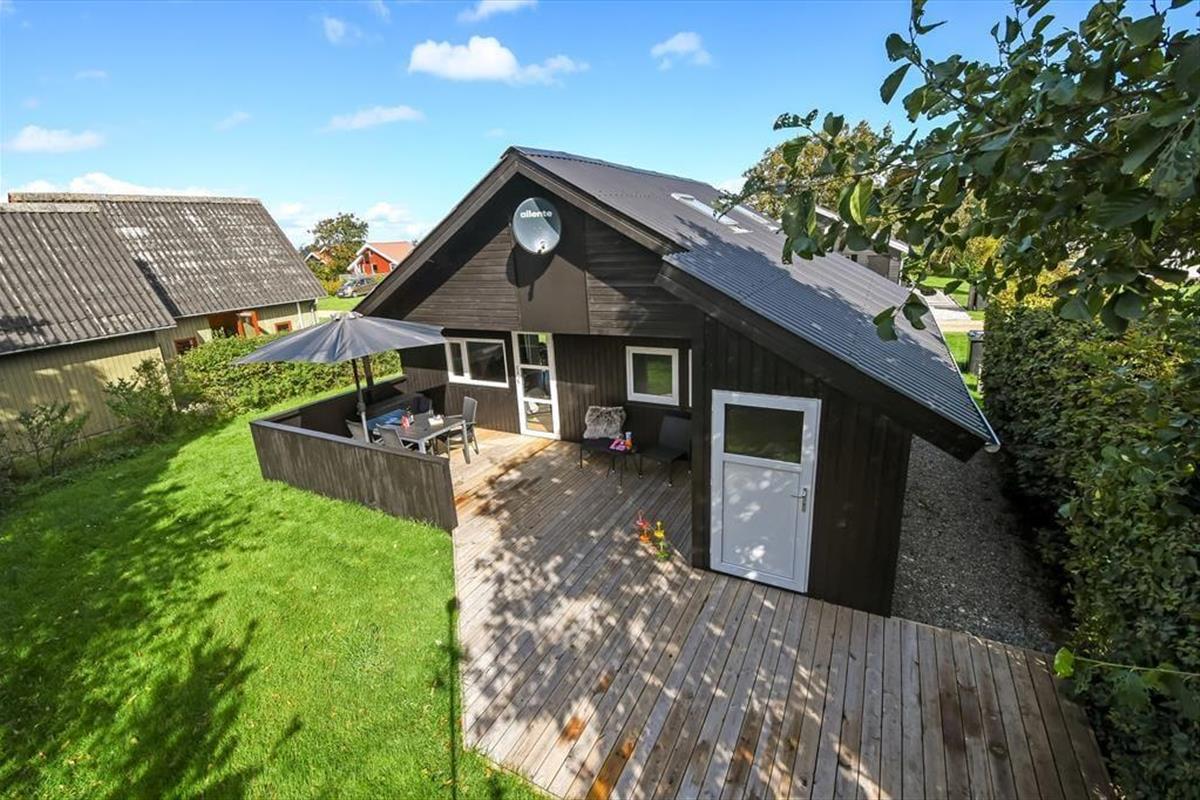 In Richtung der kleinen Sackgasse schließt ein gepflasterter Terrassenbereich mit einer davor befindlichen Rasenfläche an das Ferienhaus. Dort kannst du deinen Pkw parken und deine Kinder haben viel Platz zum Spielen. Wenn du dich mit deinen Lieben in vollen Zügen entspannen möchtest, solltet ihr euch in den nach Süden ausgerichteten Garten hinter dem Haus begeben. Hier erwartet euch eine große Holzterrasse, die zu Sonnenbädern im Liegestuhl, zu Nickerchen unter dem Sonnenschirm und zu stimmungsvollen Grillabenden einlädt. Lauschige Sommerabende werdet ihr garantiert bis zum Schlafengehen auf der Terrasse verbringen - es sei denn, es zieht euch auf die grünen Gemeinschaftsareale des Gebiets oder in den idyllischen Hafen Bork Havns.