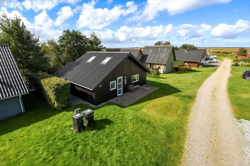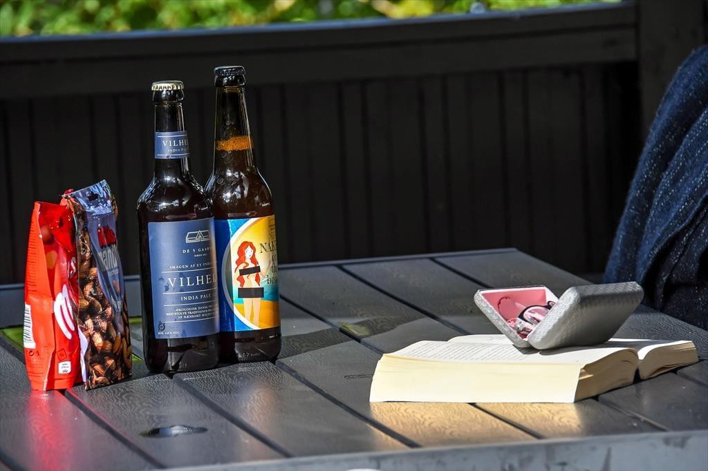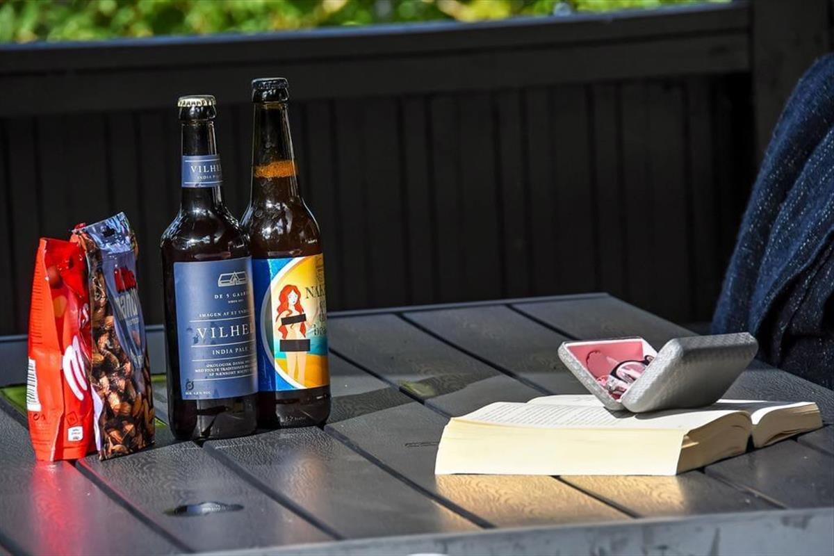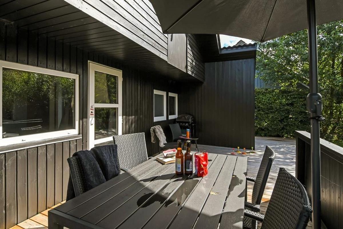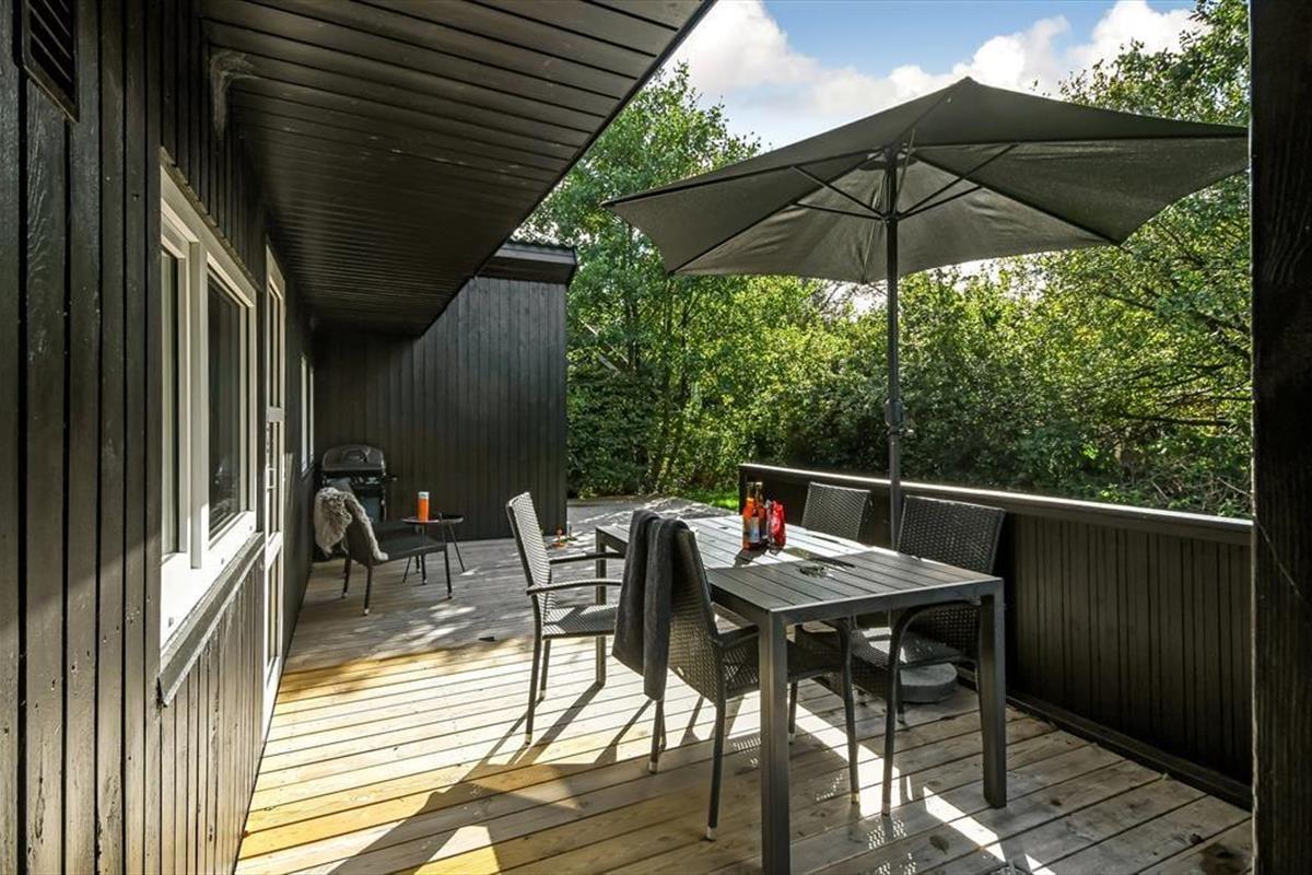 In Richtung der kleinen Sackgasse schließt ein gepflasterter Terrassenbereich mit einer davor befindlichen Rasenfläche an das Ferienhaus. Dort kannst du deinen Pkw parken und deine Kinder haben viel Platz zum Spielen. Wenn du dich mit deinen Lieben in vollen Zügen entspannen möchtest, solltet ihr euch in den nach Süden ausgerichteten Garten hinter dem Haus begeben. Hier erwartet euch eine große Holzterrasse, die zu Sonnenbädern im Liegestuhl, zu Nickerchen unter dem Sonnenschirm und zu stimmungsvollen Grillabenden einlädt. Lauschige Sommerabende werdet ihr garantiert bis zum Schlafengehen auf der Terrasse verbringen - es sei denn, es zieht euch auf die grünen Gemeinschaftsareale des Gebiets oder in den idyllischen Hafen Bork Havns.