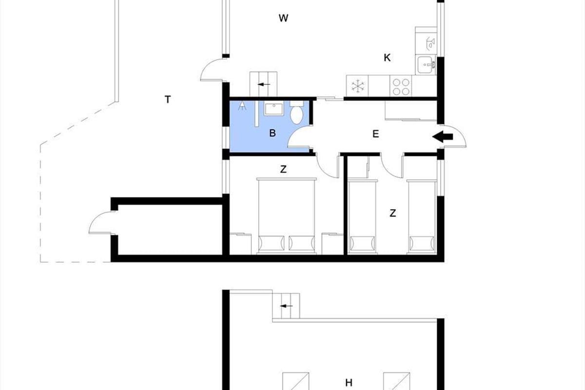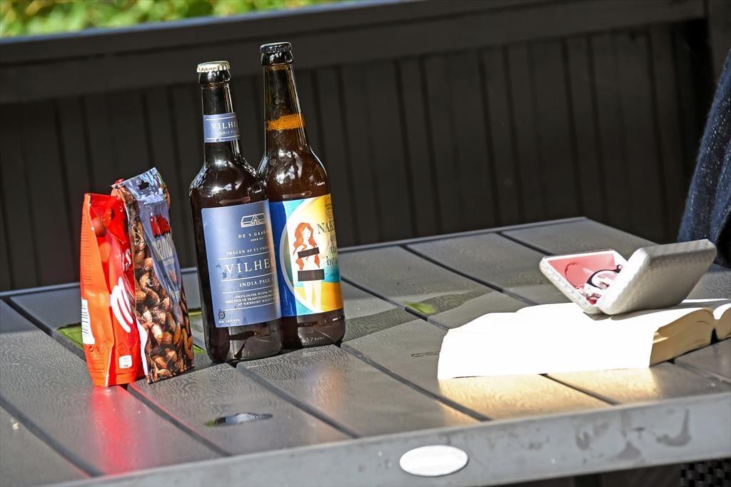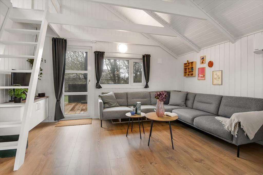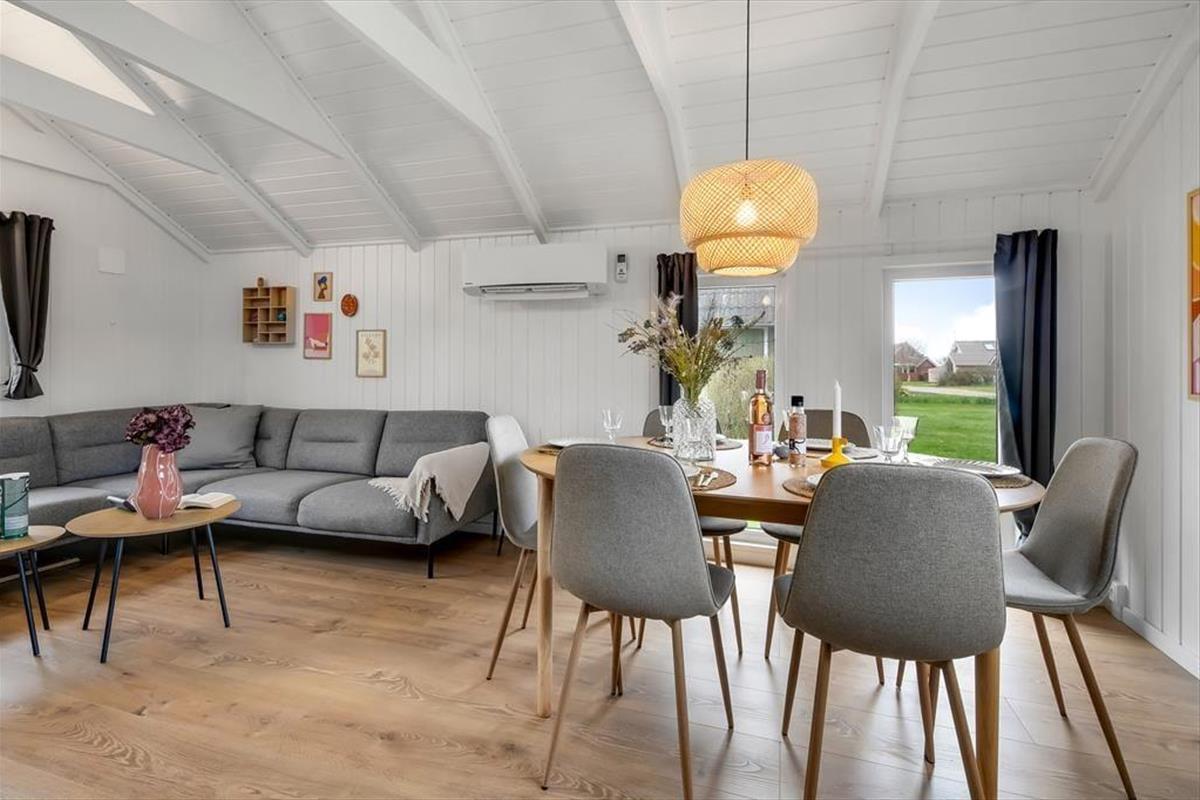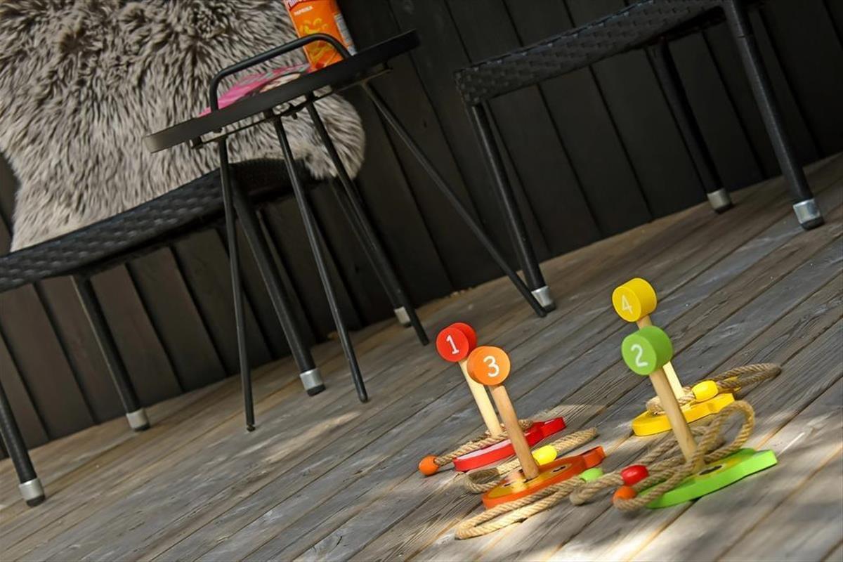 In Richtung der kleinen Sackgasse schließt ein gepflasterter Terrassenbereich mit einer davor befindlichen Rasenfläche an das Ferienhaus. Dort kannst du deinen Pkw parken und deine Kinder haben viel Platz zum Spielen. Wenn du dich mit deinen Lieben in vollen Zügen entspannen möchtest, solltet ihr euch in den nach Süden ausgerichteten Garten hinter dem Haus begeben. Hier erwartet euch eine große Holzterrasse, die zu Sonnenbädern im Liegestuhl, zu Nickerchen unter dem Sonnenschirm und zu stimmungsvollen Grillabenden einlädt. Lauschige Sommerabende werdet ihr garantiert bis zum Schlafengehen auf der Terrasse verbringen - es sei denn, es zieht euch auf die grünen Gemeinschaftsareale des Gebiets oder in den idyllischen Hafen Bork Havns.