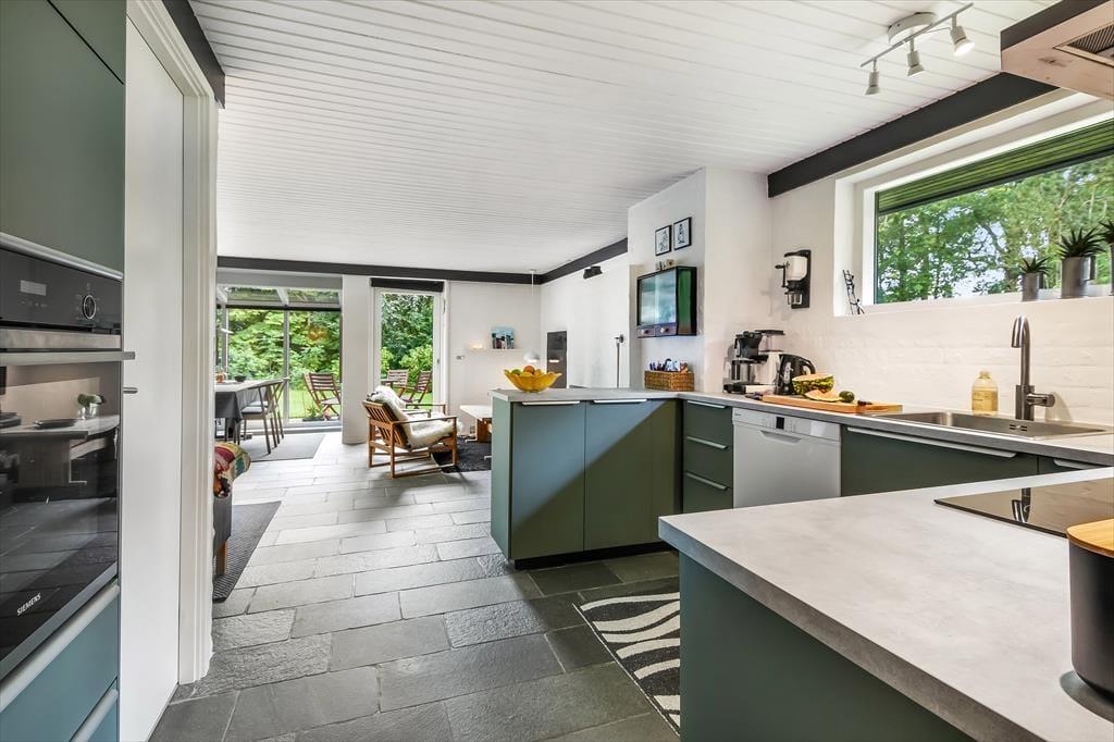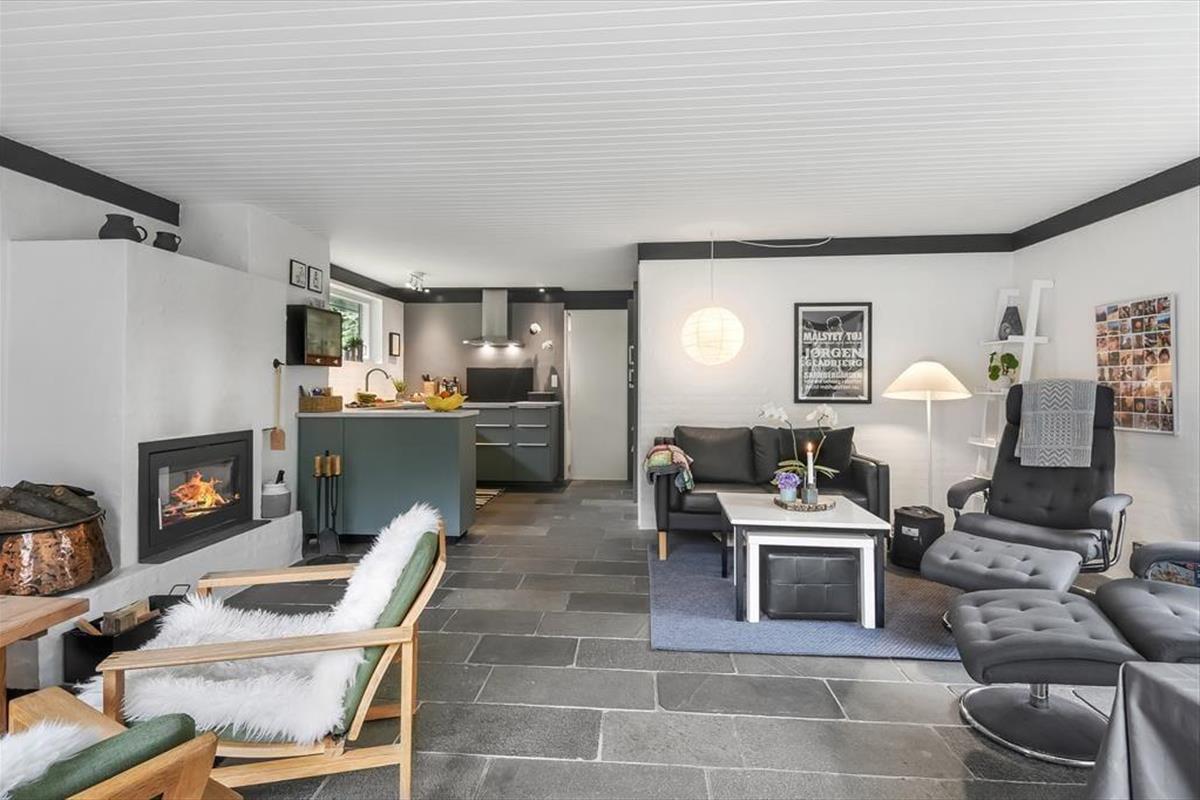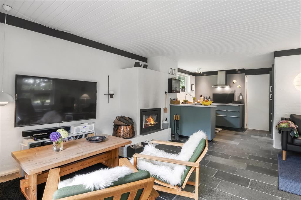 Bei Ihrer Ankunft betreten Sie die große und geräumige Diele des Hauses. Es gibt sowohl Platz für einen Kinderwagen als auch Mäntel, und hier können die praktischen Aufgaben des Urlaubs problemlos erledigt werden. Das Haus verfügt außerdem über zwei große Schlafzimmer mit viel Platz, sowie ein großes Badezimmer und eine extra Toilette. Weiter im Haus erreichen Sie den großen und geräumigen Wohnbereich mit offener und heller Küche, Holzofen und einer gemütlichen Sofagruppe, die zum gemütlichen Entspannen einlädt, wenn das Wetter nicht für Outdoor-Aktivitäten geeignet ist. Im nach Süden ausgerichteten Erker haben Sie den ganzen Tag Sonne und können alle köstlichen Mahlzeiten genießen, die in der Küche des Hauses zubereitet werden können, die einen direkten Blick auf den Fjord hat. Ein Ferienhaus, das sowohl für Paare geeignet ist, die eine gemütliche und ruhige Zeit verbringen möchten, als auch für Familien, die sich Aktivität und viel Platz wünschen.
