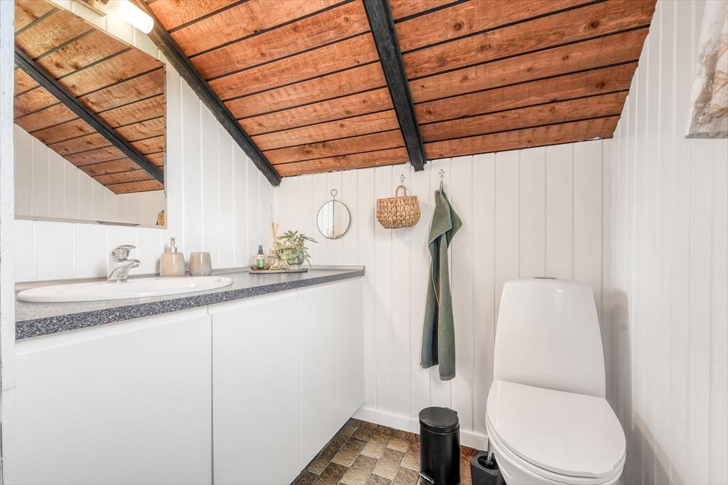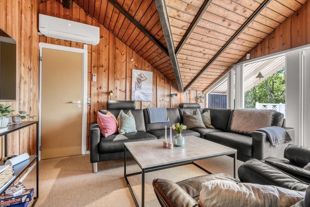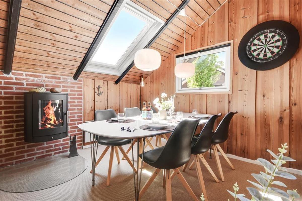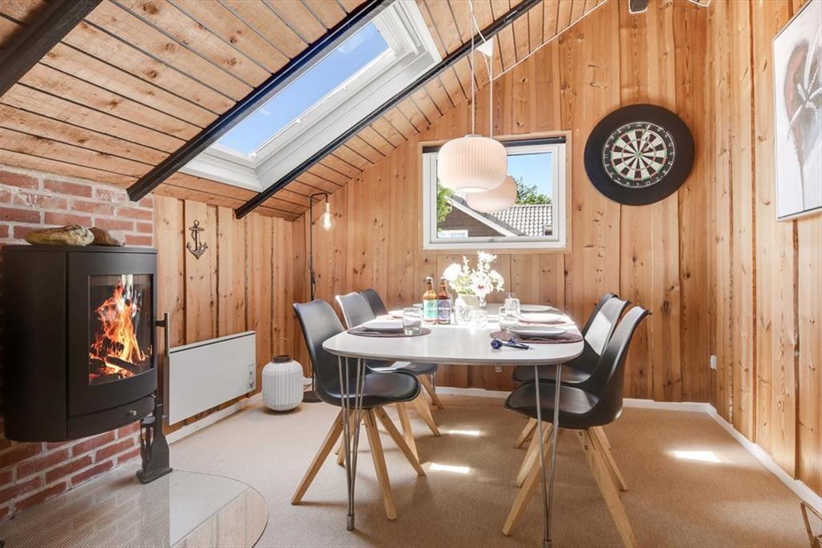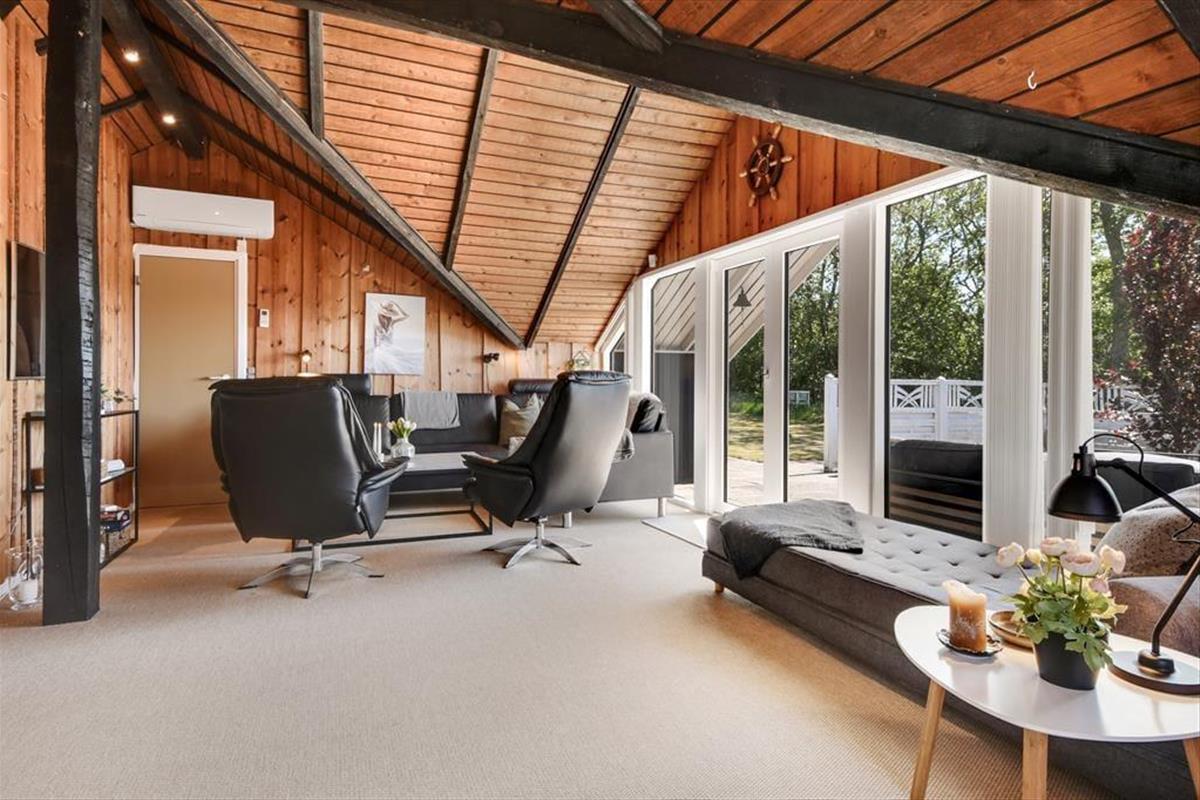 Unmittelbar nach deiner Ankunft wirst du dich bei diesem Ferienhaus - drinnen wie draußen - heimisch und wohlfühlen. Dein Ferienhaus ist der Inbegriff klassisch dänischer Ferienhausatmosphäre. Herzstück deines Urlaubsdomizils ist der geräumige Aufenthaltsbereich, der sich offen aus dem Wohnraum und der Küche zusammensetzt und mit hohen Decken besticht. Die offene Balkenlage, die Holzvertäfelungen der Wände und die Mauersteinelemente verleihen dem stimmungsvollen, einladenden Raum rustikalen Charme. Du wirst dich zu jeder Zeit bestens erholen und entspannen, ganz gleich, ob du mit deinen Lieben die Mahlzeiten genießt, mit den Kindern auf dem Teppich spielst oder ihr es euch in geselliger Runde in der komfortablen Polstersitzgruppe gemütlich macht. Der Rest der Wohnfläche ist drei Schlafräumen und einem ansprechenden Duschbadezimmer überlassen.