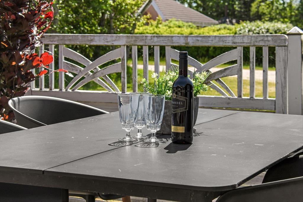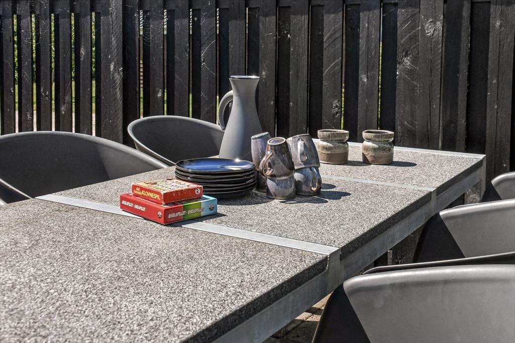 Die große Terrasse deines Ferienhauses wirkt wie eine natürliche Erweiterung des Aufenthaltsbereichs. Die Terrasse umgibt nahezu das gesamte Mietobjekt. Dadurch findest du zu jeder Zeit ein gemütliches Plätzchen in der Sonne und auf Wunsch natürlich auch im Schatten. Ein Teil der Terrasse ist überdacht, sodass dir selbst ein kleiner Regenschauer nichts anhaben kann. Falls deine Familie gerne im Freien spielt, werdet ihr den Garten lieben. Die Rasenfläche bietet viel Platz für Wikingerschach, Krocket und alle erdenklichen anderen Gartenspiele. Entspannten, geselligen Urlaubstagen steht in dieser schönen Urlaubsoase absolut nichts im Wege.