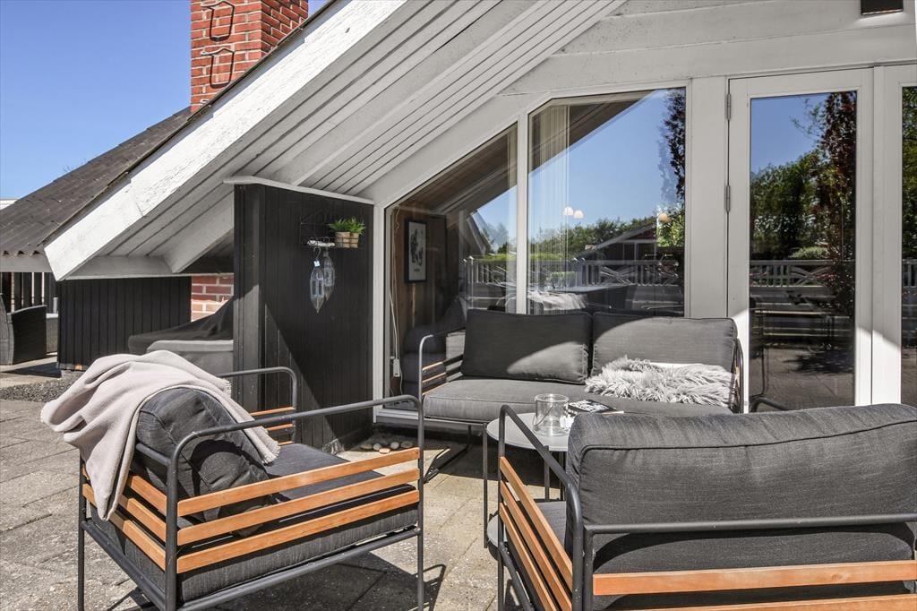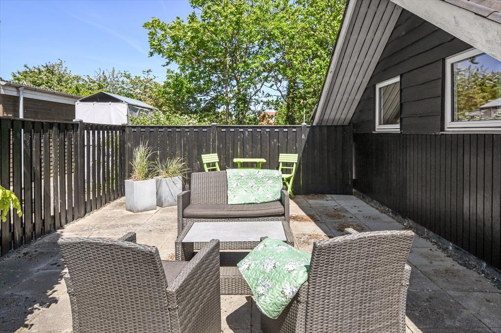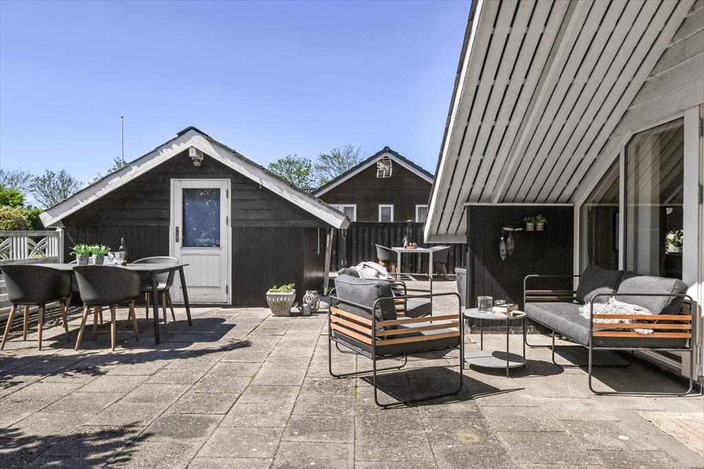 Lediglich 700 Meter trennen dieses klassisch dänische Ferienhaus vom stimmungsvollen Hafen Bork Havns. Mit seinem gemütlichen Aufenthaltsraum und guten Terrassenarealen bildet das Haus einen schönen Rahmen für deinen Urlaub im Familien- oder Freundeskreis.