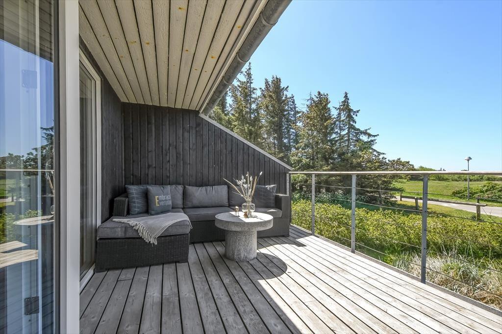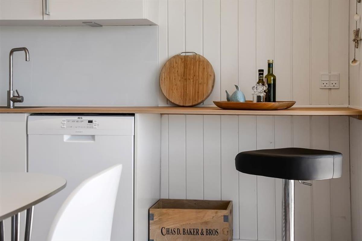 Auf der sonnigen Terrasse, die sich an der Süd- und Westfassade des Hauses entlangzieht, kannst du das Leben im Freien genießen. Das Grundstück ist gut eingezäunt, so dass die Terrasse sehr privat und abgeschieden ist, wo du leicht einen langen Nachmittag verbringen kannst, um die Ruhe zu genießen. Die Terrasse ist gut möbliert und verfügt sowohl über einen Esstisch als auch über Liegestühle. Am Ende des Tages kannst du den Grill anschmeißen und den Tisch für eine gemütliche Mahlzeit unter dem Sternenhimmel decken. Oder du gehst auf den Balkon im ersten Stock und genießt den Abendhimmel und die letzten Sonnenstrahlen auf dem schimmernden Wasser des Fjordes.
