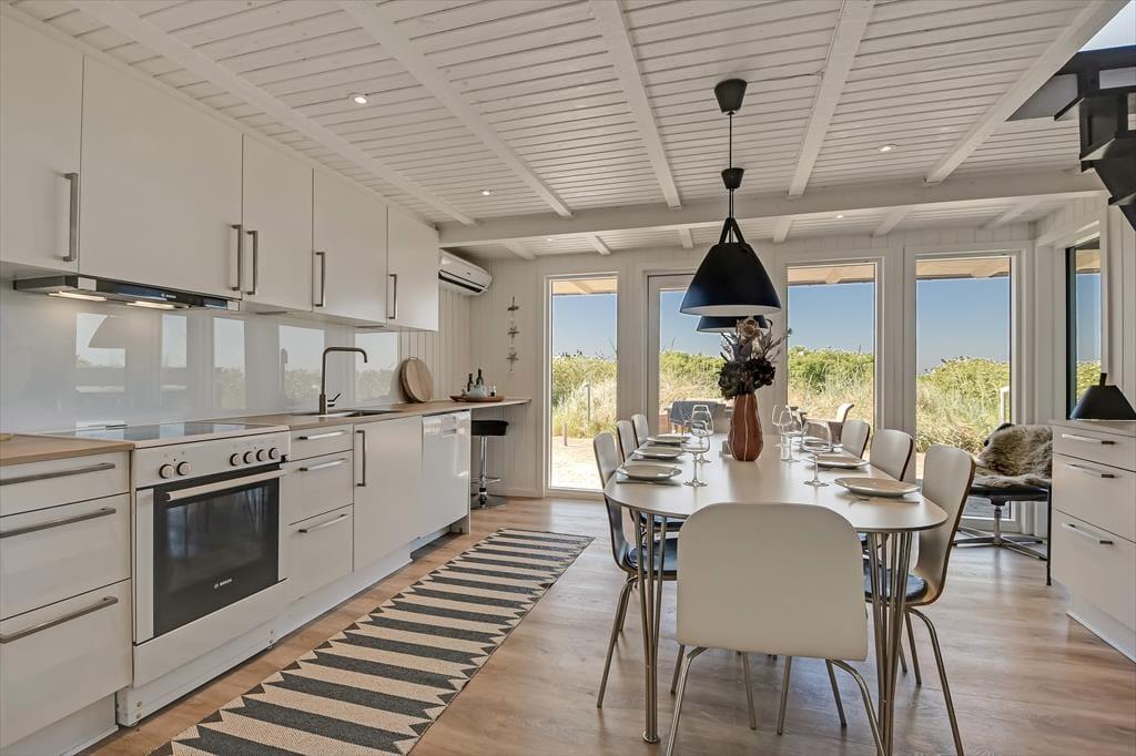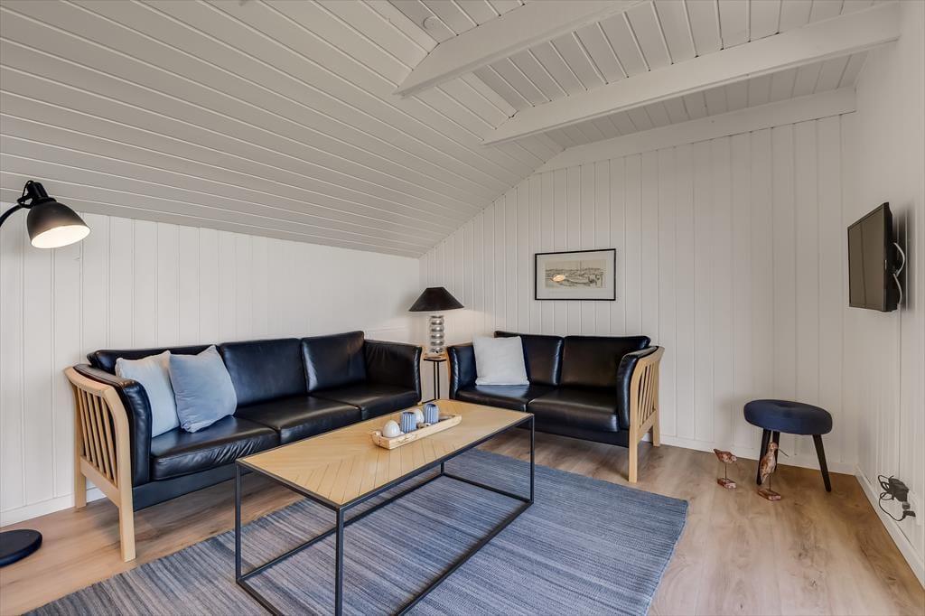 Träumst du von einem Urlaub mit dem Wasser direkt zu deinen Füßen? Dieses helle und einladende Ferienhaus in Bork Havn liegt nur wenige Schritte vom Surfstrand der Stadt entfernt - und vom ersten Stock des Hauses hast du sogar einen Blick auf den Ringkøbing Fjord.