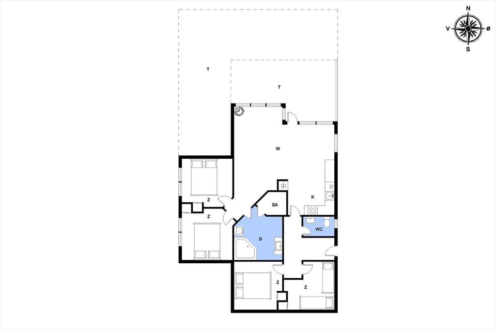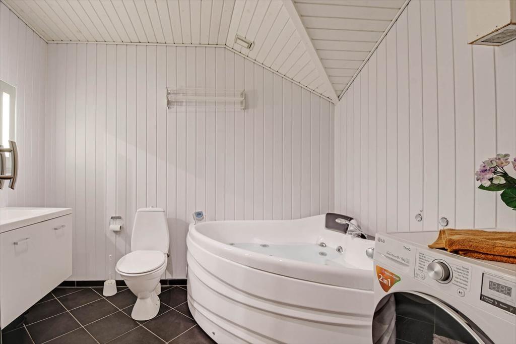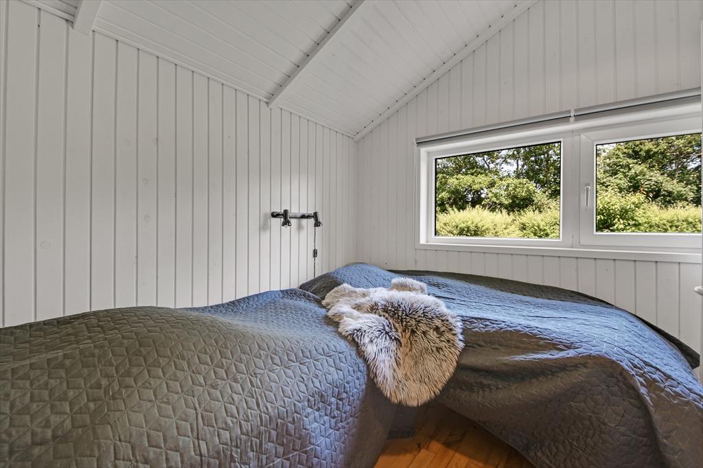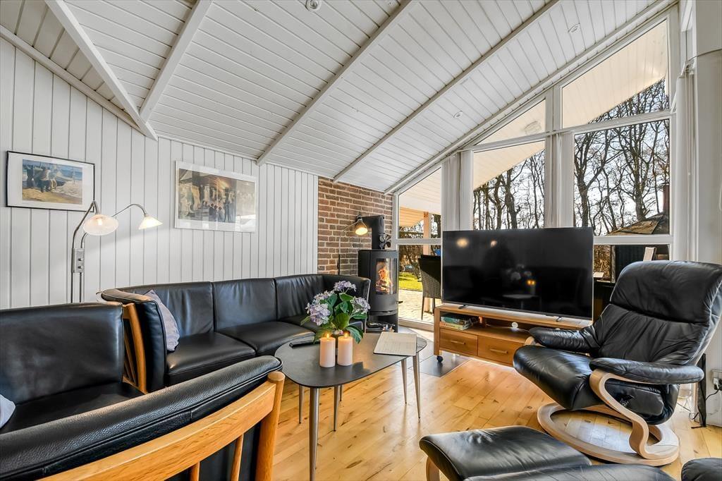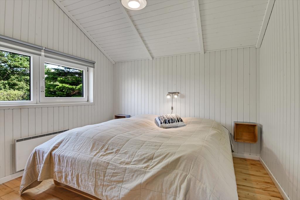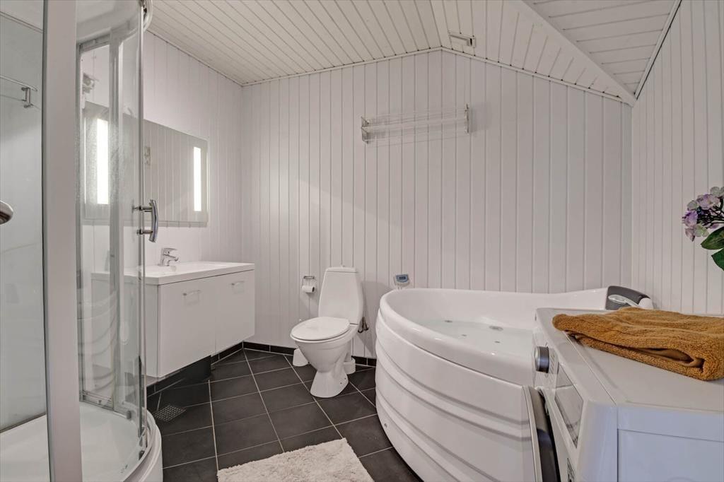 Die durchdachte Raumaufteilung bietet Platz für bis zu acht Personen – zum Beispiel für zwei Familien, oder wenn sowohl Kinder als auch Erwachsene ihre Freunde mit in den Urlaub nehmen möchten. Die vier Schlafzimmer sind paarweise angeordnet, während das Gästebad und das große Badezimmer zentral im Haus verteilt sind. Im großen Badezimmer kannst du im Whirlpool und in der Sauna herrlich entspannen. Wenn sich alle zu Brett- und Ratespielen oder zu einem köstlichen Essen versammeln, findet dies im schönen Wohnbereich statt. Eine gut ausgestattete Küche ist in das Wohnzimmer integriert, welches einen Kaminofen in der Nähe des Sofabereichs, einen gemütlichen Essbereich sowie ein großes Giebelfenster mit Terrassentür bietet.