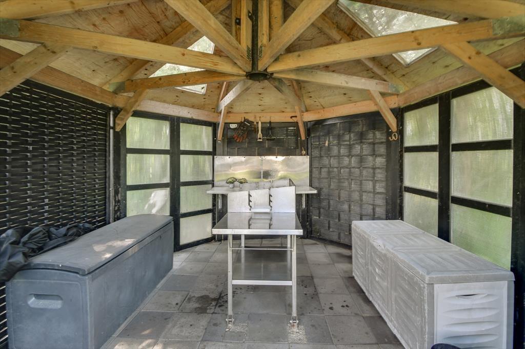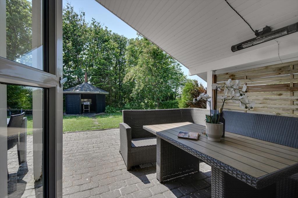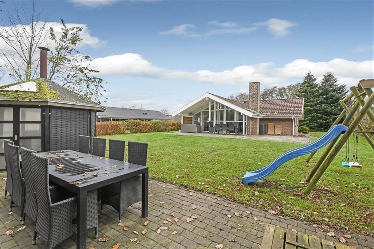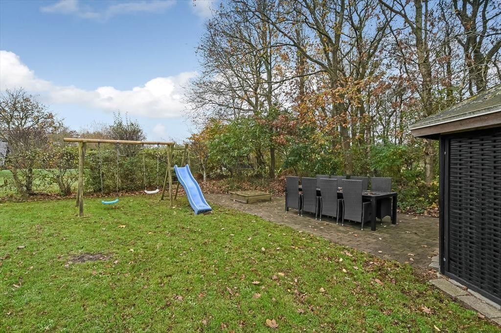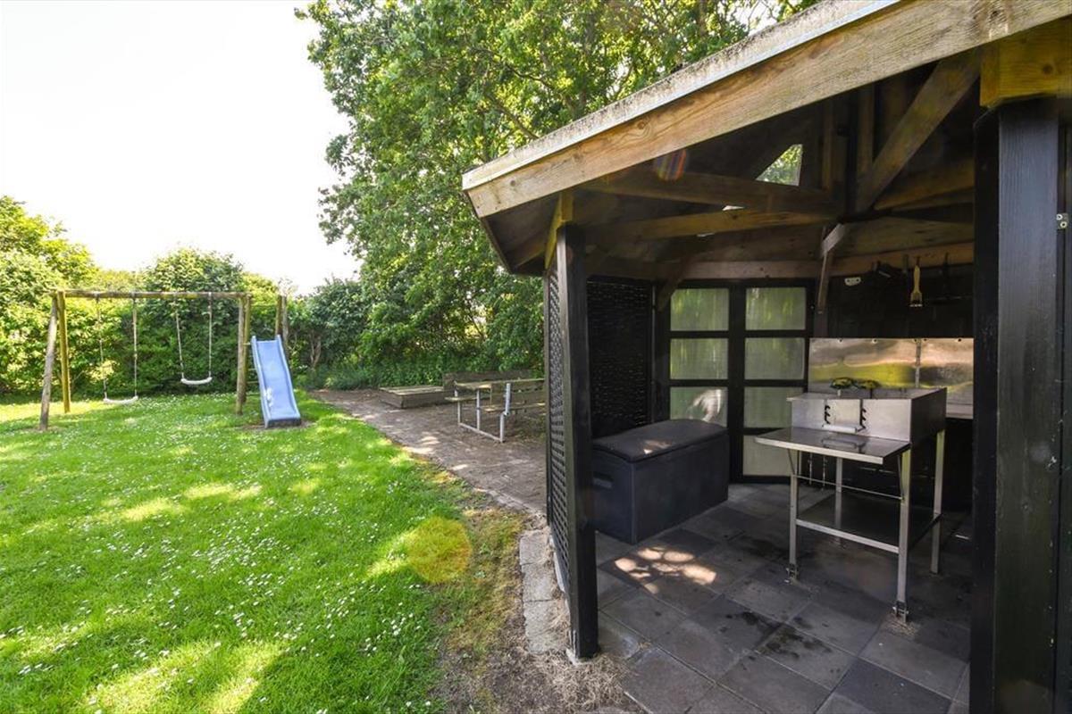 Das Grundstück des Ferienhauses ist grün und gut durch dichte Randbepflanzung von den Nachbarn abgeschirmt. Die Straße endet als Sackgasse, sodass dein Urlaub in ungestörter und ruhiger Umgebung stattfinden kann. Auf der gepflasterten Fläche vor dem Haus können mehrere Autos parken. Es besteht die Möglichkeit, ein Elektroauto aufzuladen, falls du mit einem solchen ankommst. Der nach Süden ausgerichtete Garten ist der Ort, an dem du den Sommer so richtig genießen wirst – entweder auf der sonnigen und teilweise überdachten Terrasse oder auf der Rasenfläche, die zu unterhaltsamen Gartenspielen für Groß und Klein geradezu einlädt. Die jüngeren Urlauber werden sich sicher über die Schaukeln, die Rutsche und den Sandkasten freuen. Und wenn du davon träumst, das Abendessen im Freien zuzubereiten, ist der Grillpavillon genau der richtige Ort für dich.