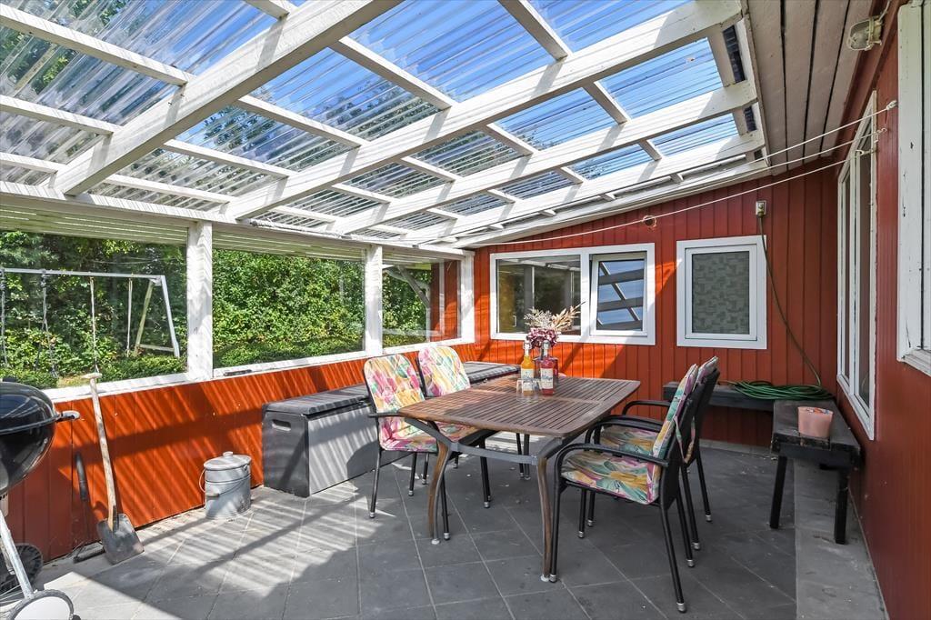 Wenn das Wetter nicht zum Brettspiel und heißem Kakao am Kaminofen einlädt, sondern eher zum Sonnenbaden und Sommermittagessen unter freiem Himmel, ist das wunderschöne Grundstück der perfekte Ort dafür. Es wird von Bäumen und Hecken umrahmt und der Rasen lädt dazu ein, dass Kinder und Erwachsene einen Ball oder Frisbee nehmen, um sich im Grünen auszutoben. Für die jüngsten Familienmitglieder gibt es Spielmöglichkeiten und die Feuerstelle wird bei Groß und Klein beliebt sein – wenn euch nicht die Terrasse dazu verführt, euch in Gartenstühle und Liegen zurückzulehnen. Die Terrasse ist teilweise überdacht und ein Grill steht bereit, sodass das Abendessen problemlos im Freien zubereitet werden kann.