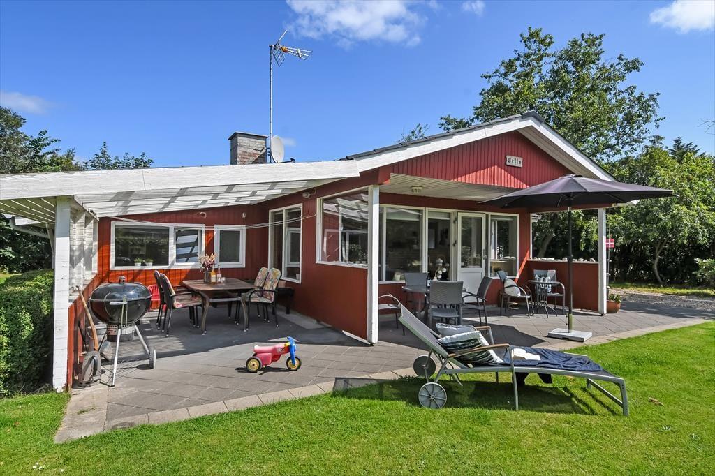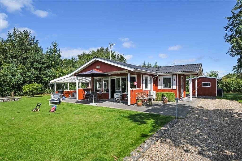 Wenn du klassische, dänische Ferienhäuser und familienfreundliche Gartenidylle magst, wirst du sicherlich dieses rot gestrichene Holzhaus lieben, das auf einem herrlichen, grünen Grundstück in einer ruhigen Ecke von Bork Havn liegt.