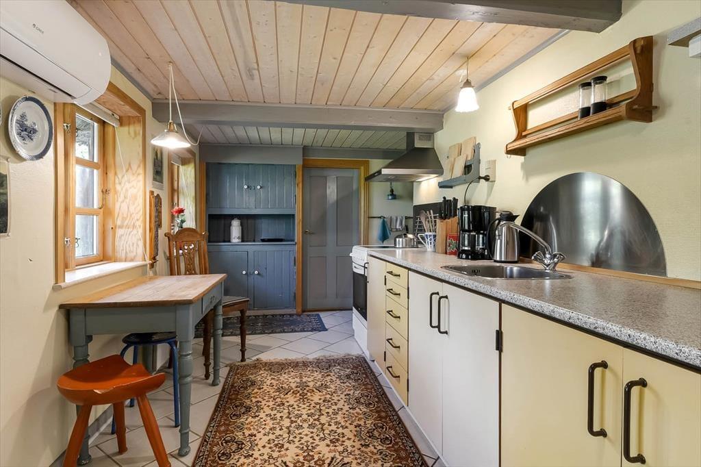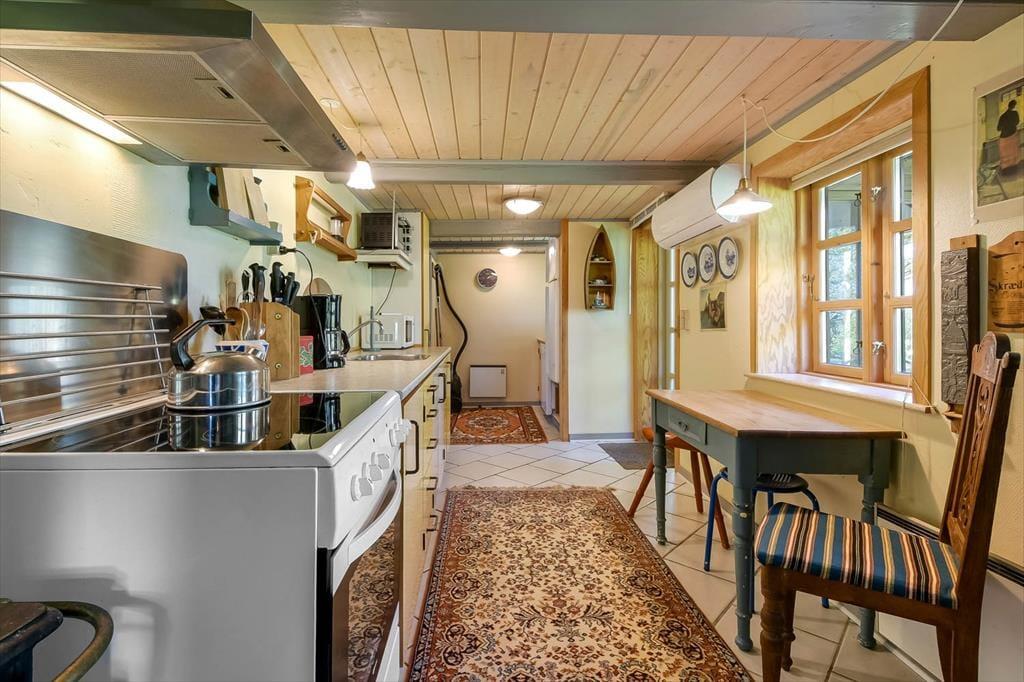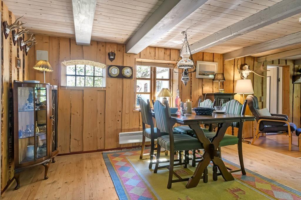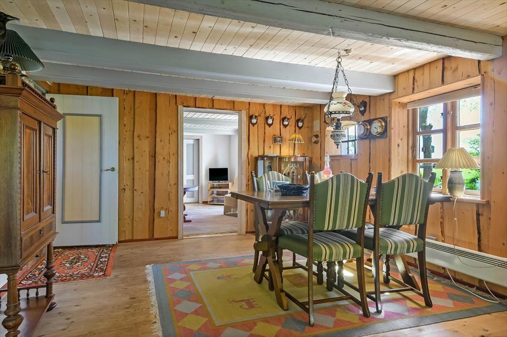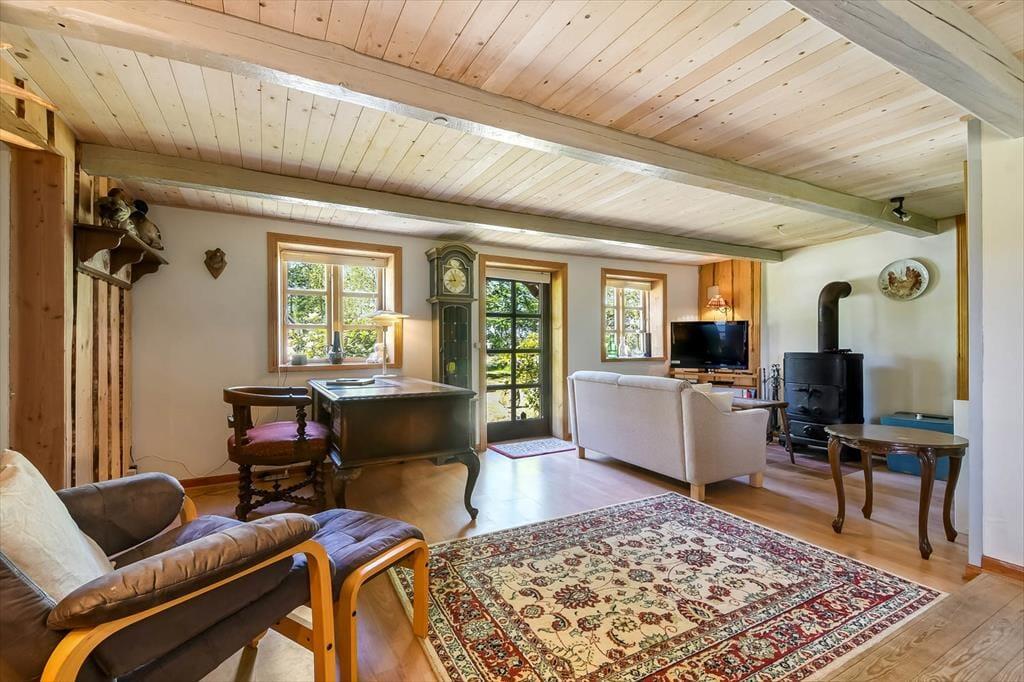 The holiday home is decorated with cosy charm that invites you to let go the moment you step inside. This is not modern minimalism but warm colours, personal touches and a welcoming atmosphere that calls for relaxation. The living room offers plenty of space to lounge with a book and a cup of coffee while the crackling wood-burning stove adds a sense of comfort when night falls. As darkness settles, you can drift off to sleep to the sound of silence and wake to the soft morning light streaming through the window – an experience both two people and two dogs are sure to enjoy.