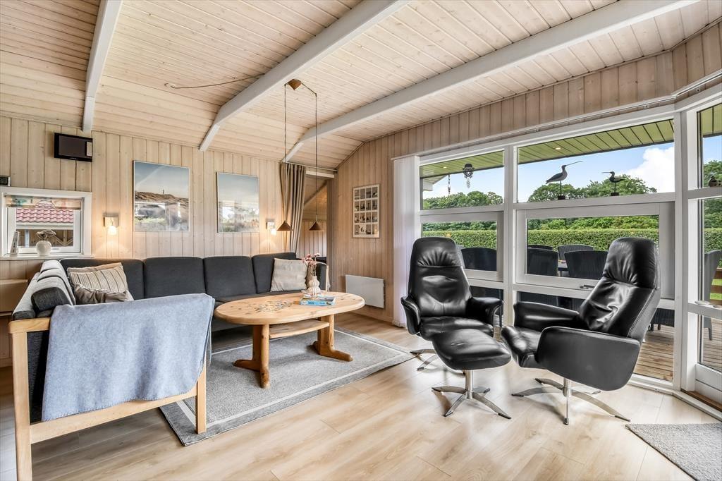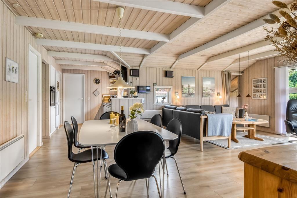 Dein Ferienhaus befindet sich am Ende eines kleinen, in sich geschlossenen Ferienhausgebiets. Ringsum geht es daher wunderbar ruhig und friedvoll zu. Im Kreise deiner Freunde oder deiner Familie wirst du dich hier bestes erholen und entspannen. Obwohl du angenehm zurückgezogen wohnst, erreichst du dennoch bequem alles, was dir der kleine Hafenort Bork Havn zu bieten hat. Hierzu zählen das Indoor-Tobeland Bork Legeland und das interessante, zeitweise belebte Freilichtmuseum Bork Vikingehavn. Gute Lokalitäten, eine attraktive Minigolfanlage und der Hafenbereich sind ebenfalls schnell erreichbar. Der überaus beliebte, lange Surfstrand Bork Havns lädt Anfänger und Profis gleichermaßen zu herrlichen Stunden auf dem Ringkøbing Fjord ein. Für einen Tag an der rauschenden Nordsee empfehlen wir dir, per Pkw an den nahegelegenen Nymindegab Strand oder an einen der anderen fantastischen Nordseestrände zu fahren.