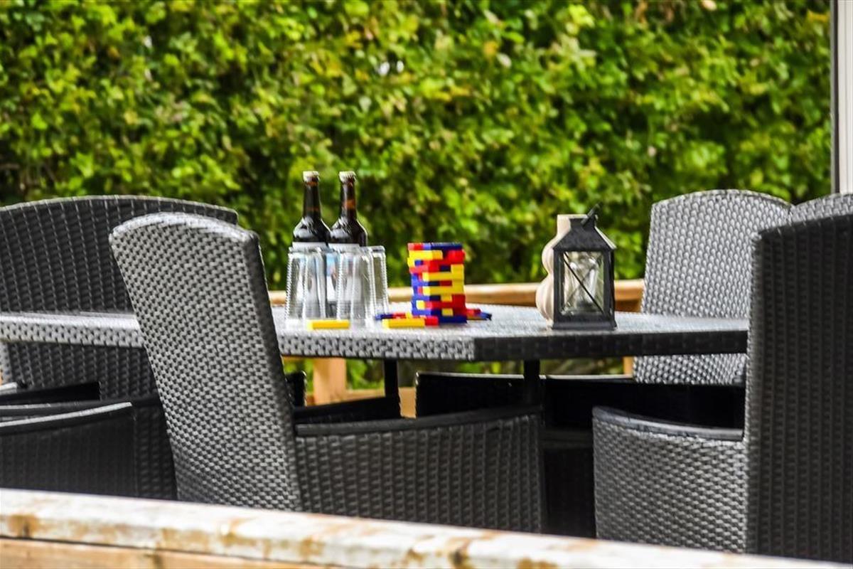 Vom Wohnraum trittst du hinaus auf die Terrasse, die bei dir und deinen Lieben insbesondere an lauen Sommertagen für Begeisterung sorgen wird. Unter freiem Himmel bieten sich beste Möglichkeiten, die Sonne und die frische Luft in vollen Zügen zu genießen. Falls dir der Sinn nach einem kühlen Getränk oder einem frischen Kaffee stehen sollte, gelangst du von der Terrasse schnell in die Küche. Die gepflegte Rasenfläche ist durch eine dichte Hecke gut abgeschirmt. In einer Ecke des Grundstücks sorgt ein Durchgang in der Hecke dafür, das du im Nu ein grünes Gemeinschaftsareal erreichst, das sich südlich deines Grundstücks erstreckt. Die kleinsten Urlauber dürfen sich auf eine Sandkiste und auf ein Schaukelgerüst mit einer Nestschaukel freuen. Binnen kurzer Zeit erreichst du mit deinen Kindern außerdem den nächstgelegenen Spielplatz.