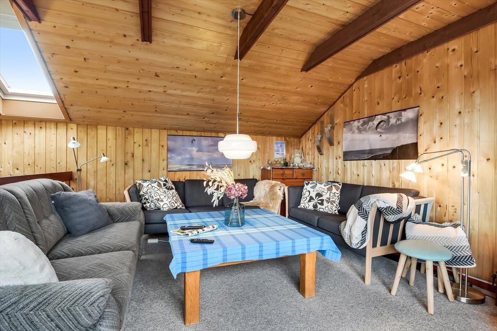 Ganz gleich, ob du deinen nächsten Urlaub mit Freunden oder mit deiner Familie verbringen möchtest, dieses Ferienhaus bietet dir einen schönen, praktischen Rahmen für erholsame Urlaubstage. Wenn du einen Großteil der Zeit im Freien genießen möchtest, ist es einfach schön, nach ausgedehnten Radtouren, Angelausflügen und langen Nachmittagen auf dem Surfboard in dieses Mietobjekt zurückzukehren und dort den Rest des Tages mit Gesellschaftsspielen, spannenden Büchern und tollen Filmen zu verbringen. Dein zweigeschossiges Ferienhaus bietet oben wie unten jeweils einen Aufenthaltsraum. Im Erdgeschoss erwartet dich eine geräumige Wohnküche mit einem schönen Essplatz. Im oberen Stockwerk triffst du auf einen Wohnraum mit Sofas und einem Flachbild-TV. Das Erdgeschoss umfasst darüber hinaus ein Duschbadezimmer und zwei Schlafräume. Falls du weitere Schlafplätze benötigst, steht im Oberschoss eine Abseite mit einem zusätzlichen Bett bereit.