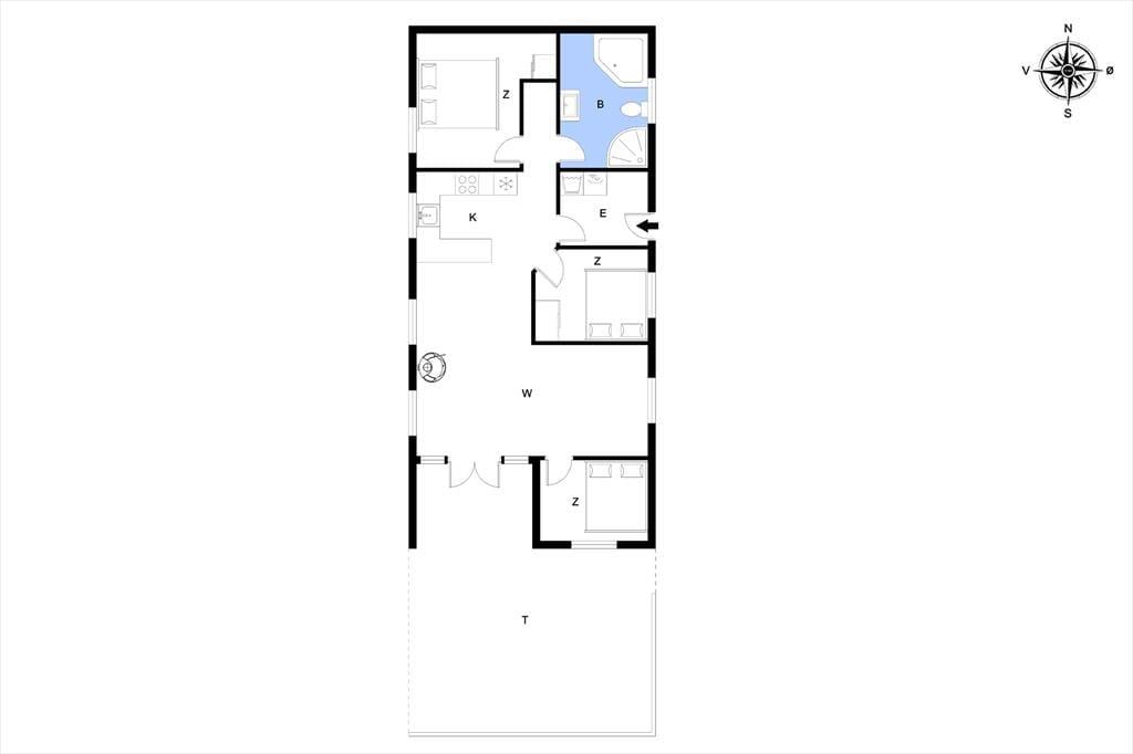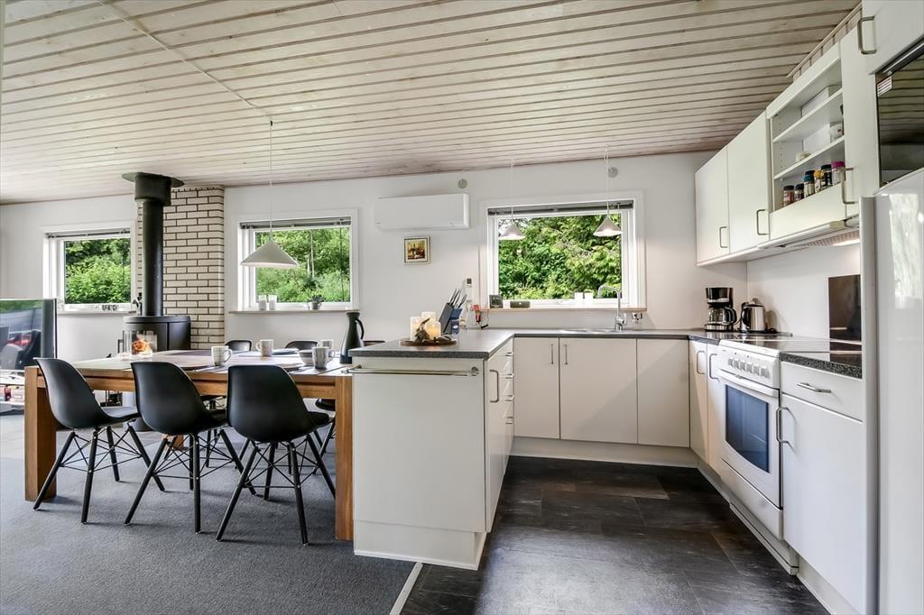It is easy to feel at home the moment you step into this welcoming holiday house. The colours are light and friendly, and the open-plan layout means you can enjoy time together whether you are cooking, playing games or simply relaxing on the sofa. There is plenty of room for everyone to settle in, whether you are travelling as a family or with a group of friends. The communal living area is filled with light from the windows, creating a bright and pleasant atmosphere – and when you open the door to the terrace, the summer becomes part of the room. The kitchen is perfectly placed in the heart of the house, and even the simplest everyday tasks feel like a treat when conversation flows and the scent of freshly brewed coffee fills the air. The bedrooms are designed with comfort and peace in mind, giving everyone a good night’s sleep and plenty of energy for the next day’s adventures.